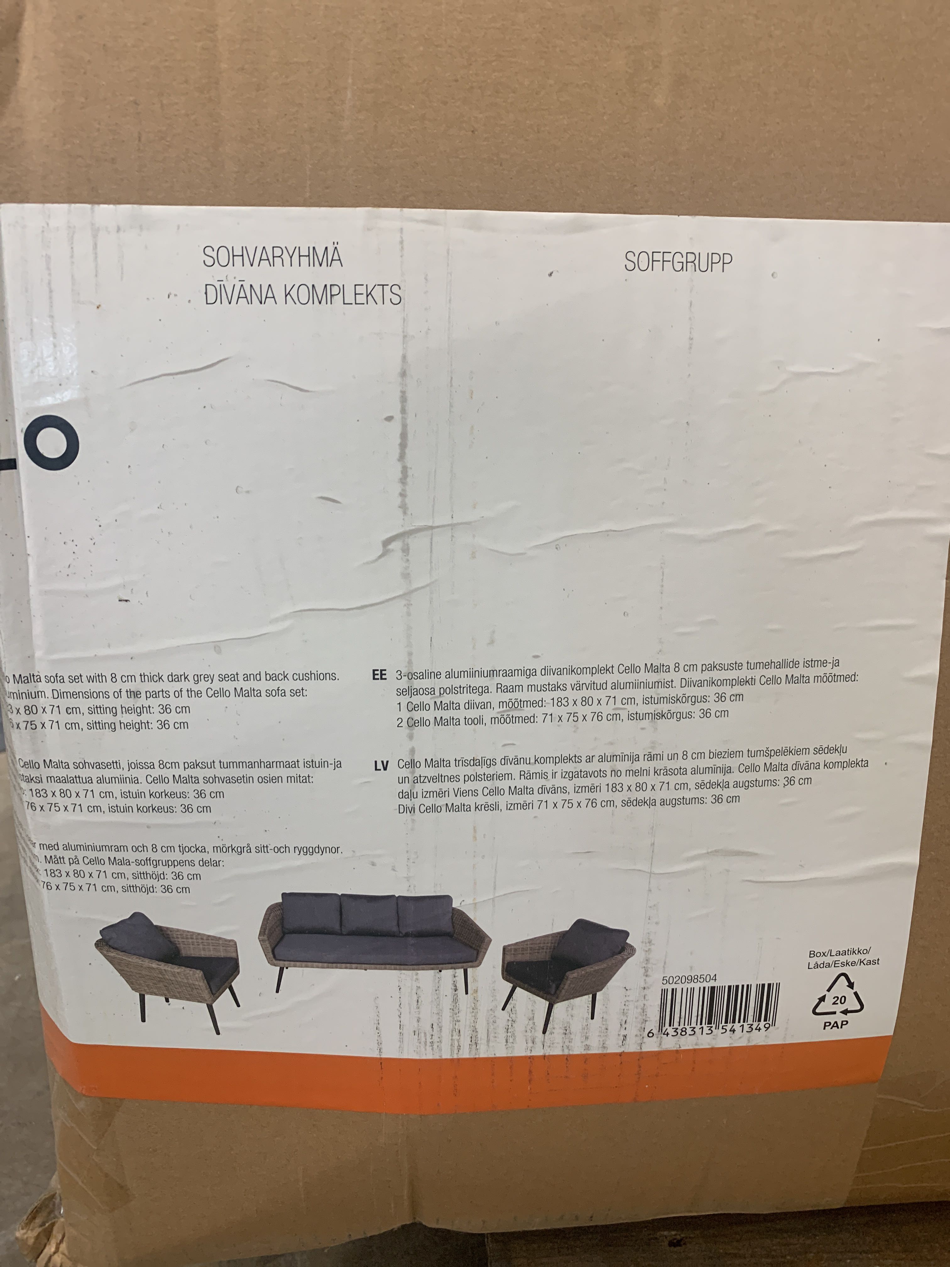 • 1 Cello Malta sofa, size: 182 x 80 x 71 cm, seat height: 36.5 cm without padding, weight limit 410 kg.
