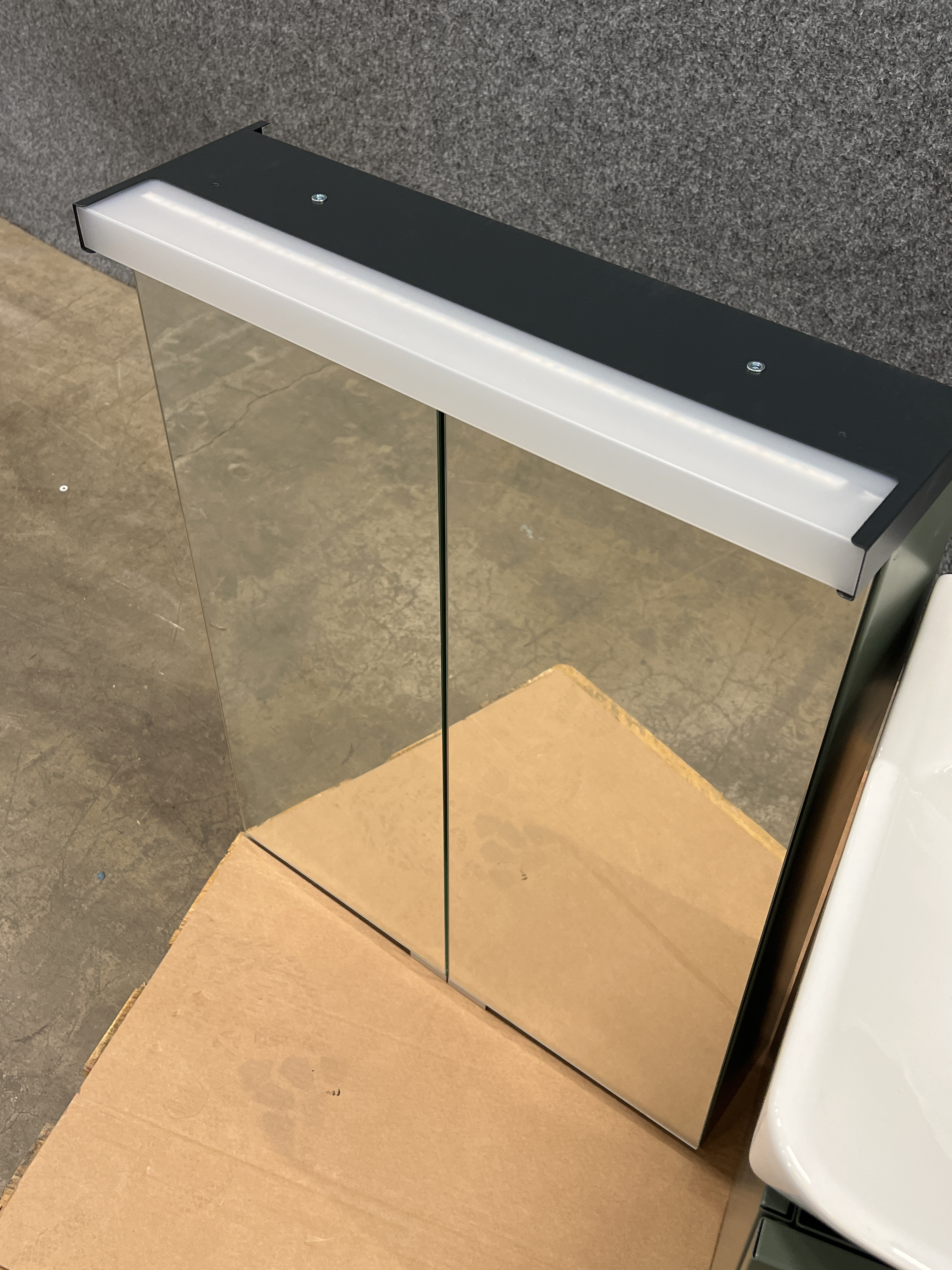 Note that the electric cable is cut to the mirror cabinet.