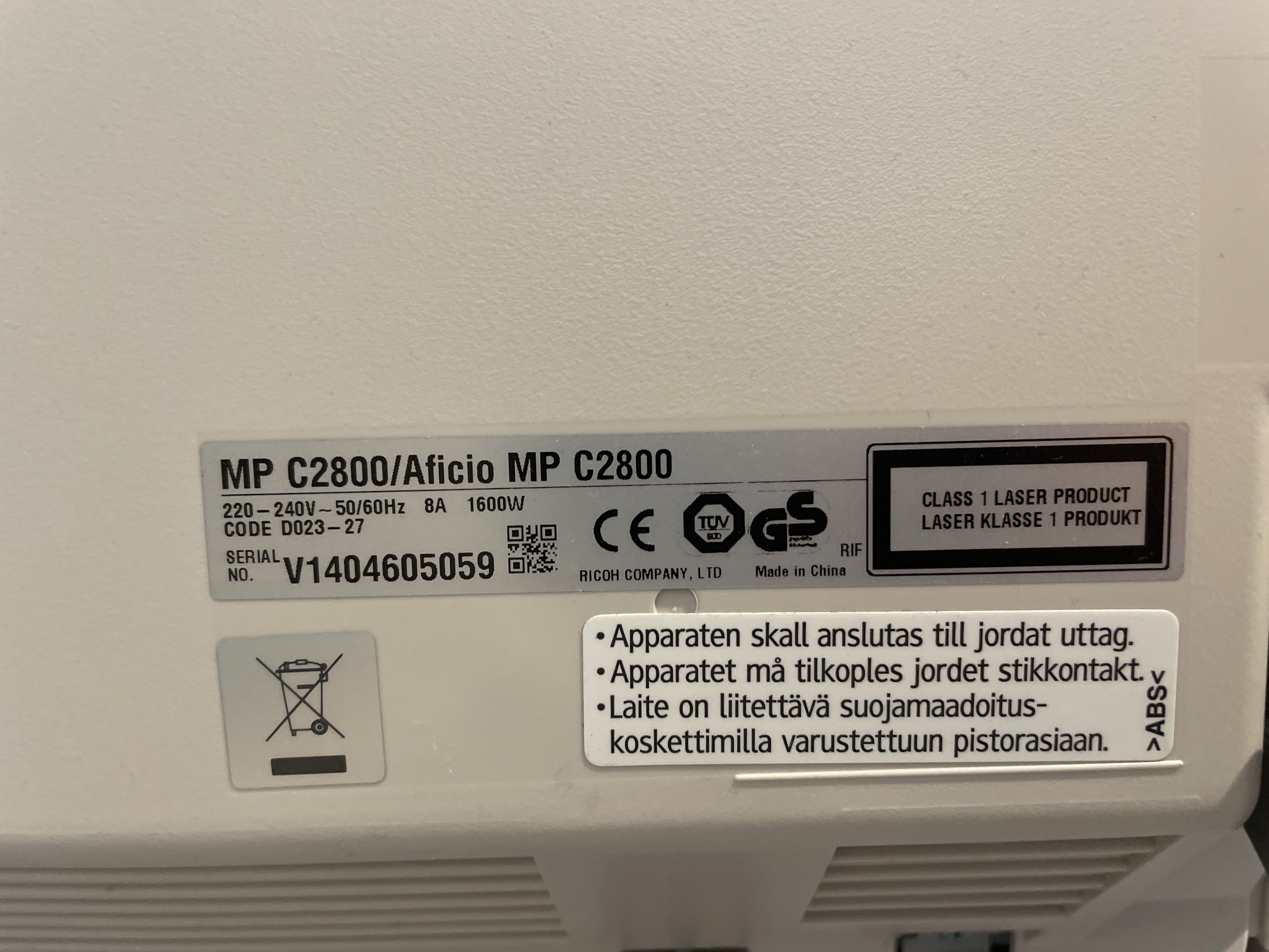 - Model: Aficio MP C2800