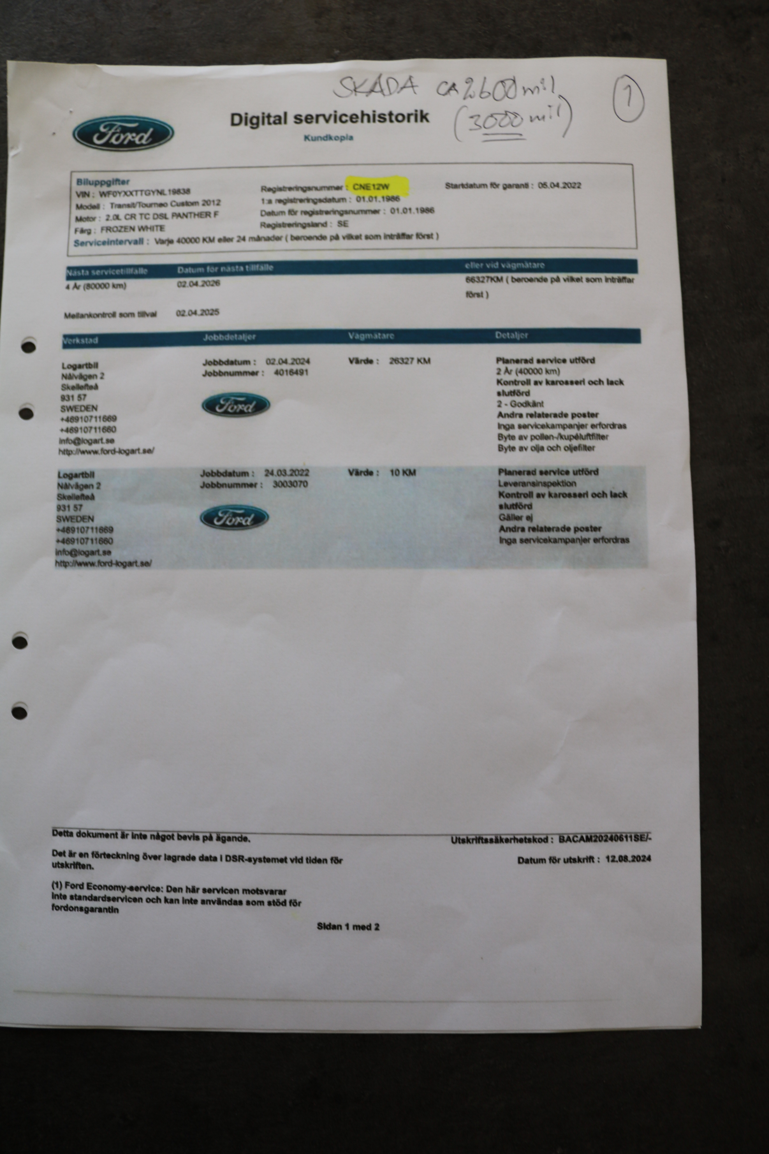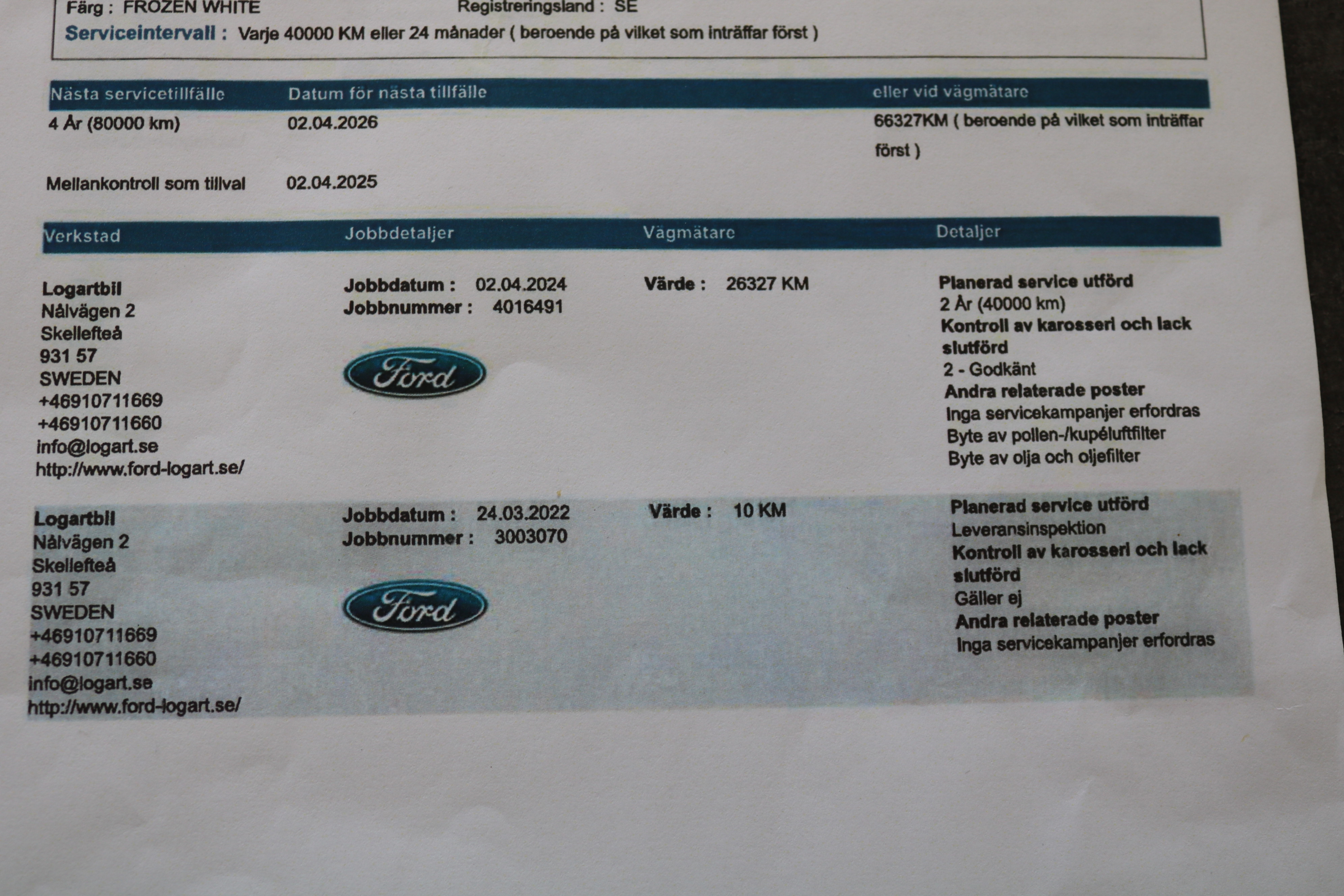 Last service done 2024-04-02 / 26327 km