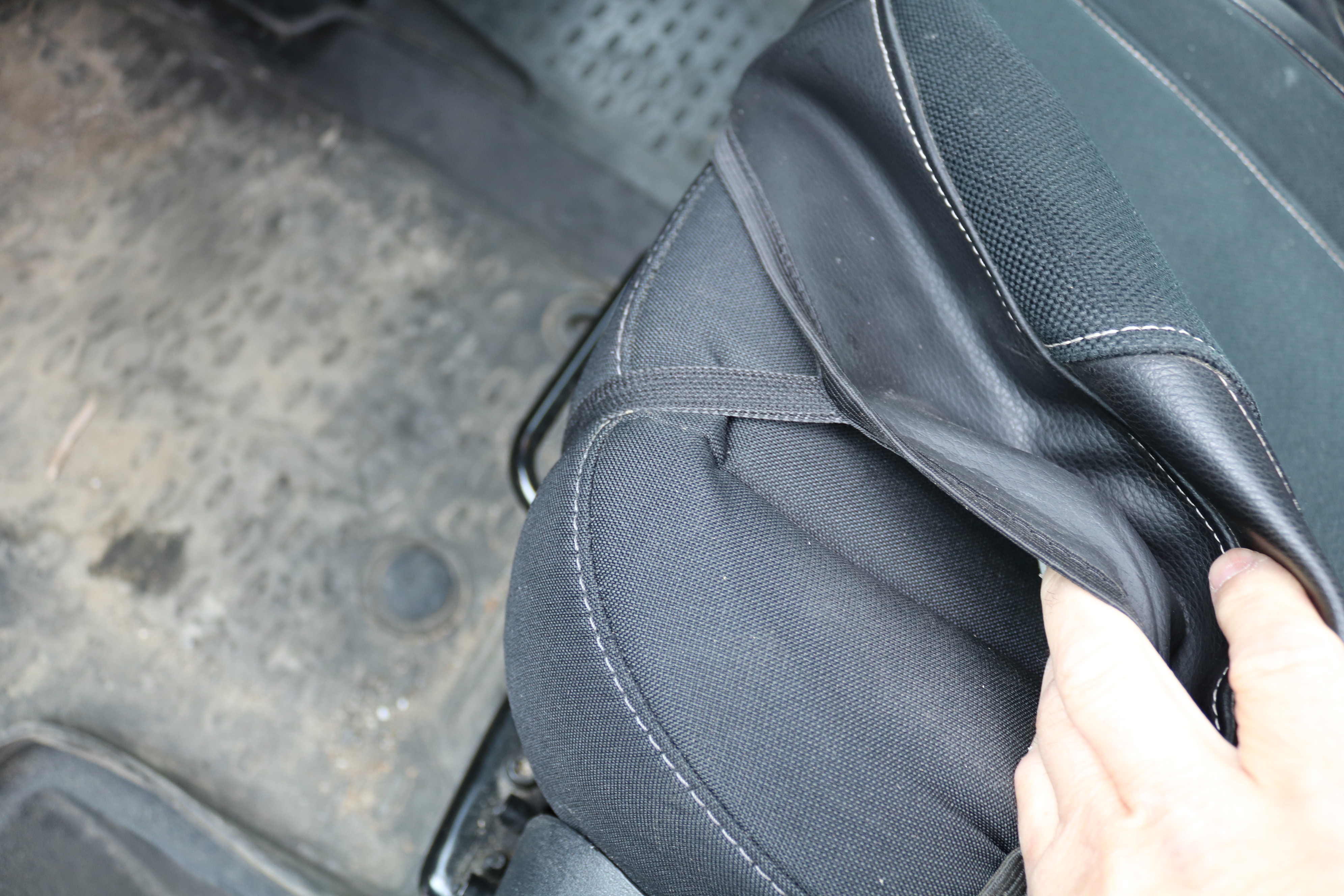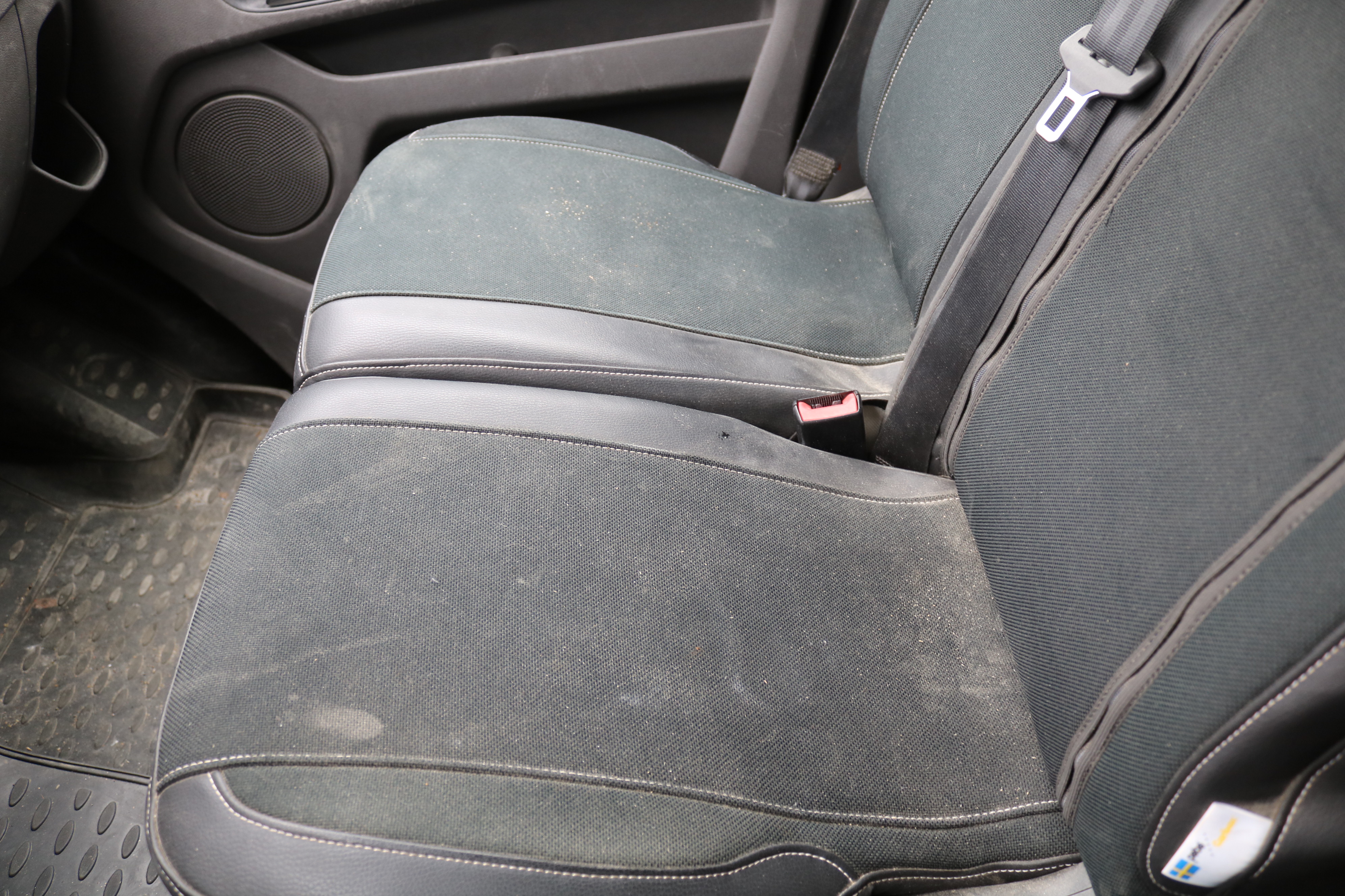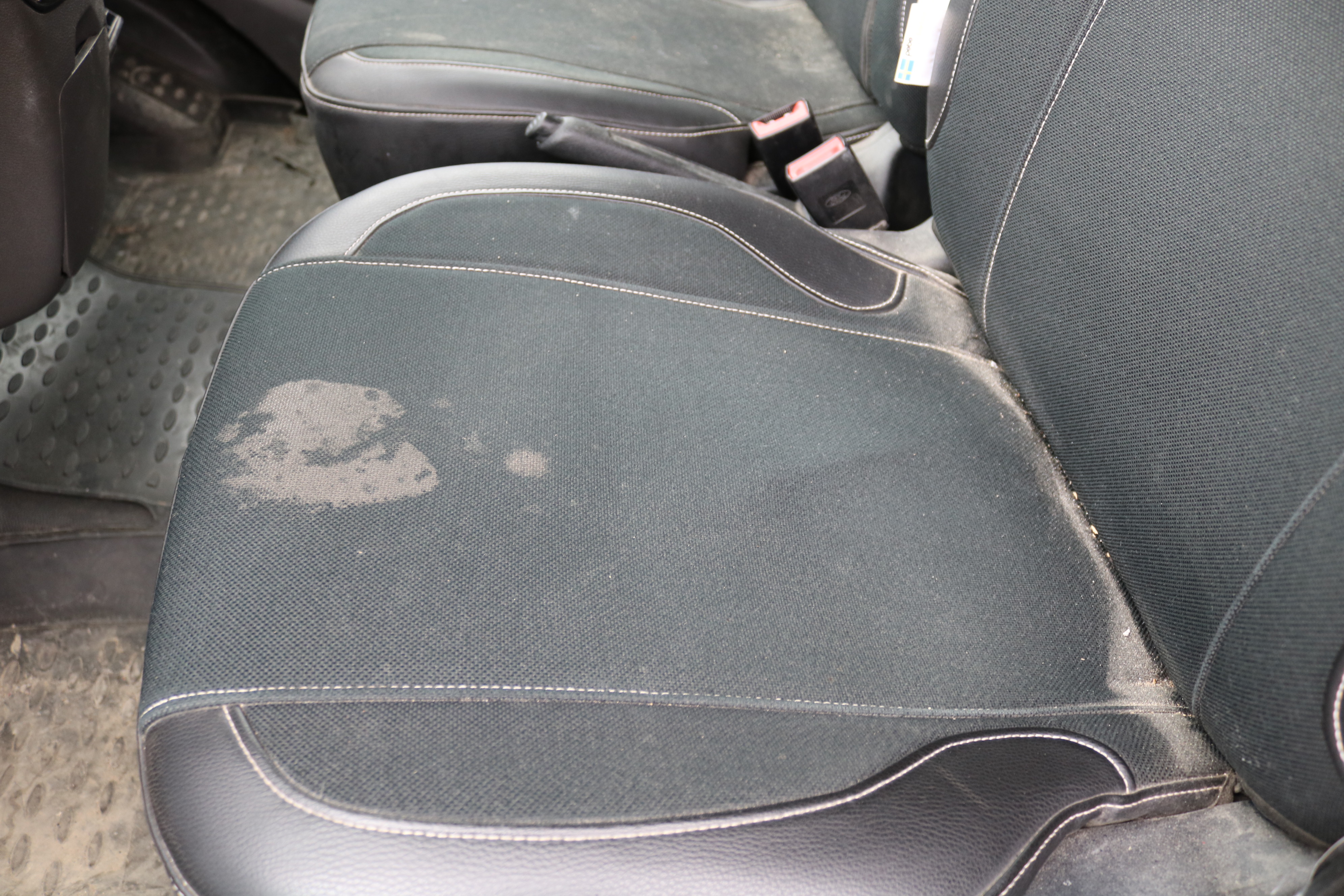 Upholstery sits on seats. Dirty