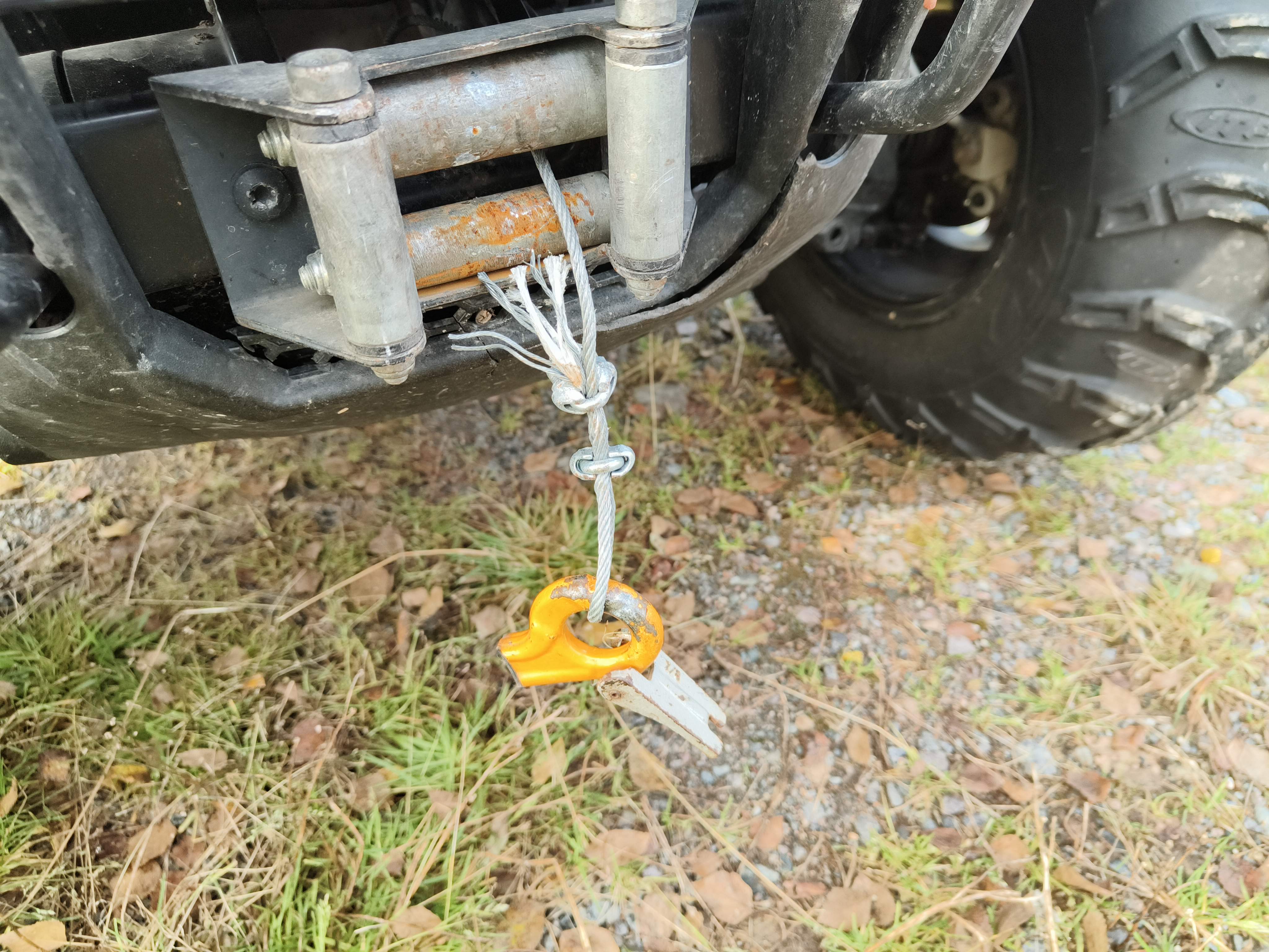 Front tire: 205/80-12, About 60% of the tread depth remains.