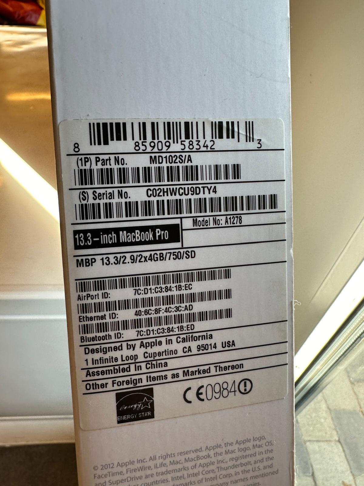 | Model | MacBook Pro |
