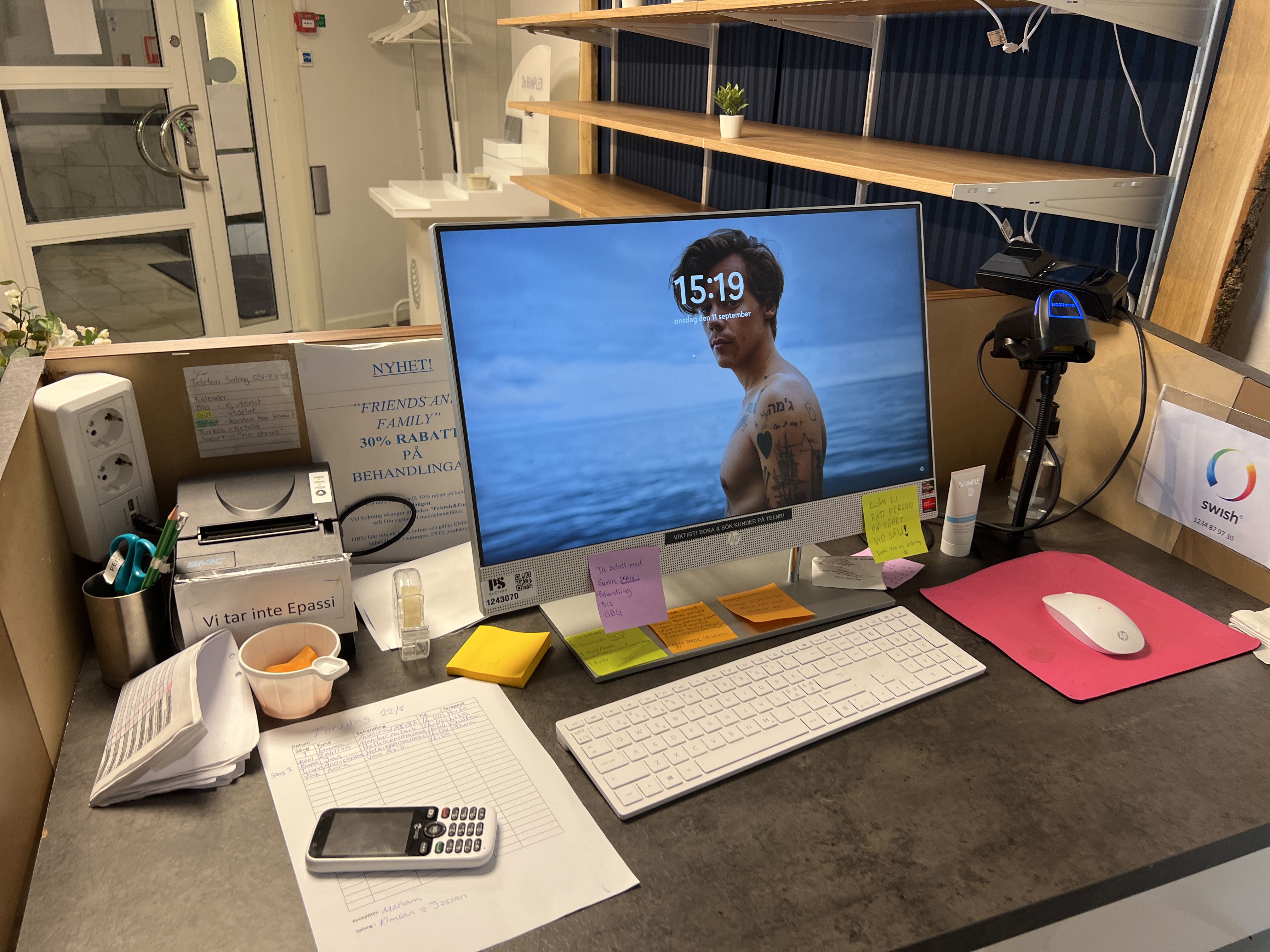 Desktop computer HP All-in-One 24 and receipt printer