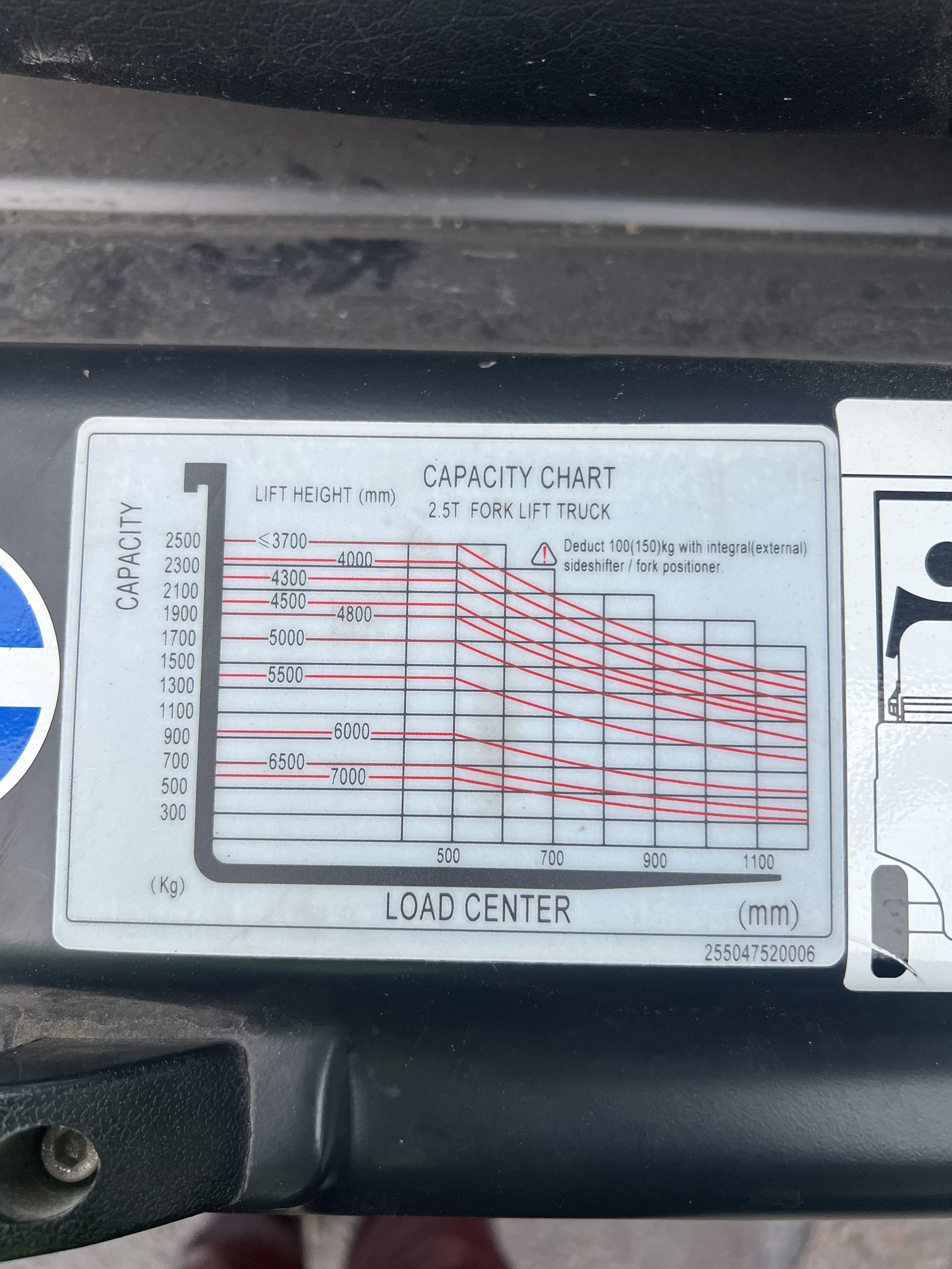 - Lifting capacity: 2500 kg