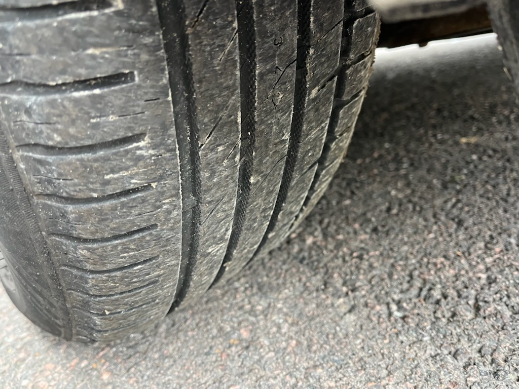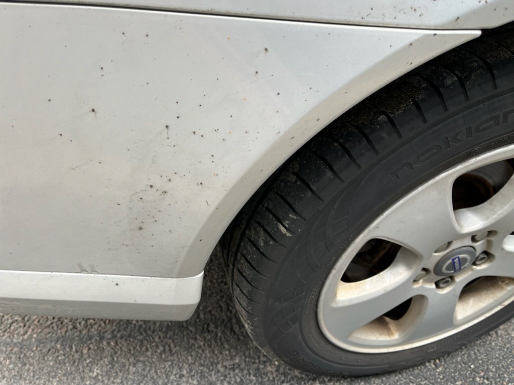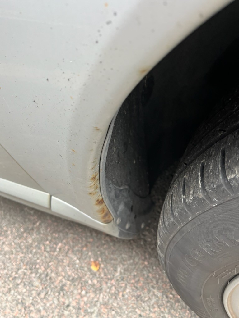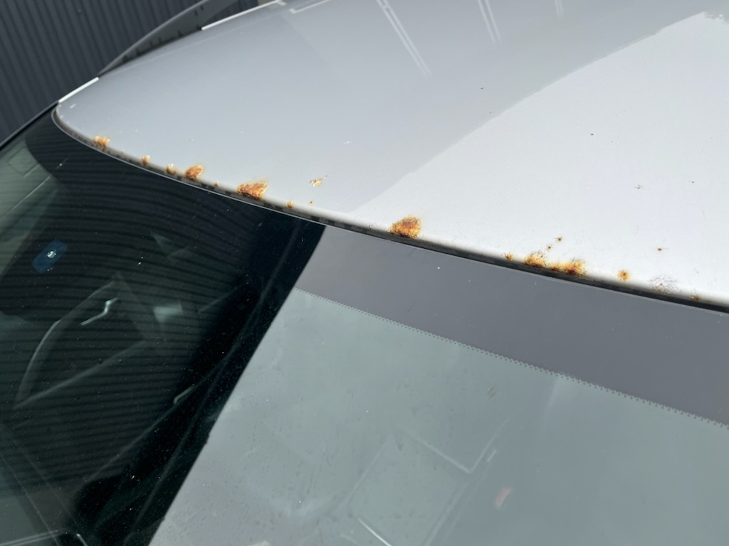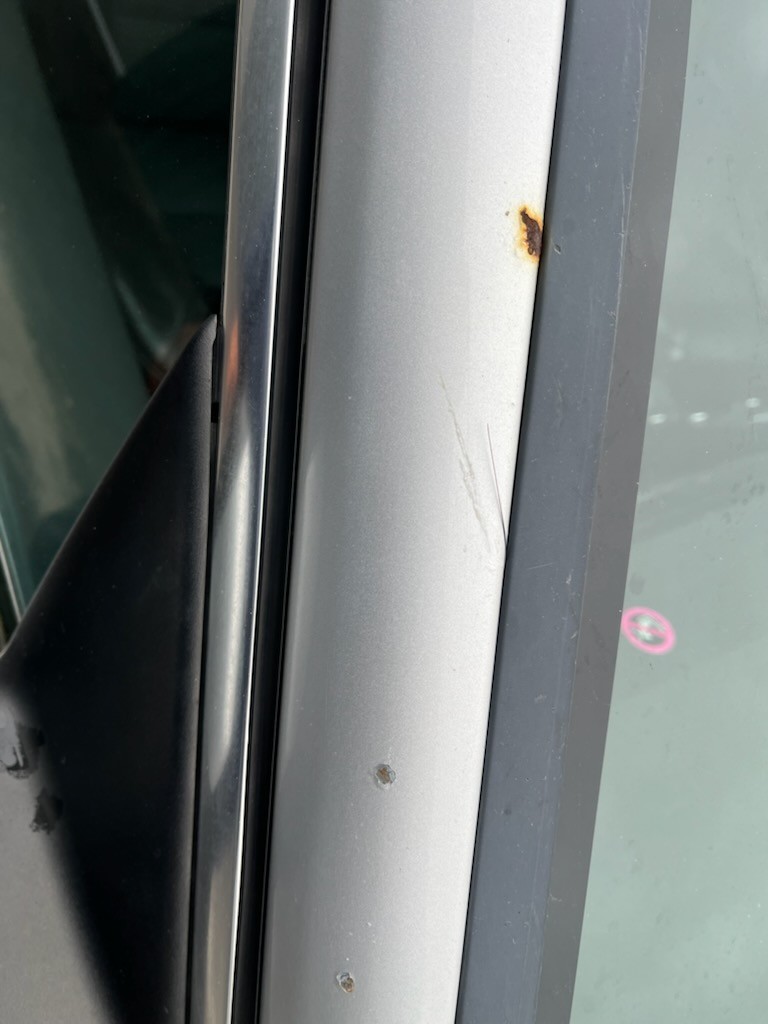Exterior worn in the paint with surface paint tears and stone chips with rust, but no major damage. Several longitudinal cracks in the windshield.