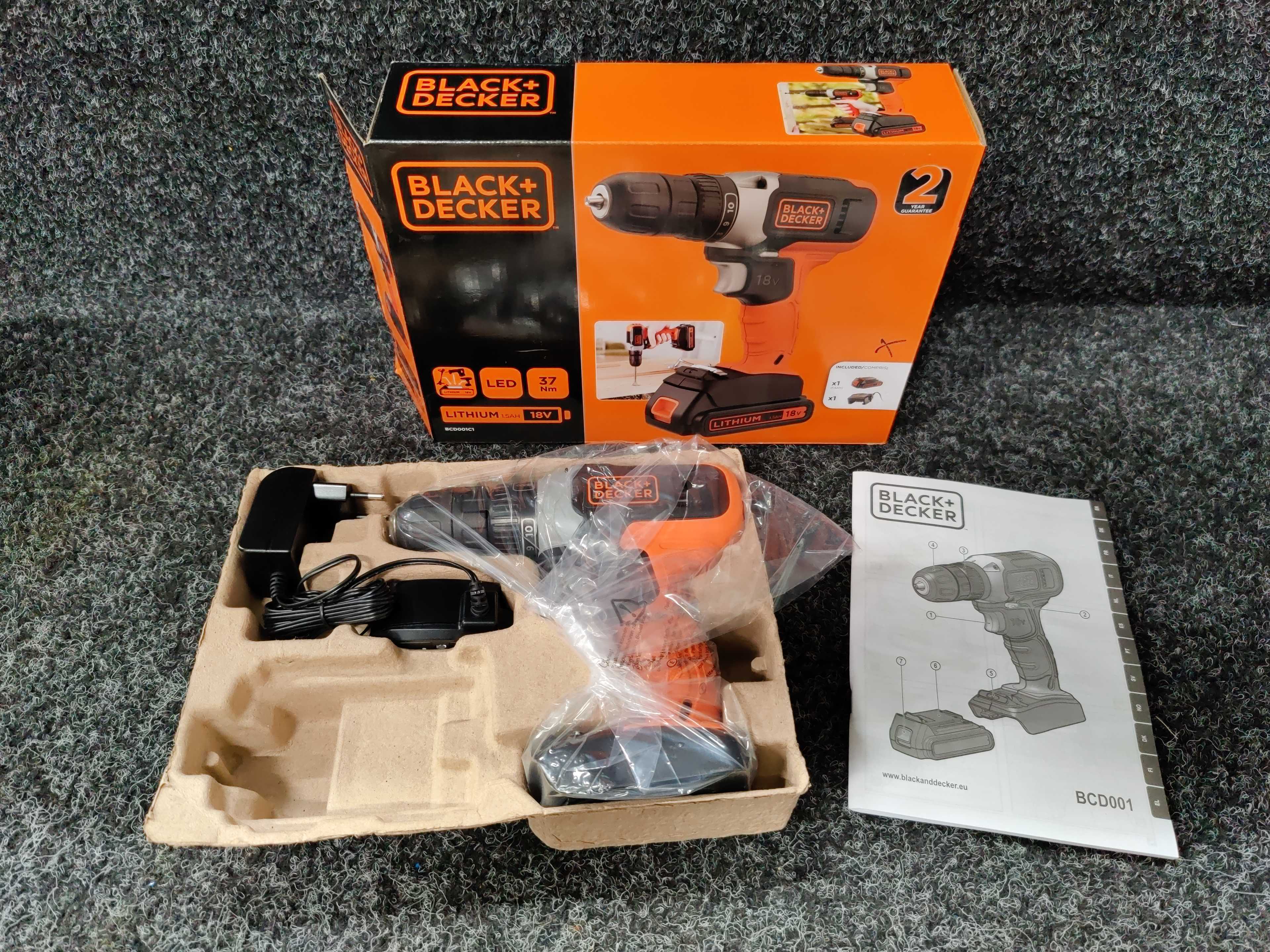 Black & Decker BCD001C1-QW is an 18 V drill driver with 11 torque steps, maximum torque of 37 Nm and speed of 0-600 rpm. Ultra-compact, lightweight design for hard-to-reach, limited areas. 11 torque settings for precise control when drilling in wood, metal and plastic. LED lamp provides greater visibility when working in dark spaces.
