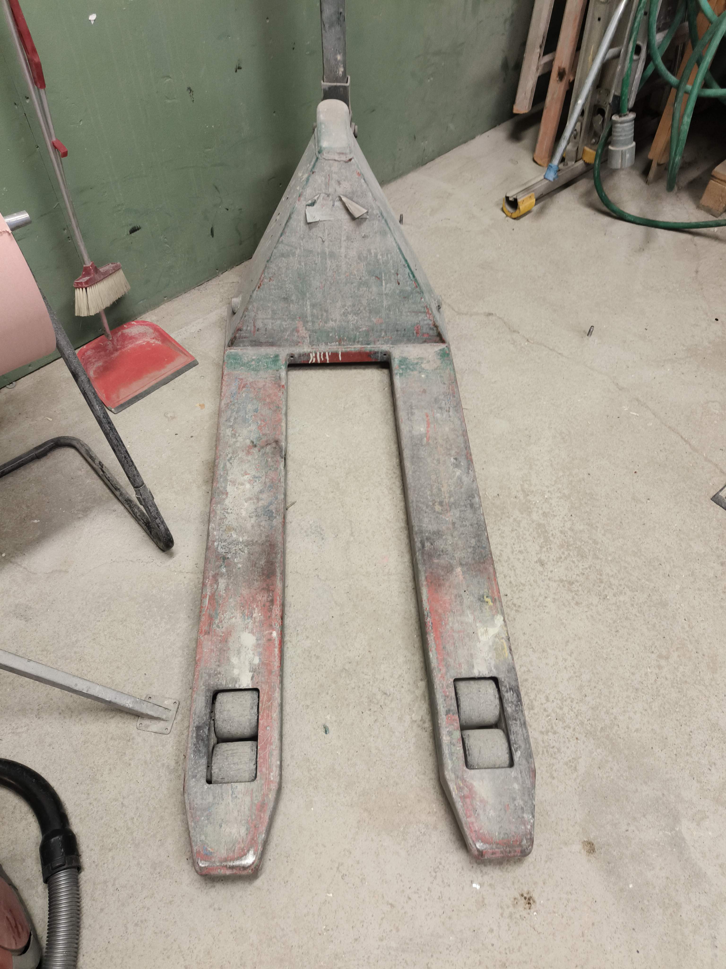 Pallet puller by unknown manufacturer, length of forks: About 110 cm.