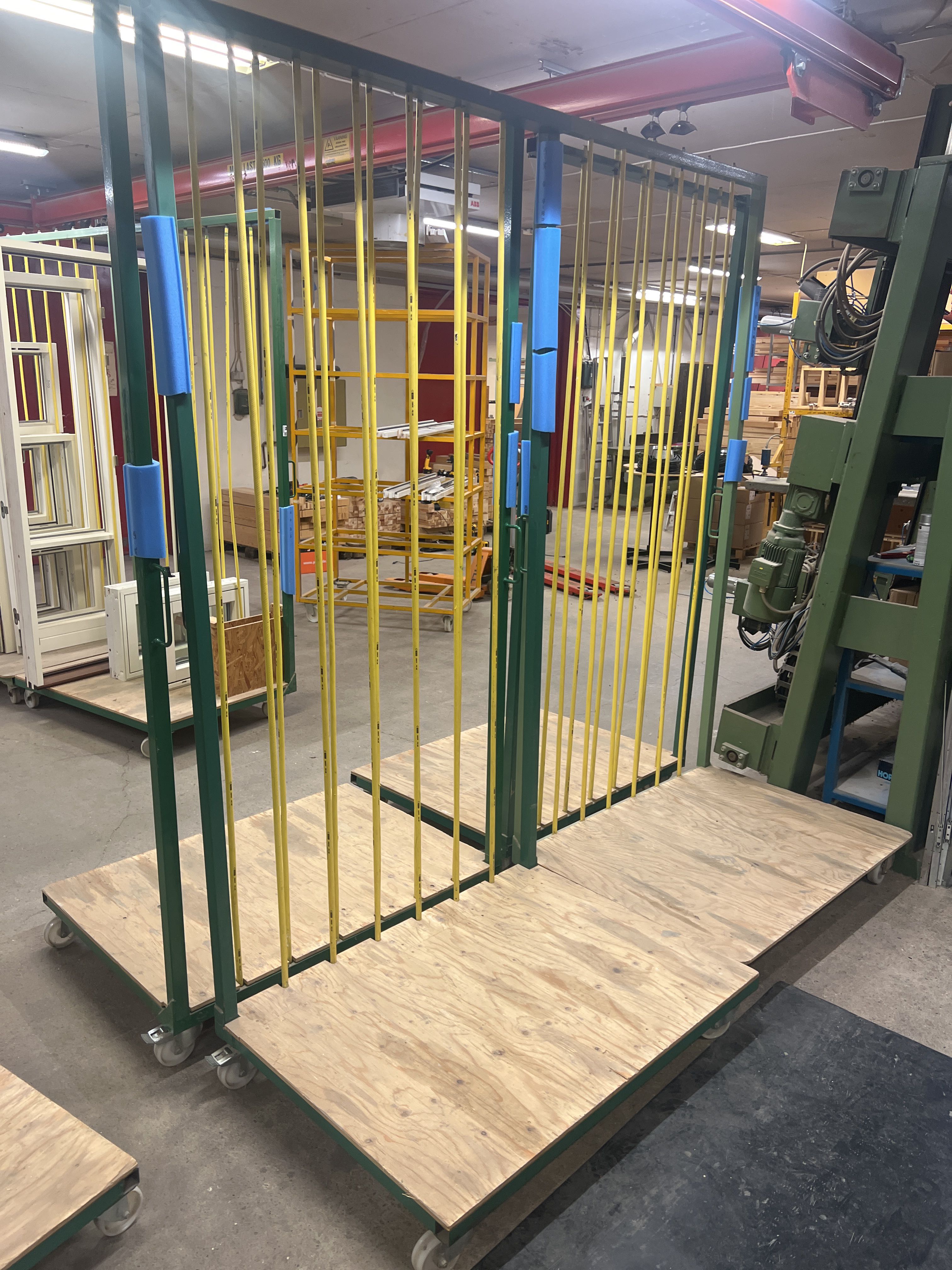 - For transporting and storing windows, sheet material or other larger objects in a workshop or production environment.