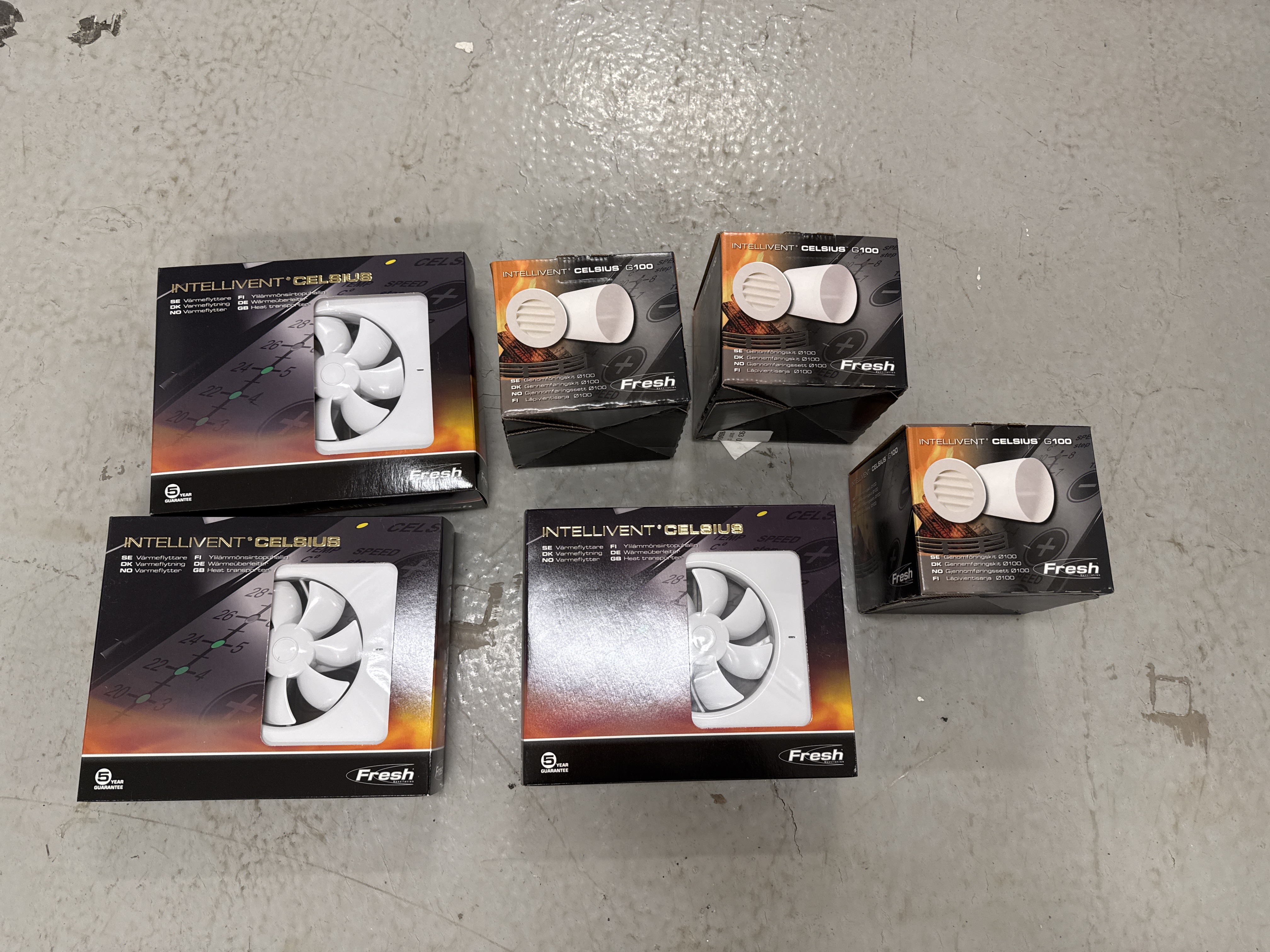 3 heat exchangers and 3 lead-through kits