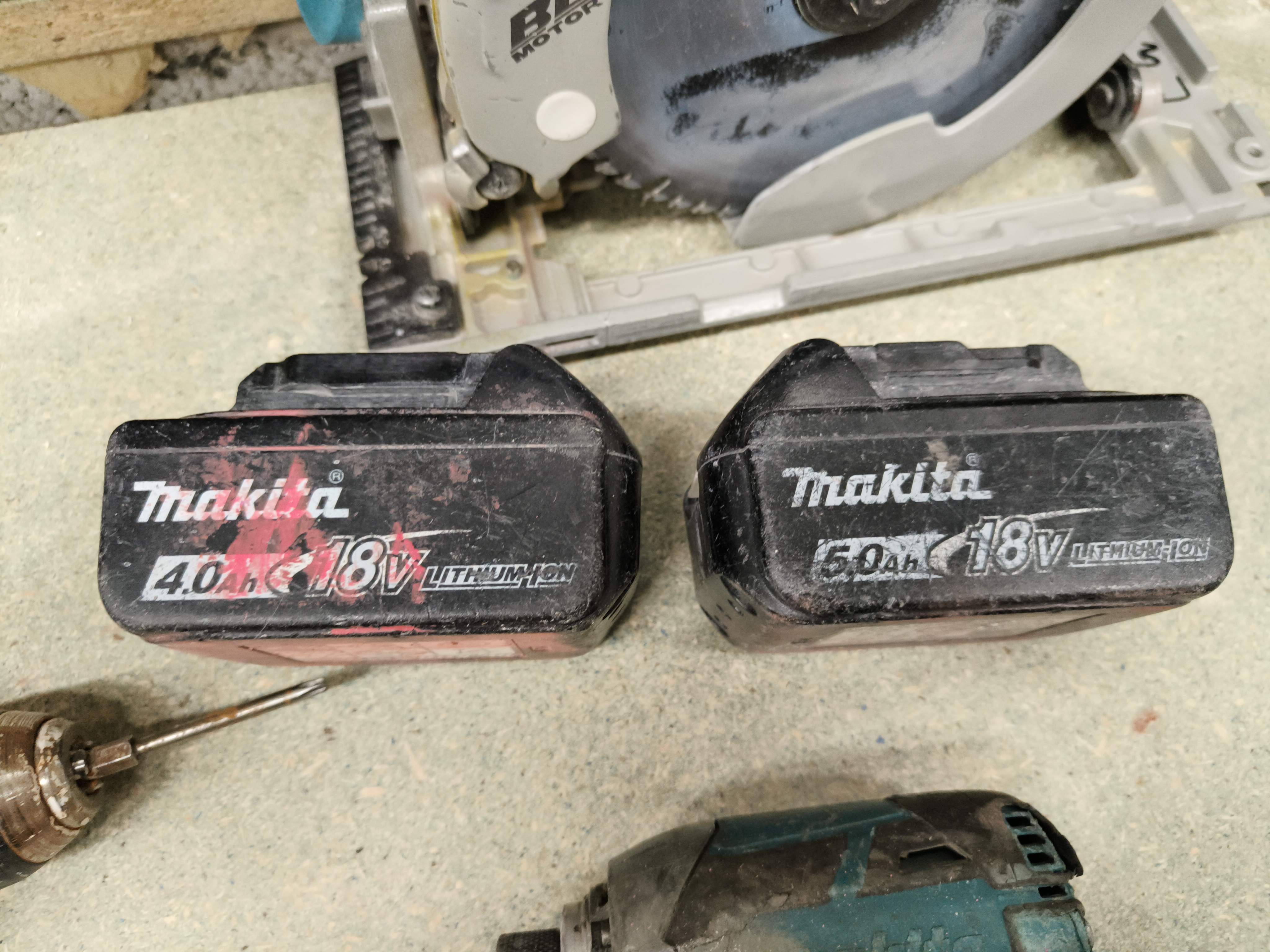 Makita screwdriver, circular saw, bit driver and hammer drill.