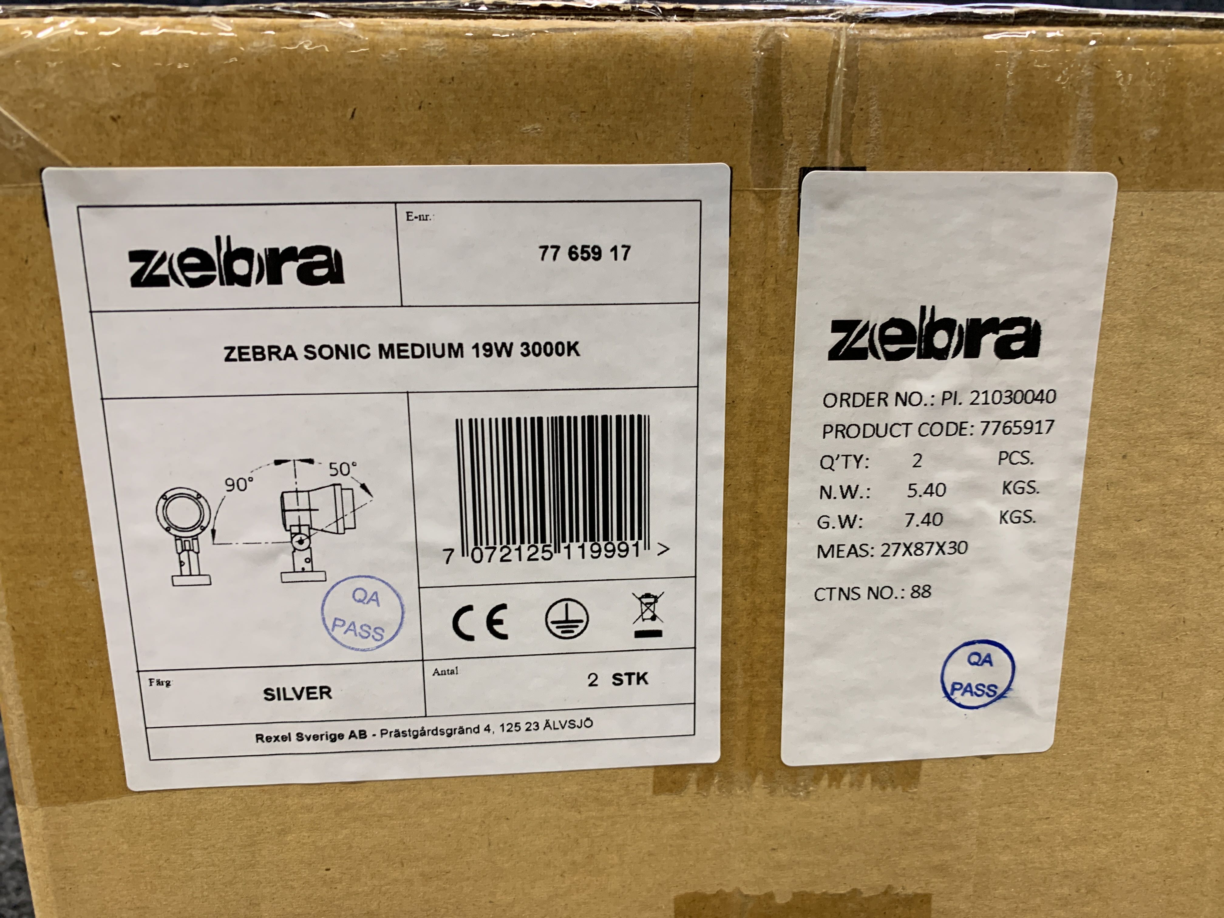 2 pcs Spotlight Zebra Sonic LED 19W 3000K Silver