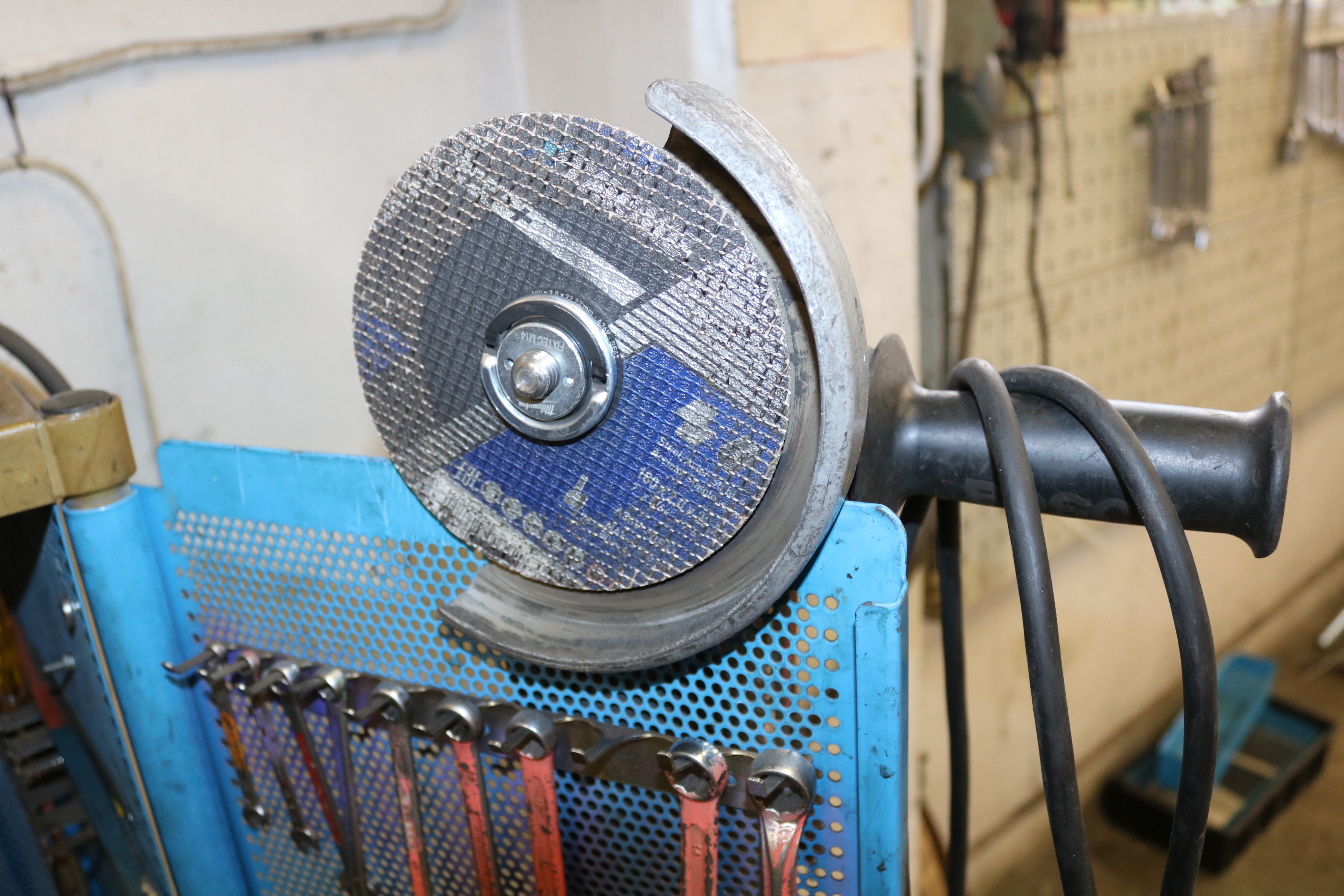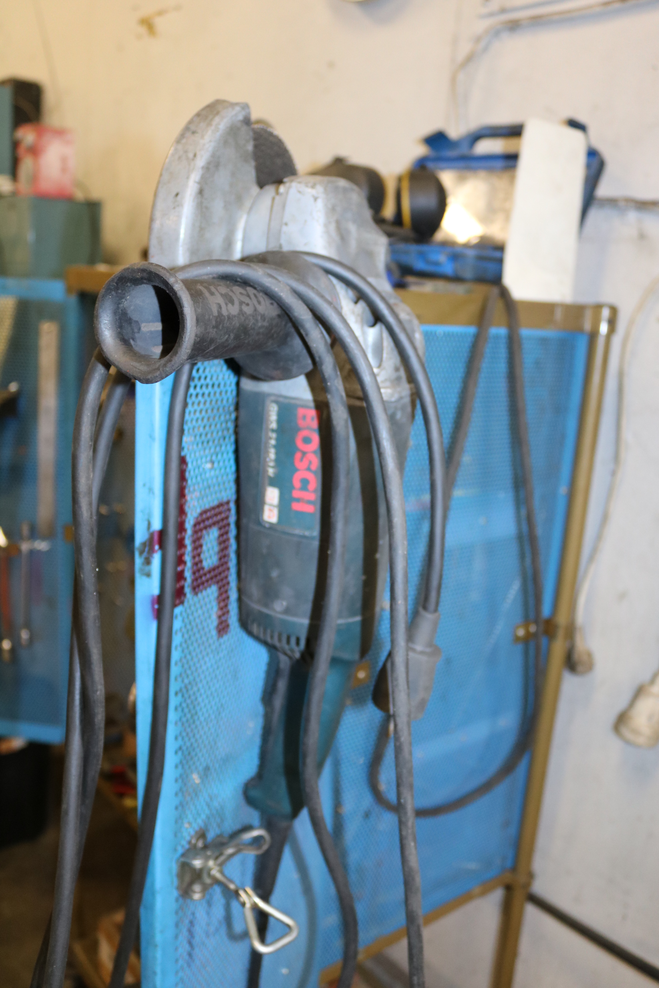 Tool cabinet on wheels and tools.