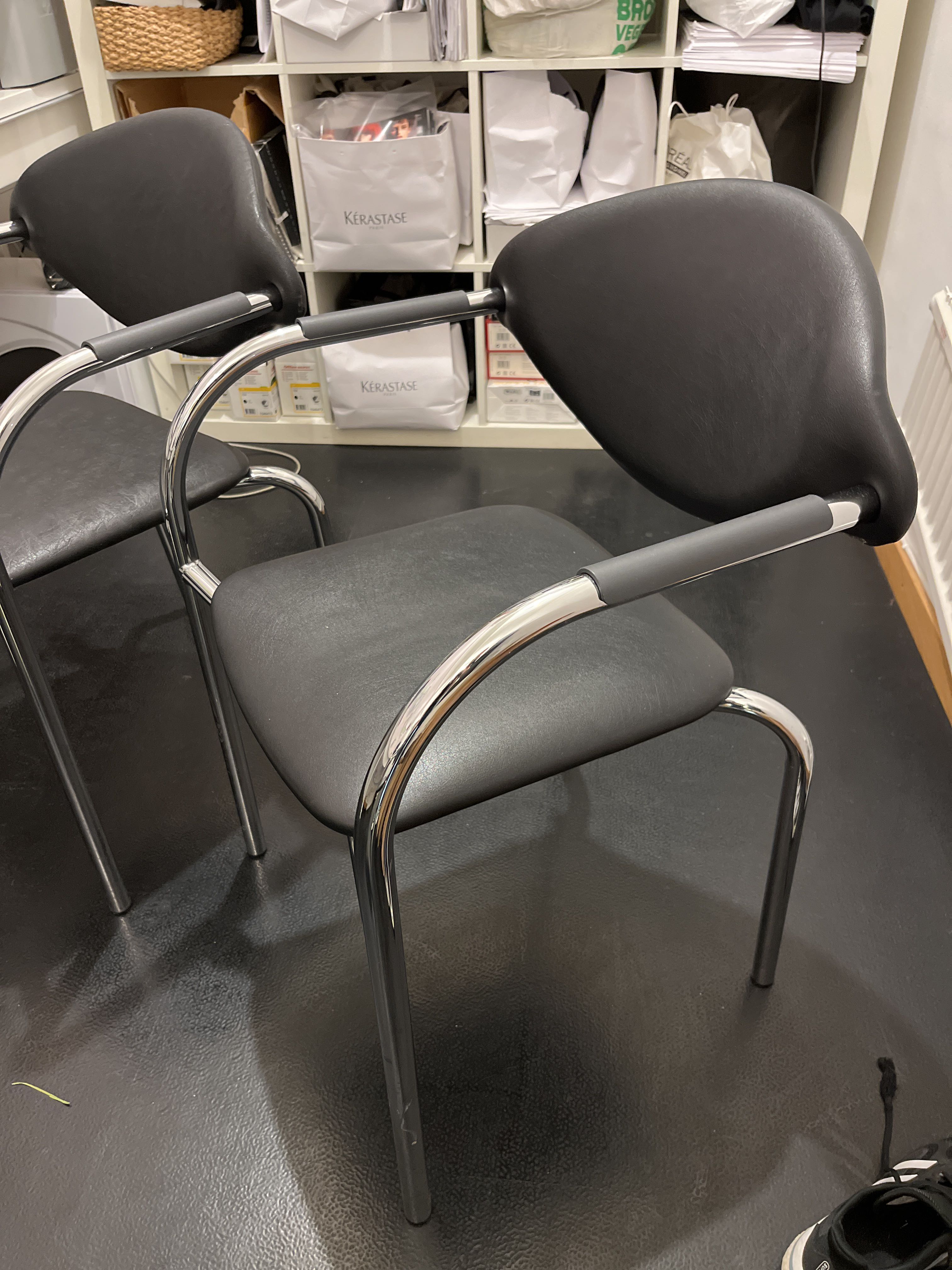- Chromed metal construction, seat and back in artificial leather