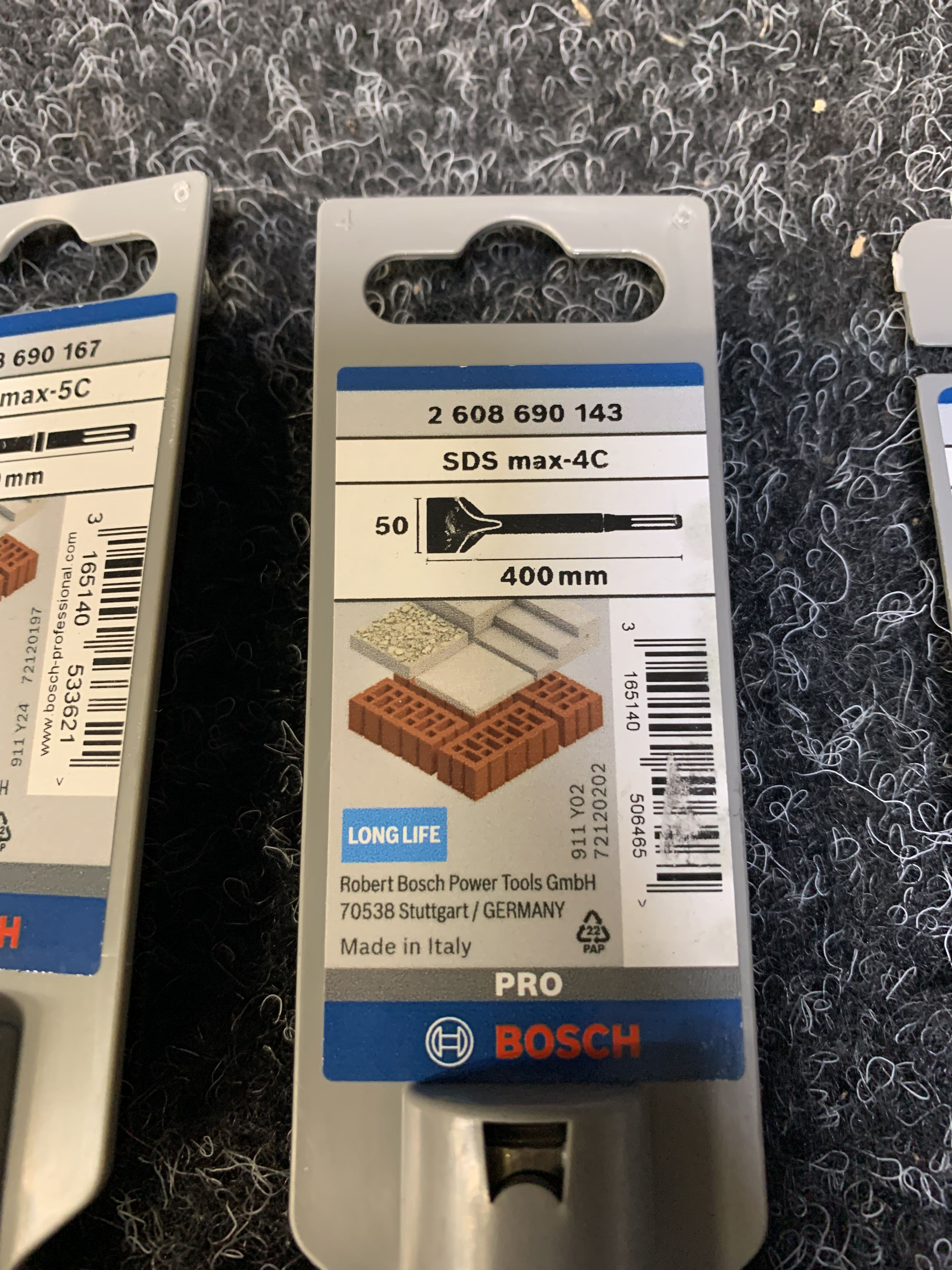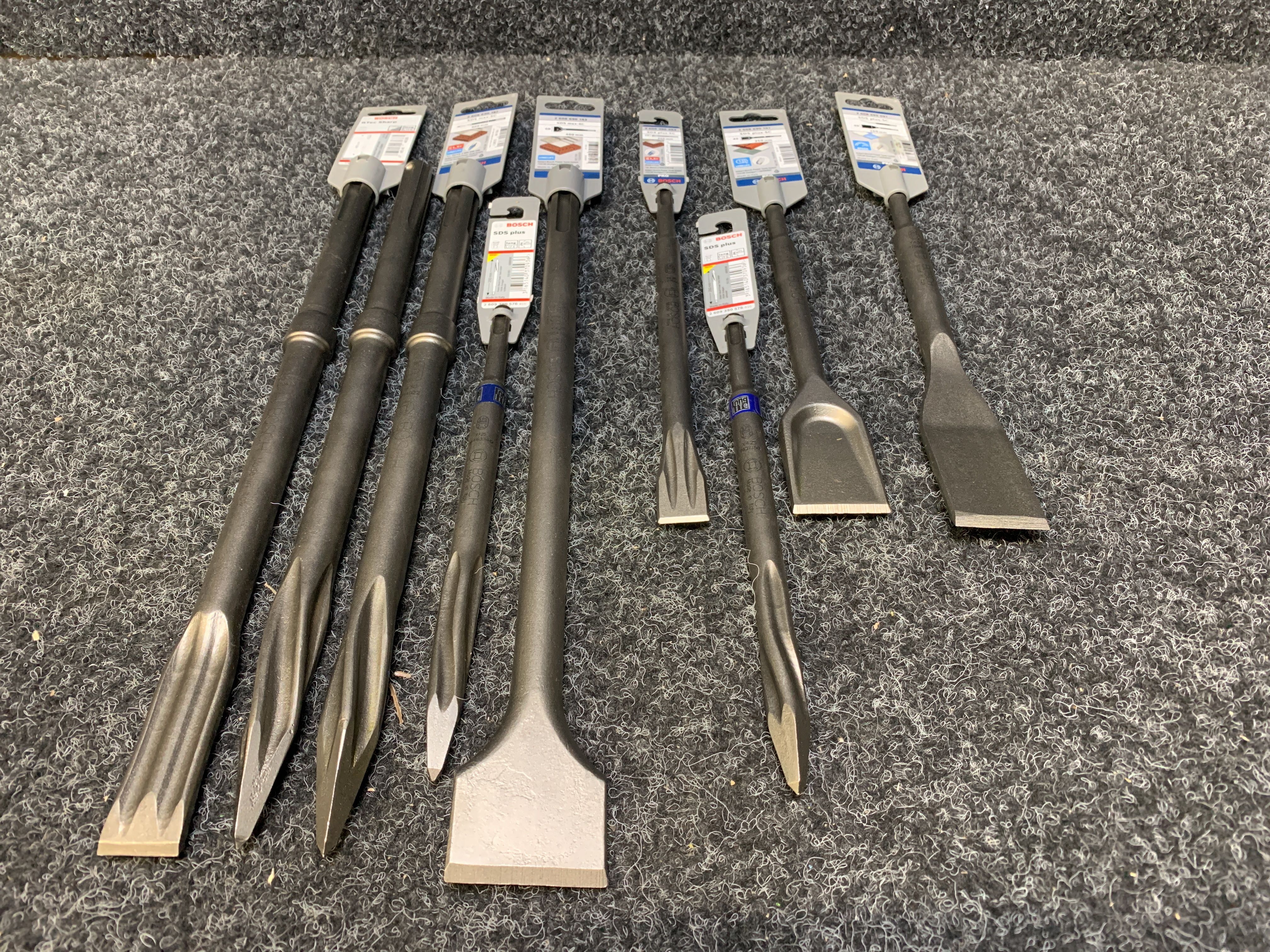Tile chisel, Point chisel, Flat chisel & Flat chisel Bosch in different sizes according to pictures
