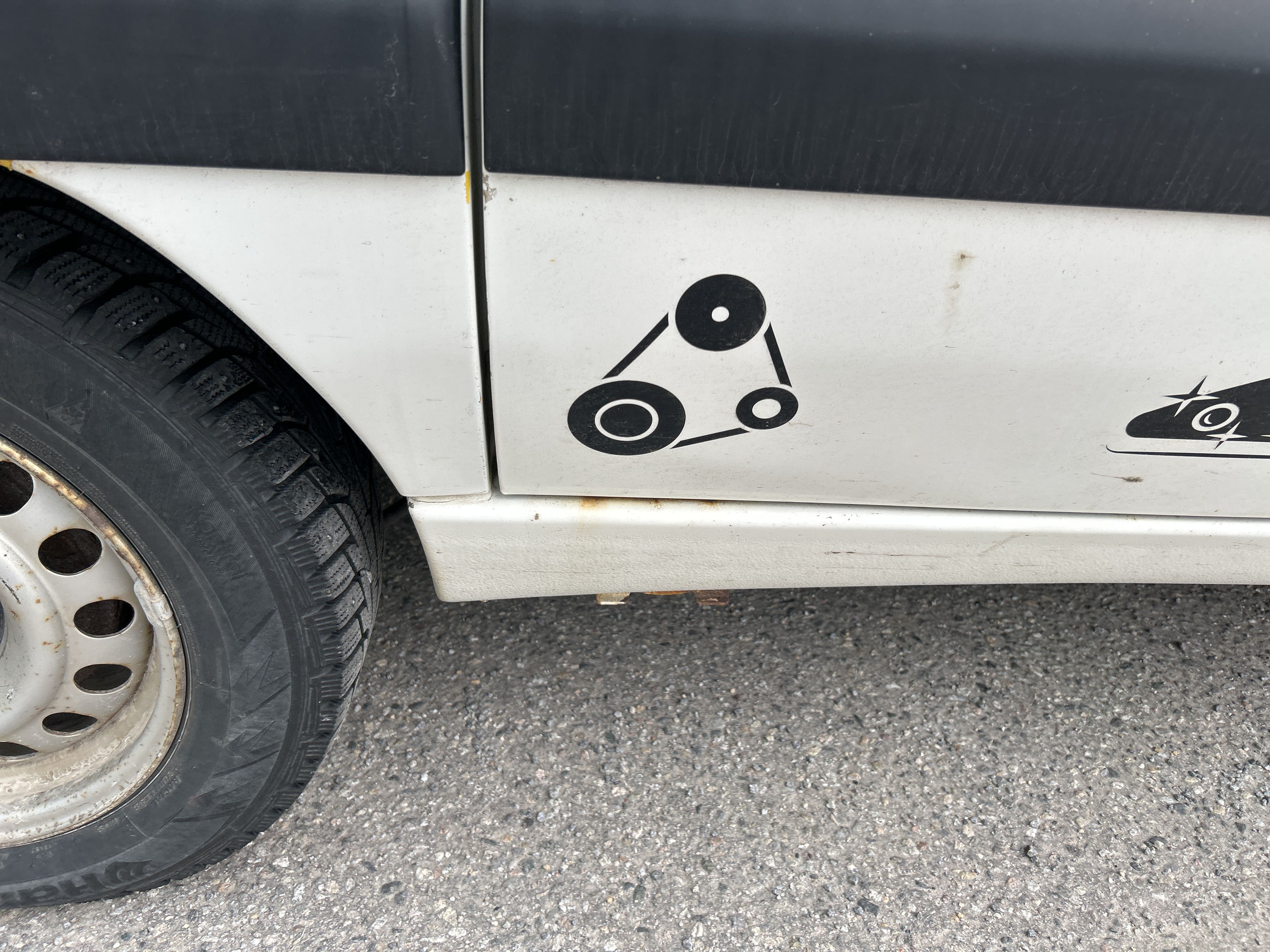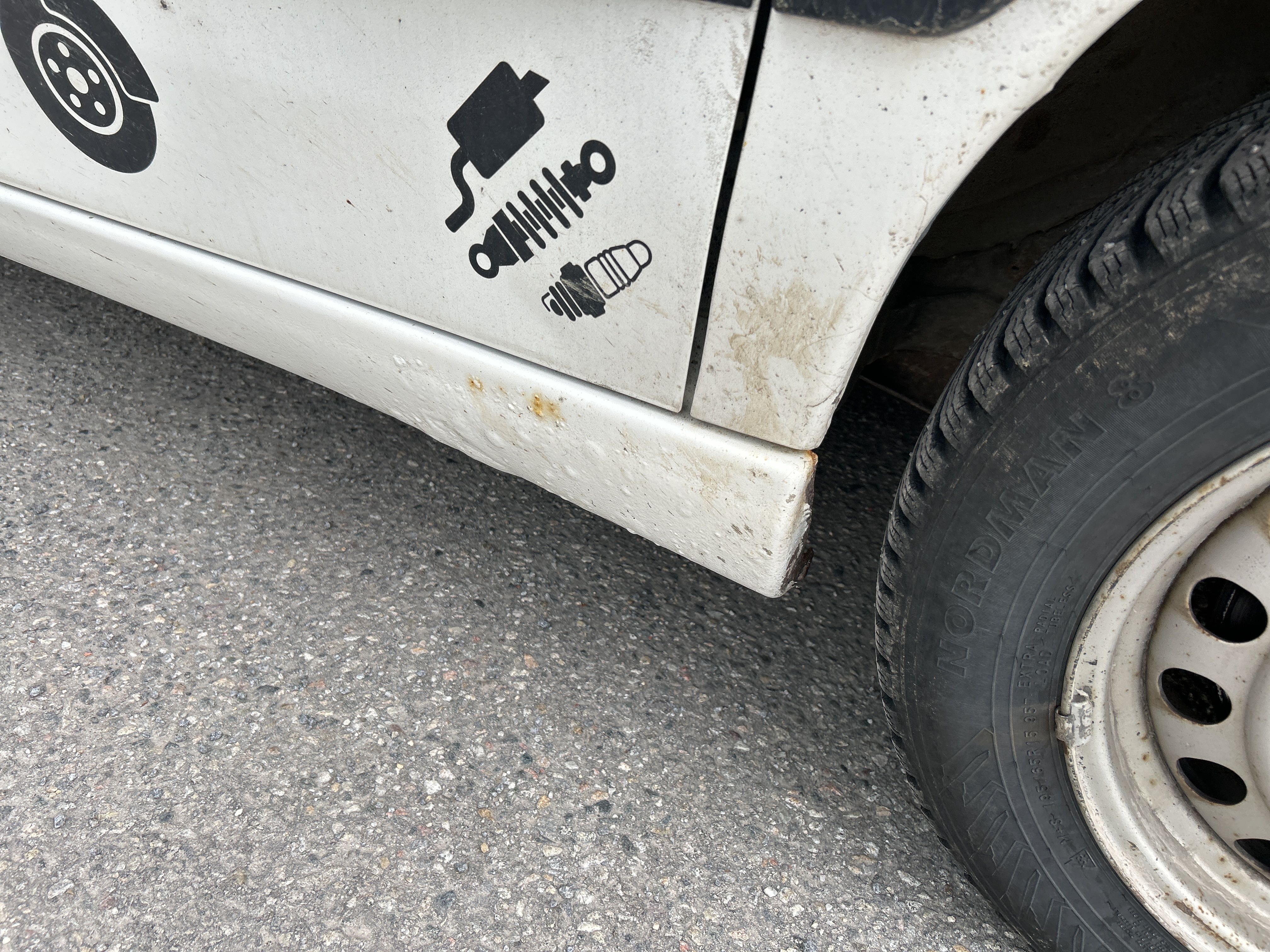Studded winter tires about 5mm are mounted on the car.