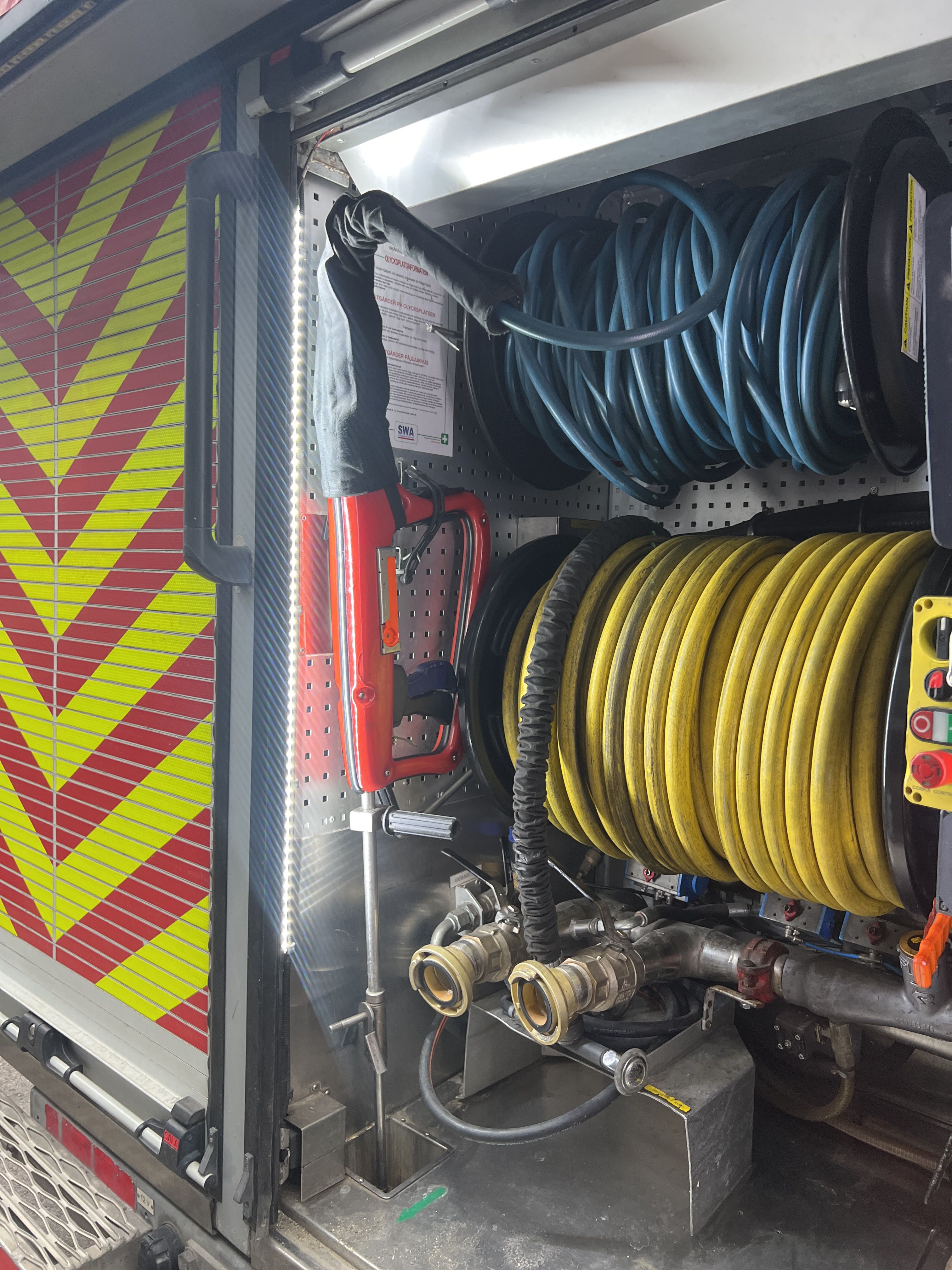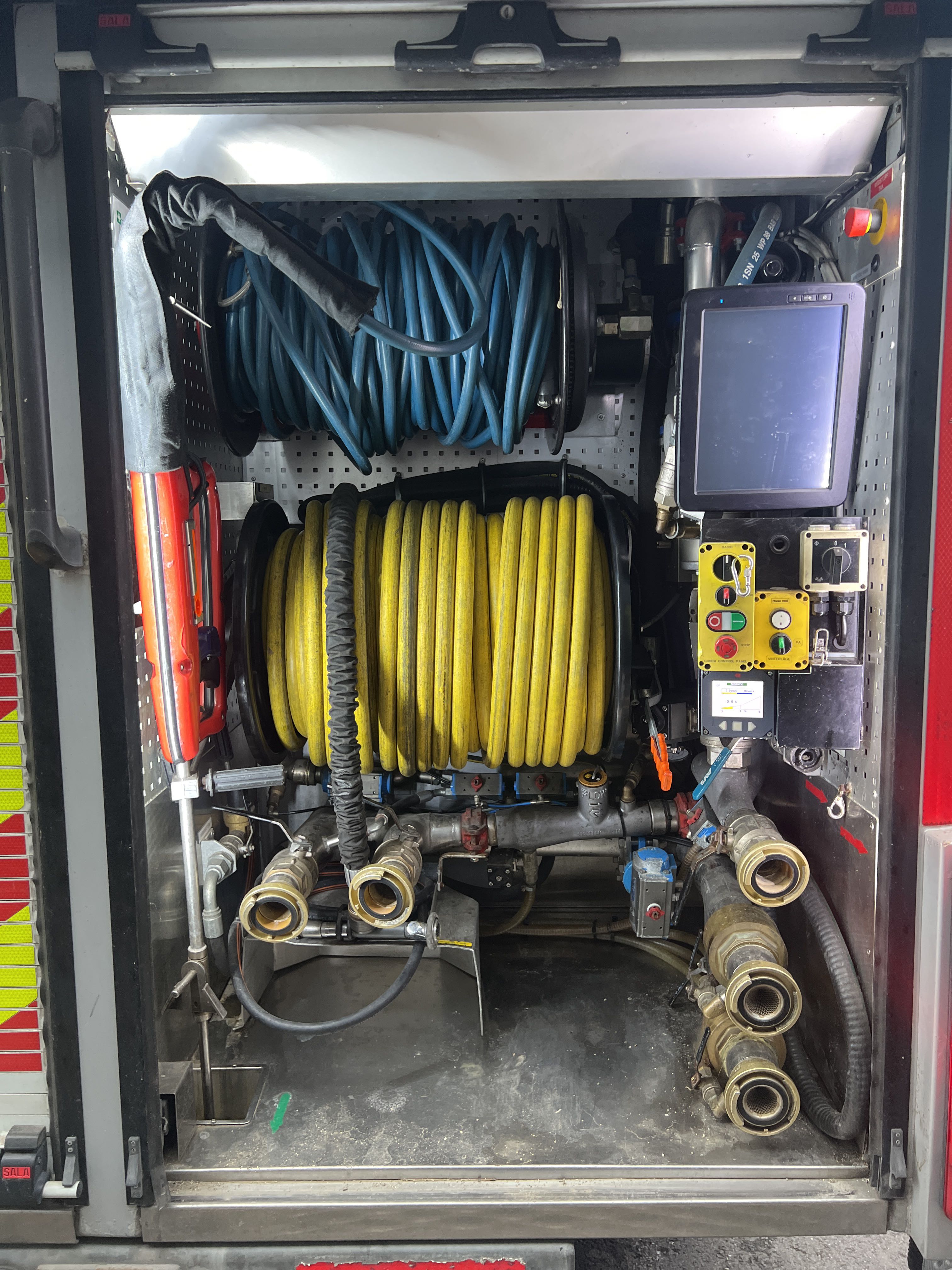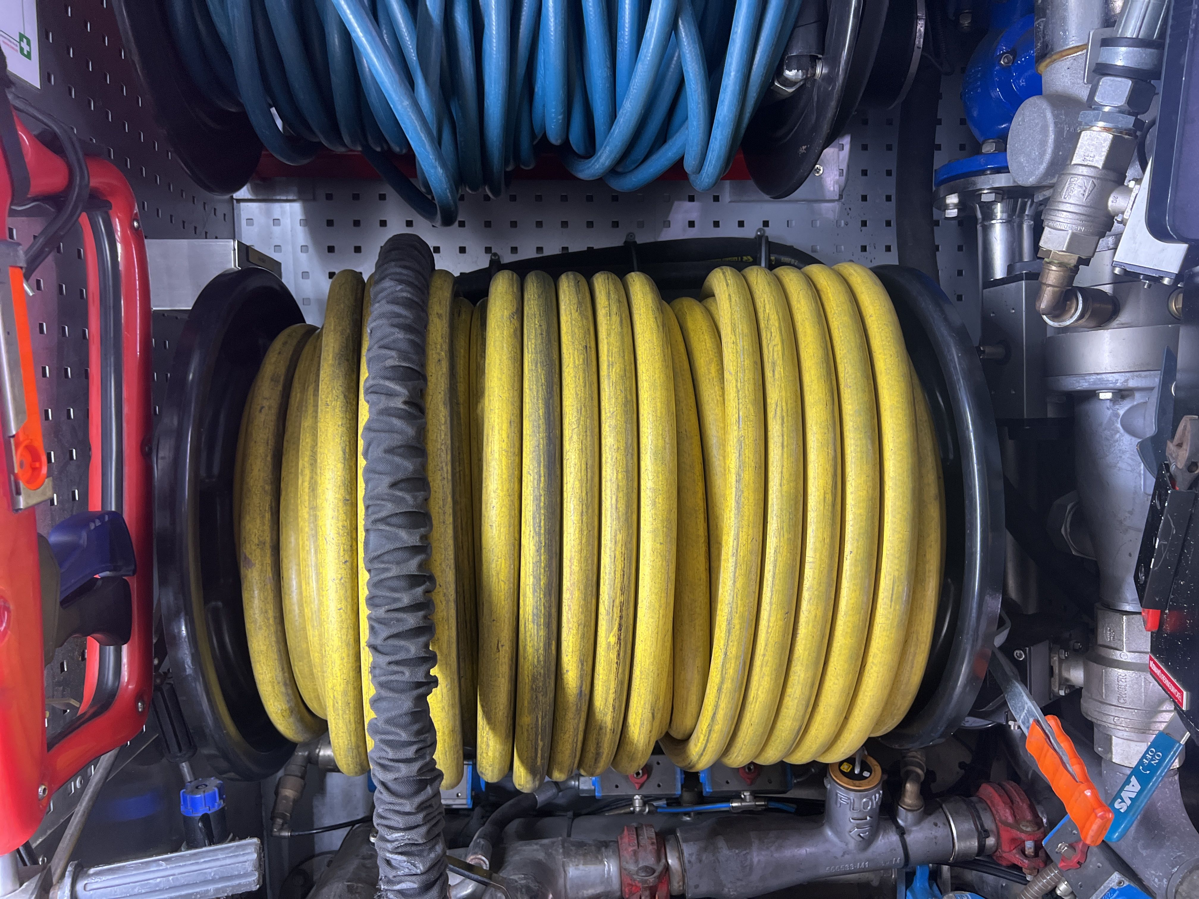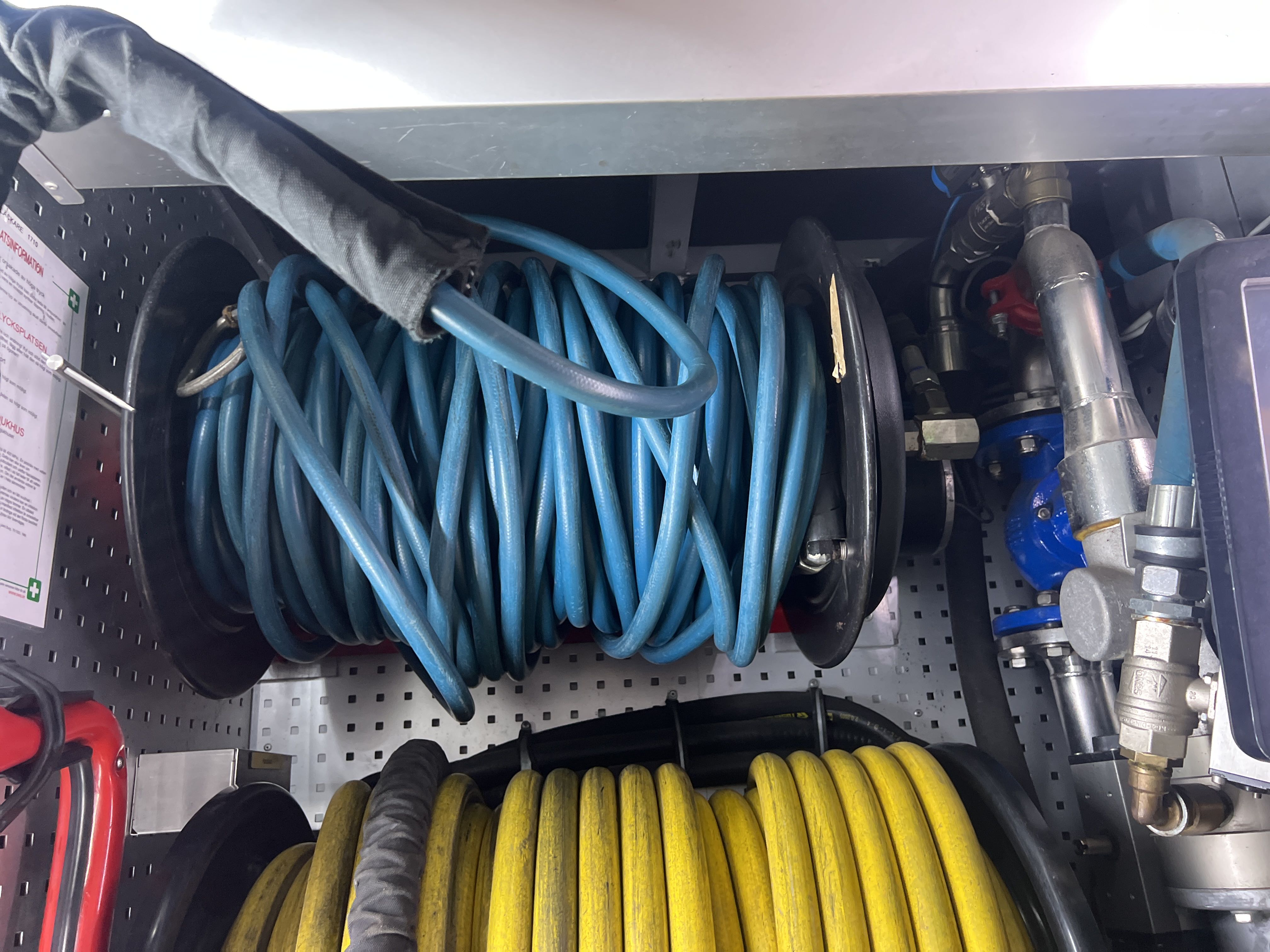 Water equipment with hose reels and couplings