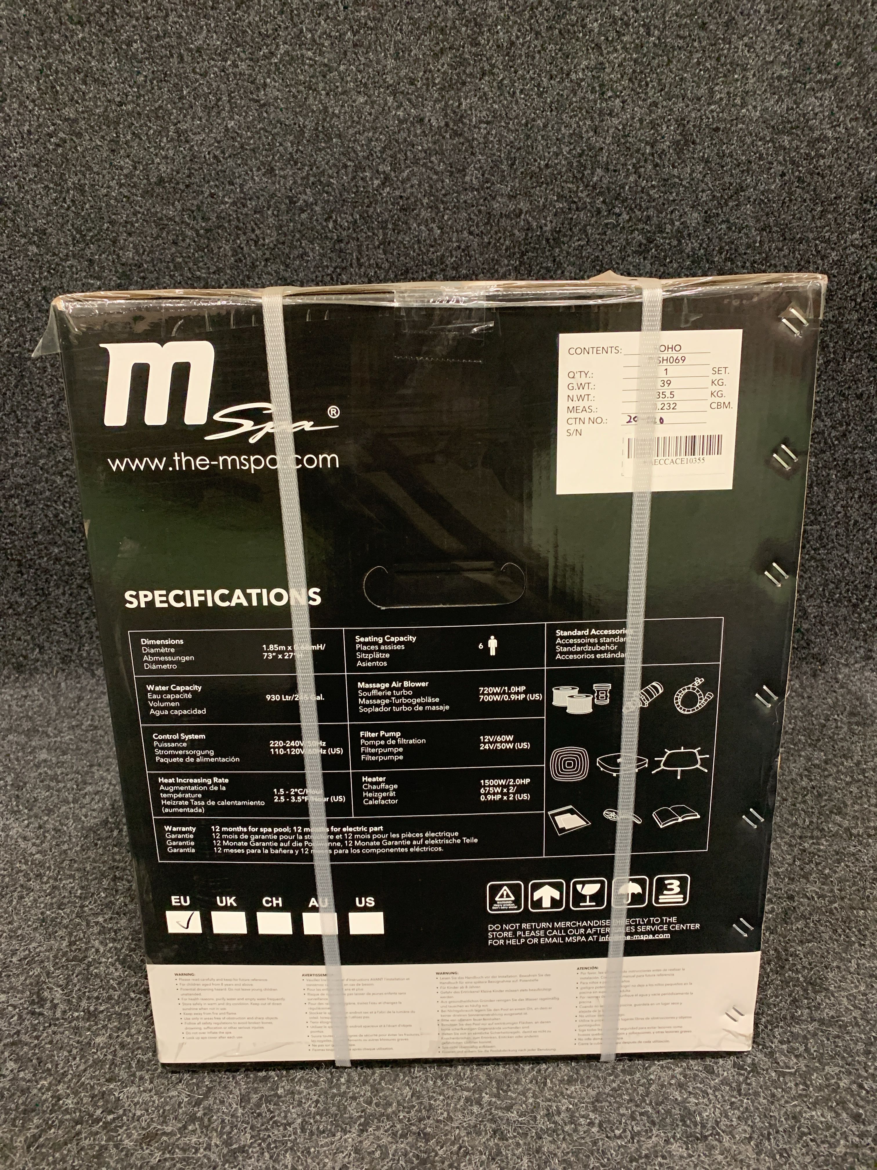 - Heater 1500W (heats 1.2 - 1.8 degrees/hour)