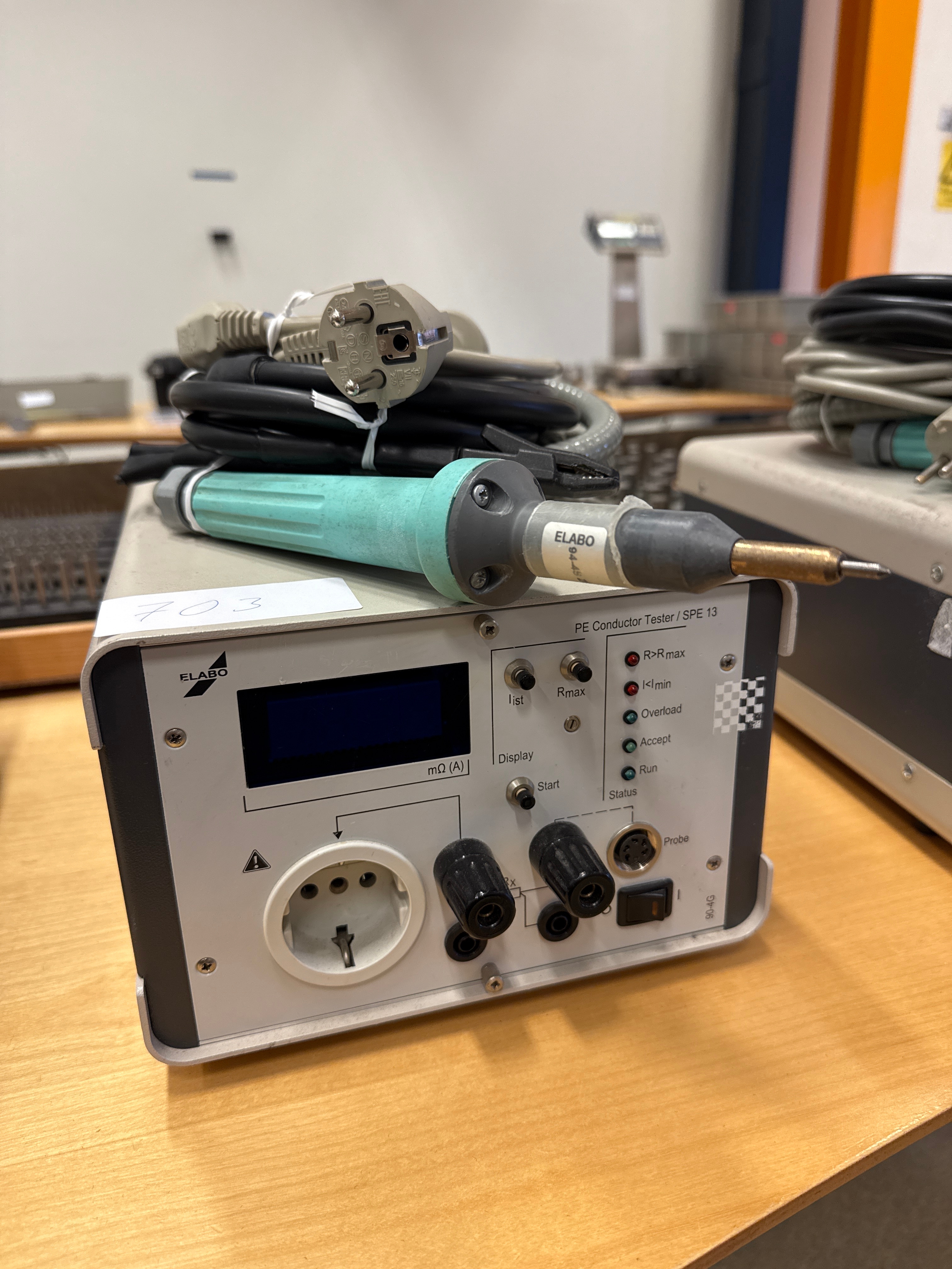 PE Conductor Tester SPE 13 from ELABO. It is used to measure protective earth resistance (PE – Protective Earth) in electrical installations or devices.