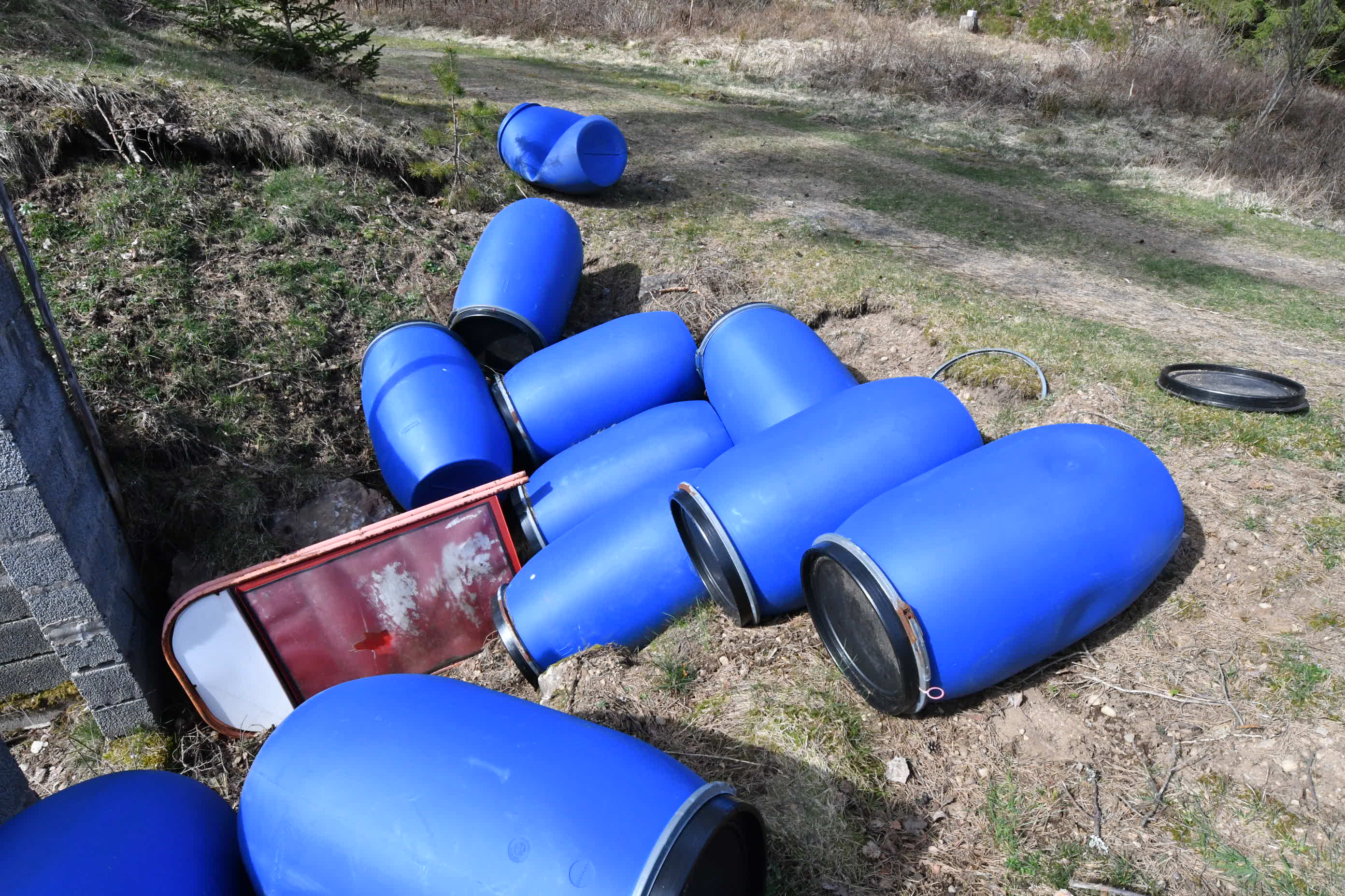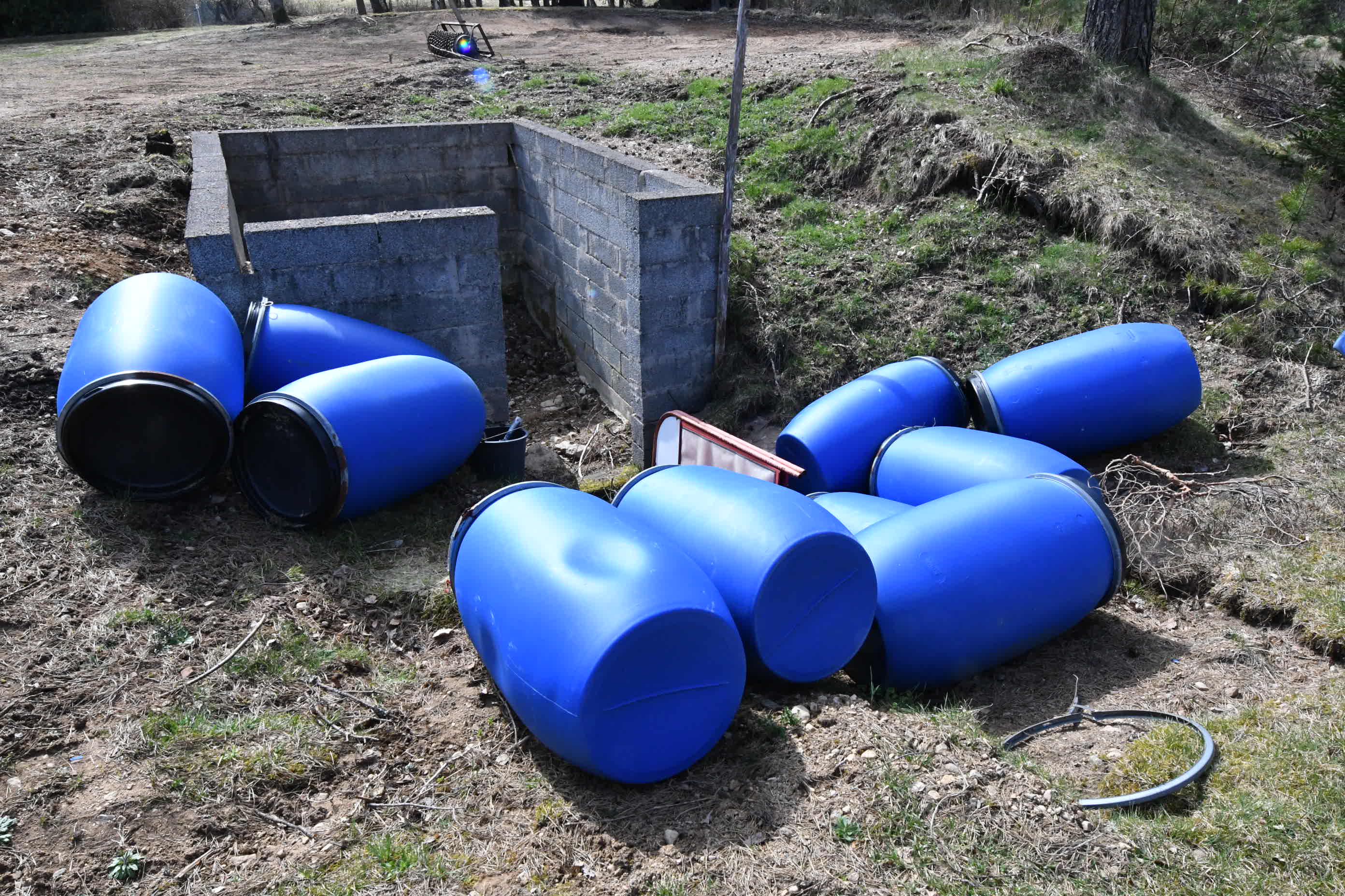 12 plastic barrels unused.