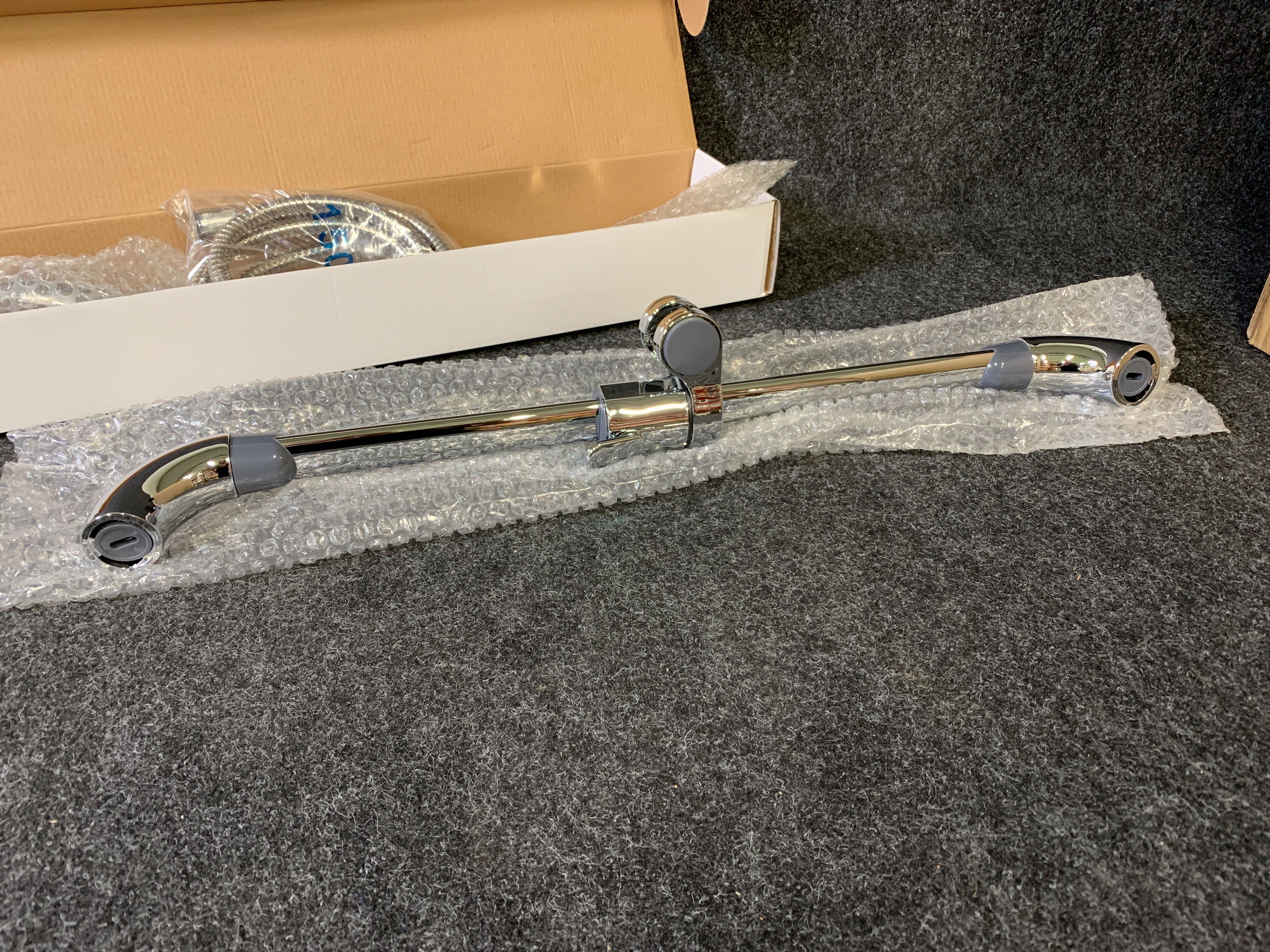 Hose, hand shower, shower rail, soap dish, etc.