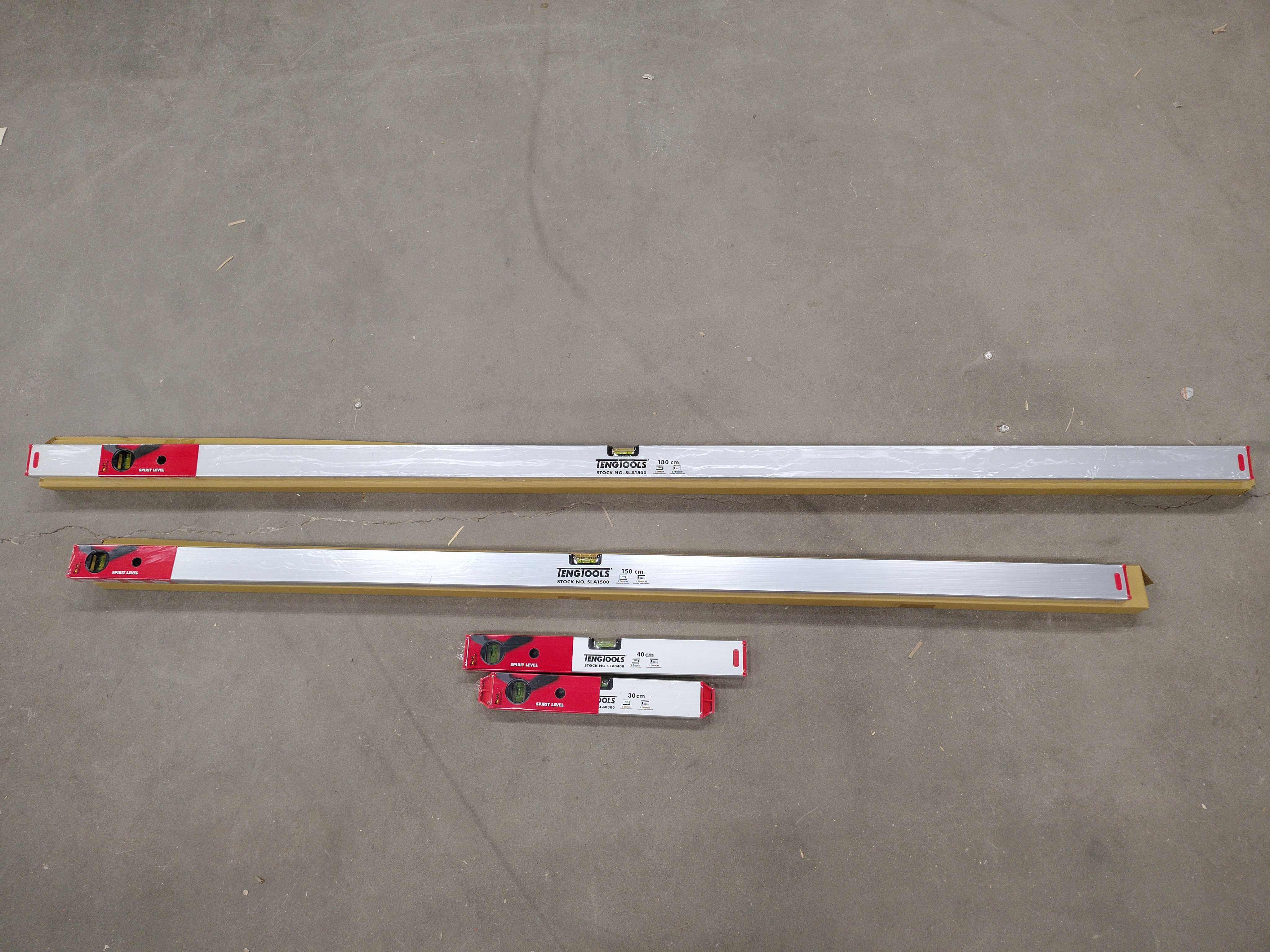 Spirit level, 4 pcs - Teng Tools, 300mm, 400mm, 1500mm, 1800mm, aluminum, 2 spirit levels