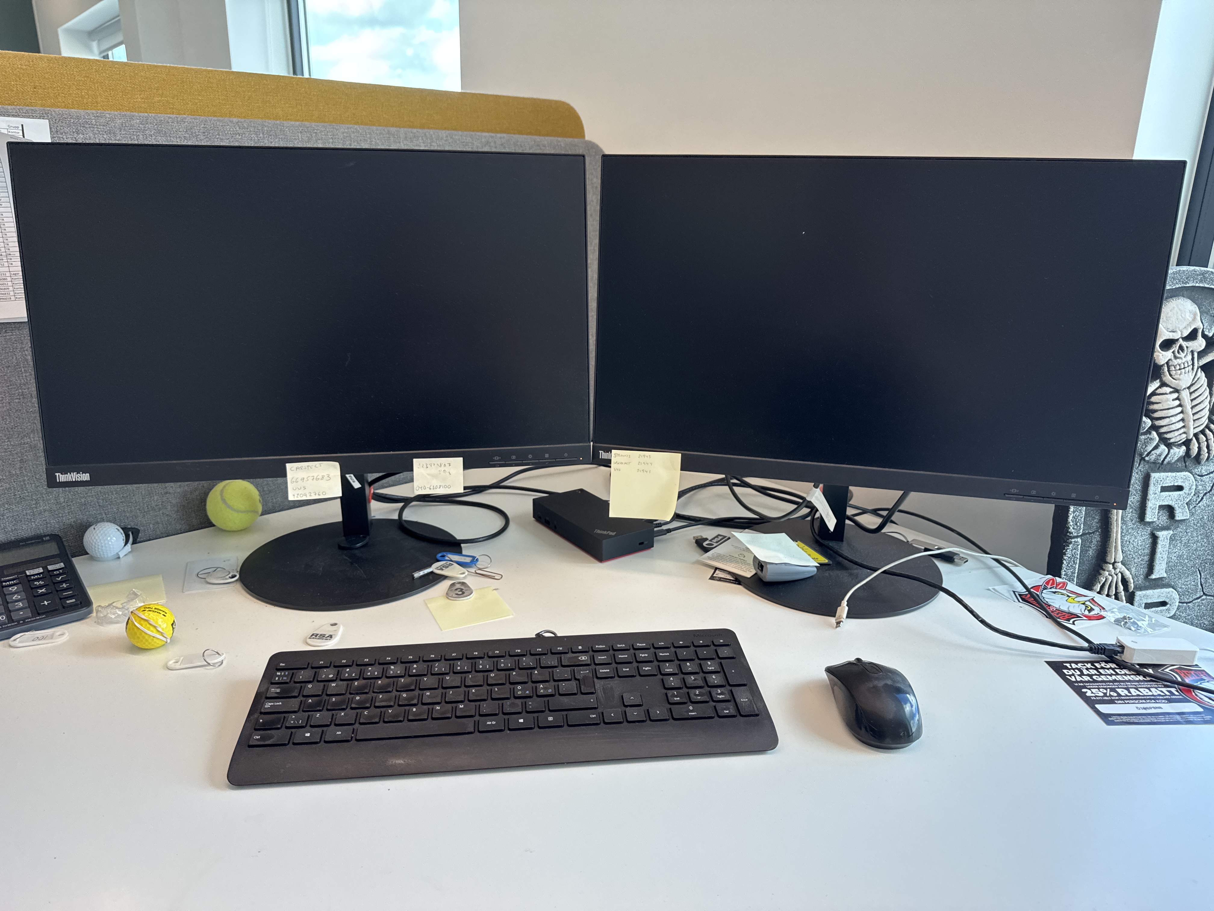 2 monitors, keyboard, mouse and docking station