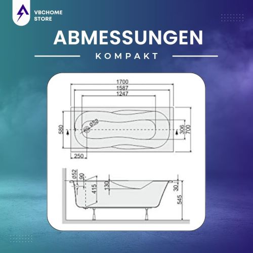 - Bathtub 1700 x 700 x 410 mm