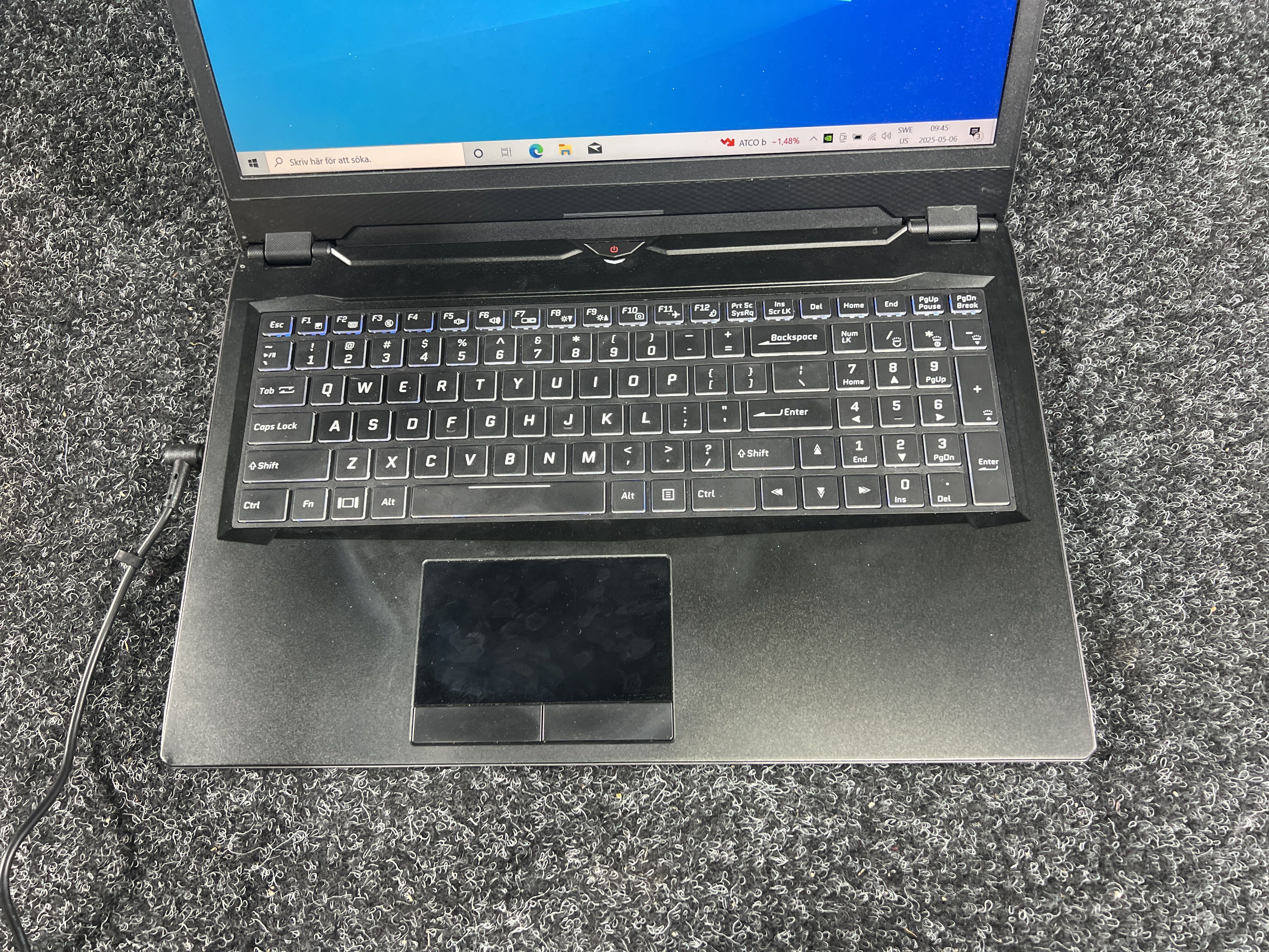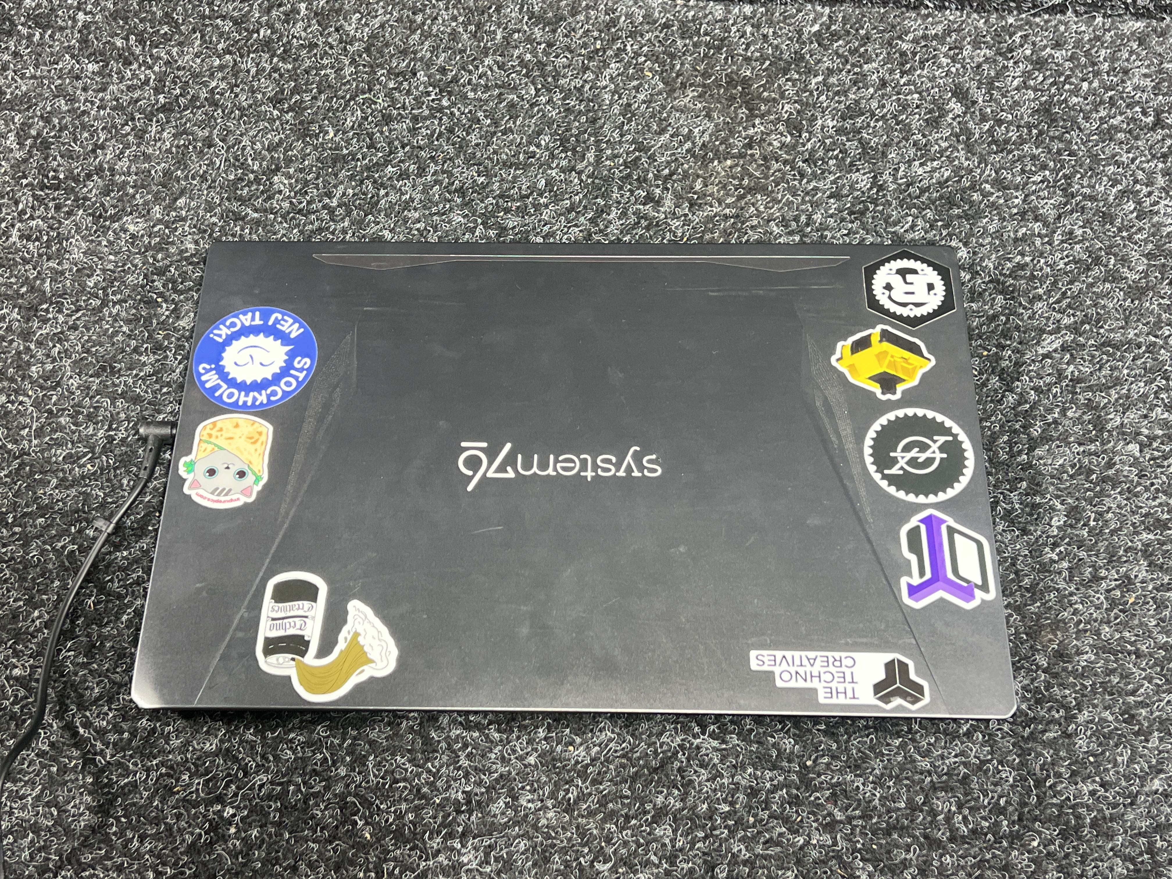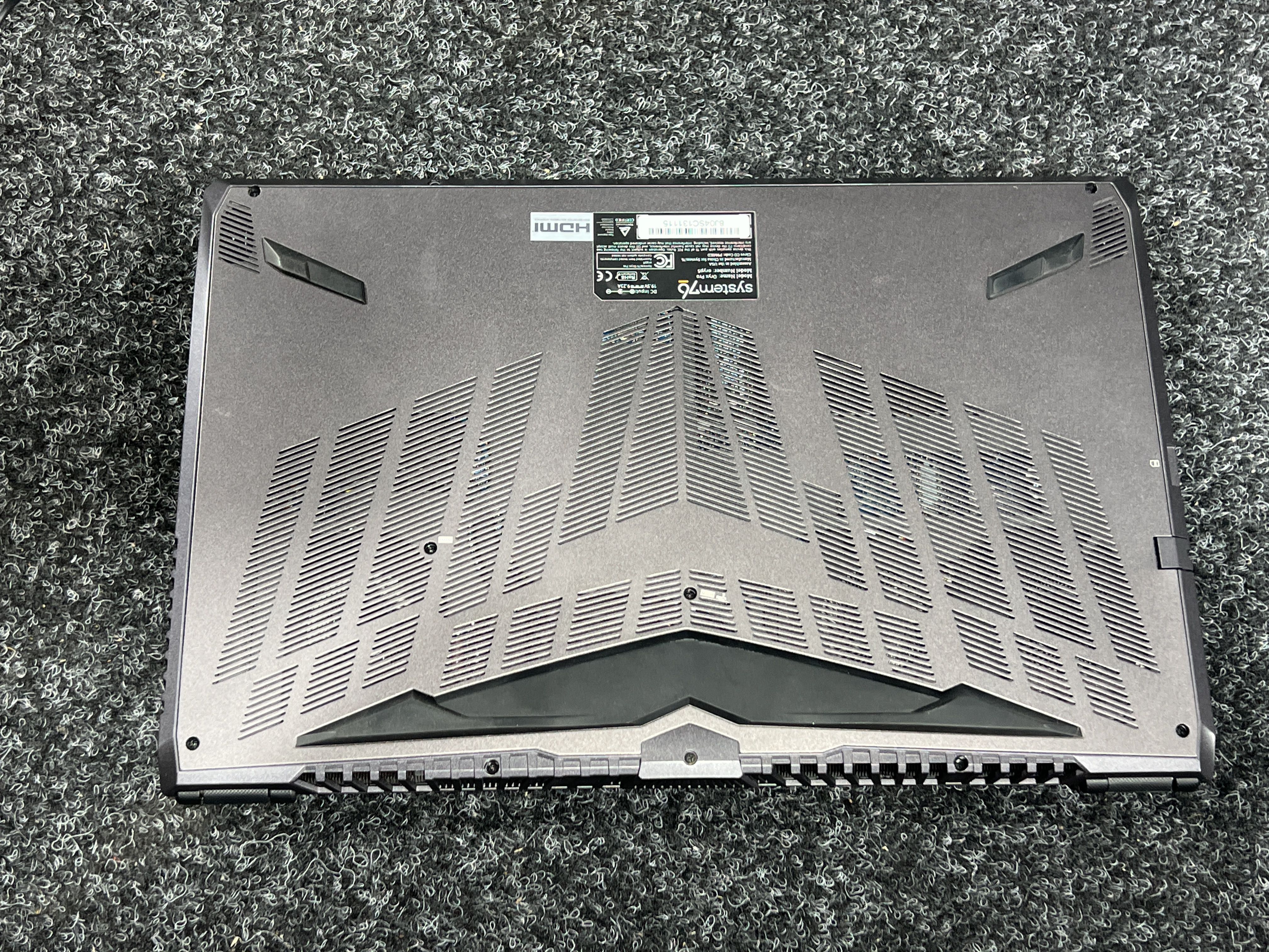 Laptop from System76 Oryx Pro with Windows 10 and charger.