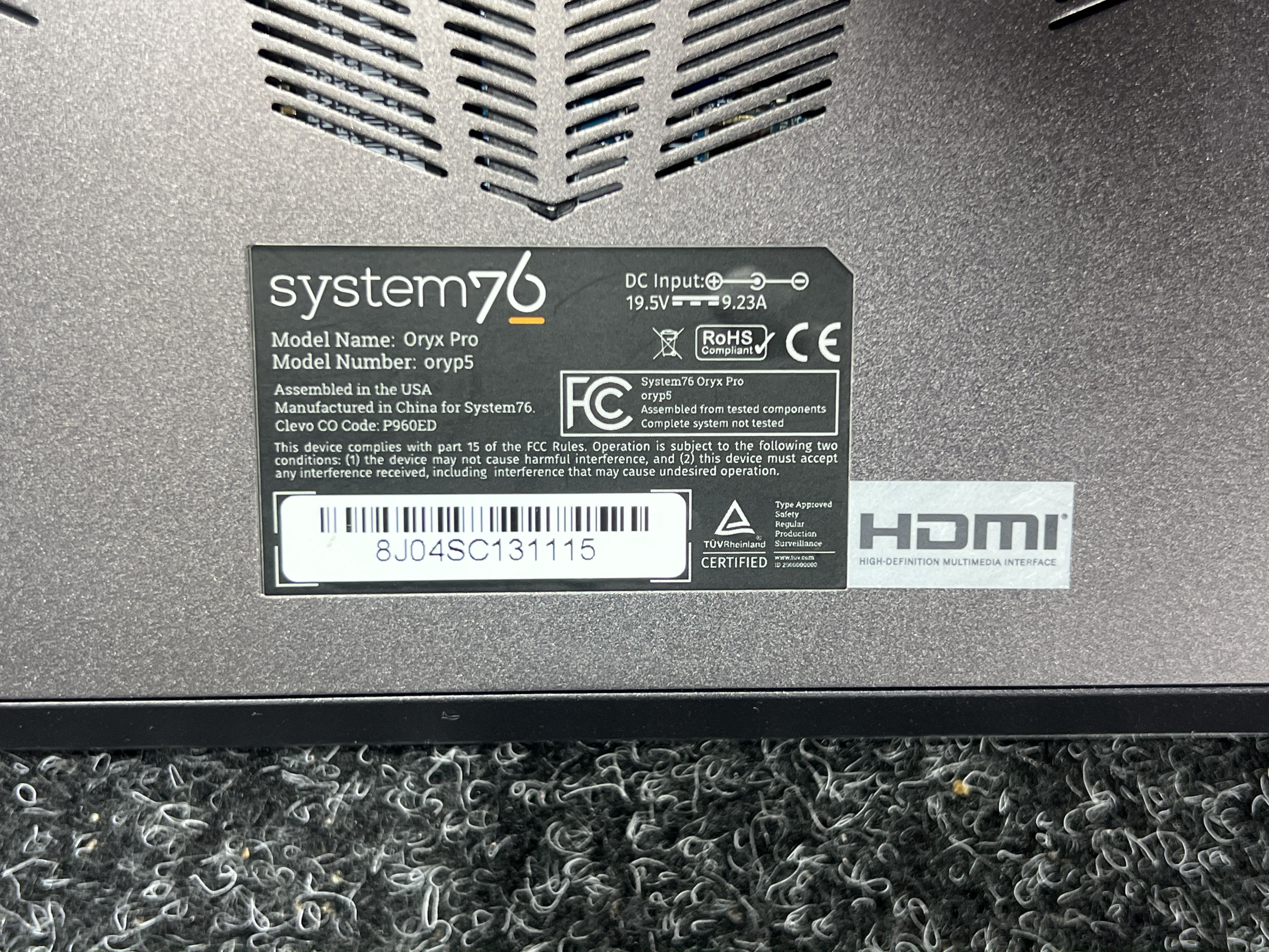 • Model: System76 Oryx Pro