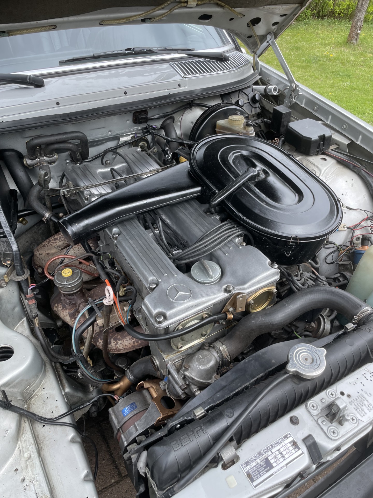 The rust that was previously present was repaired and the car was fully painted in the original color. Recently, the brakes have been renovated and a new exhaust system installed. According to the owner, some rubber bushings in the front and rear axle may need to be replaced, but nothing urgent. The plastic protective cover over the radiator is not original.