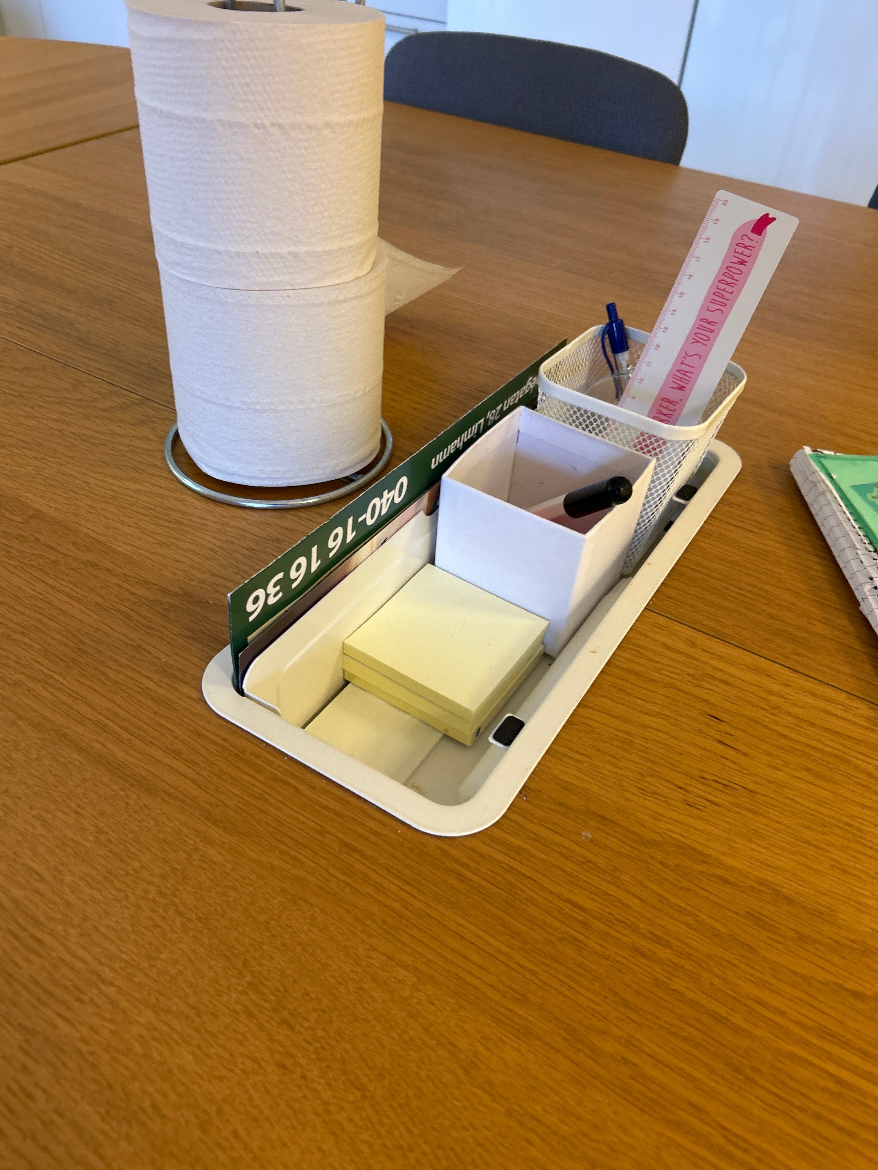 Dining table and loose contents in kitchen