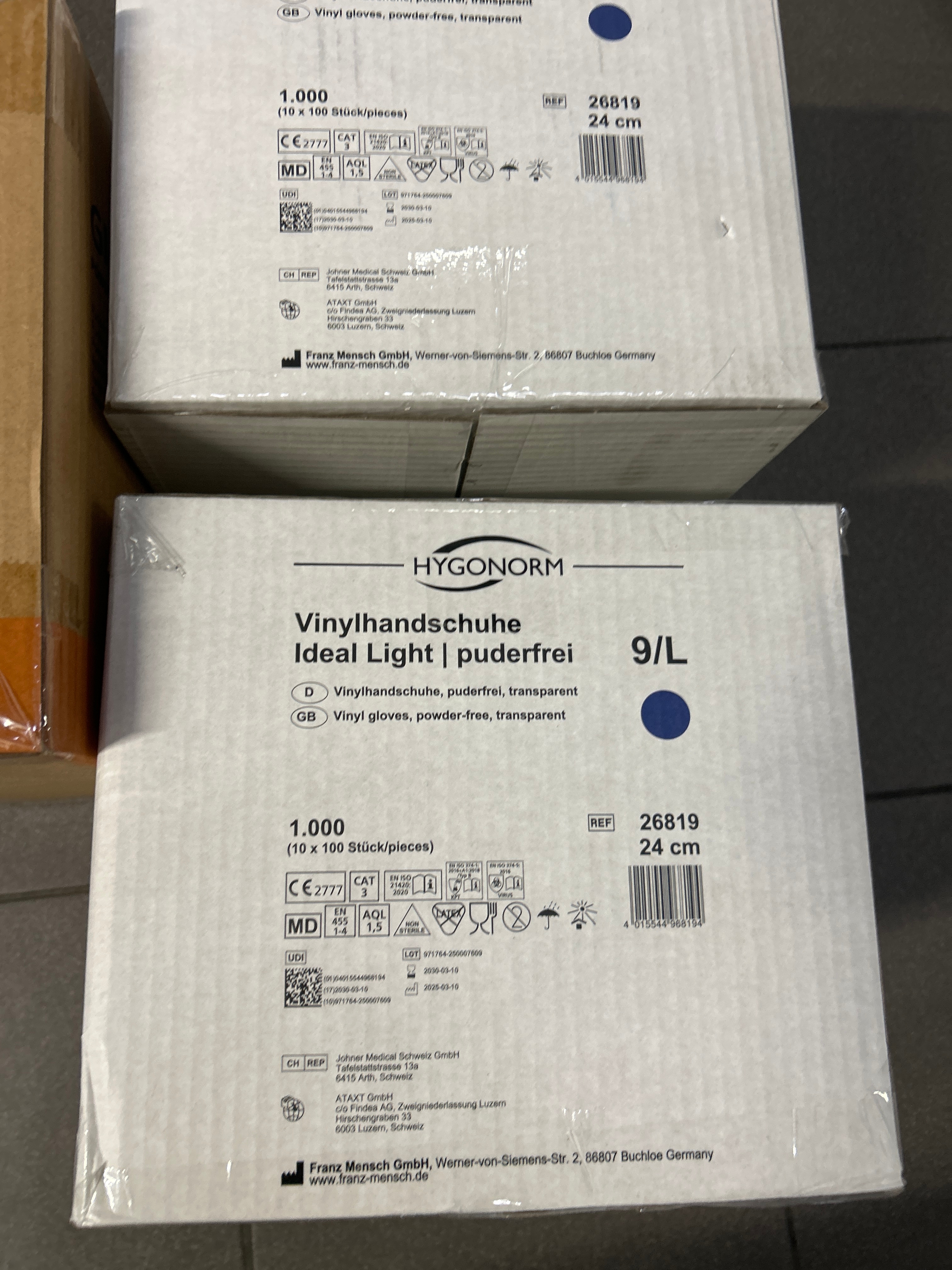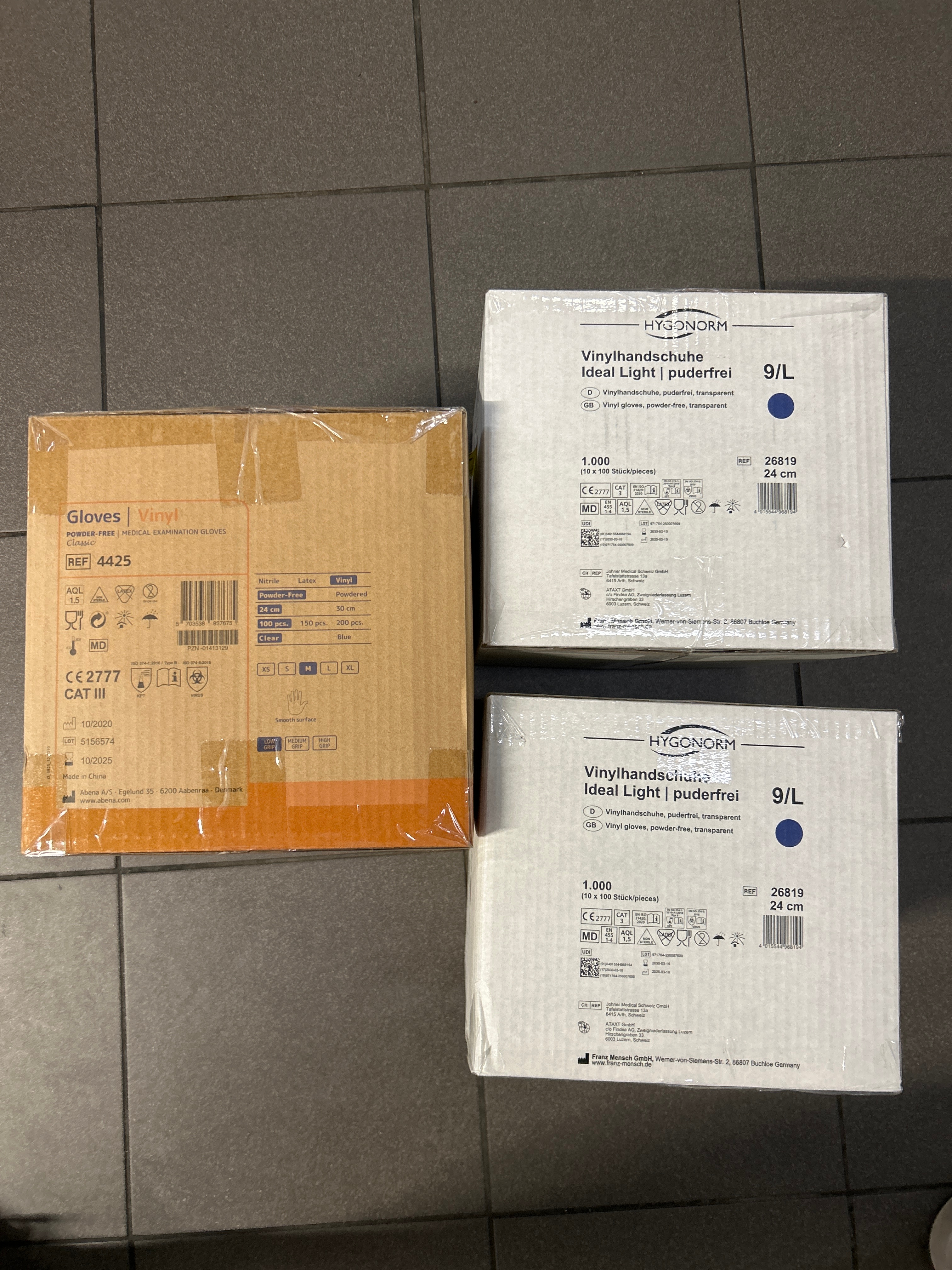 3 boxes of vinyl gloves