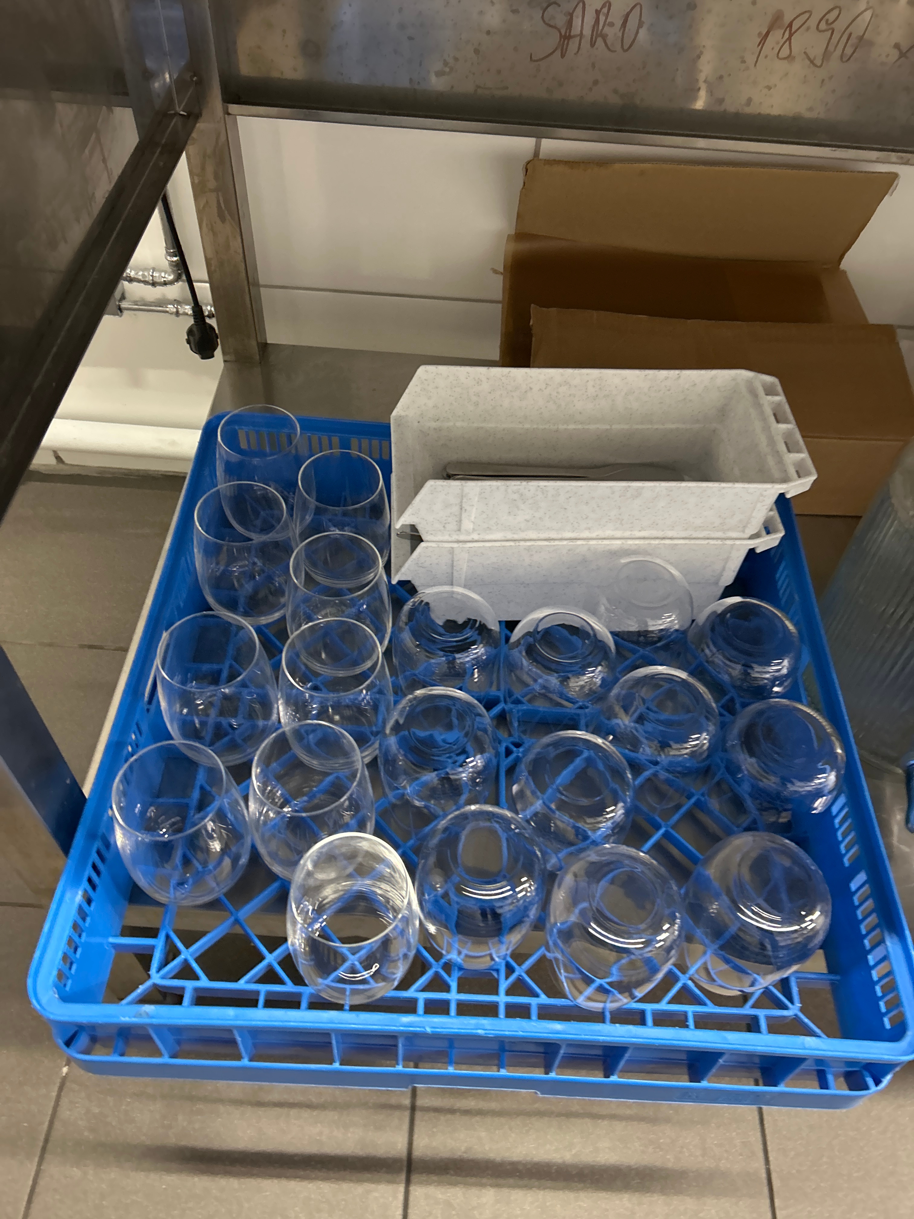 Different types, sorted in dish baskets