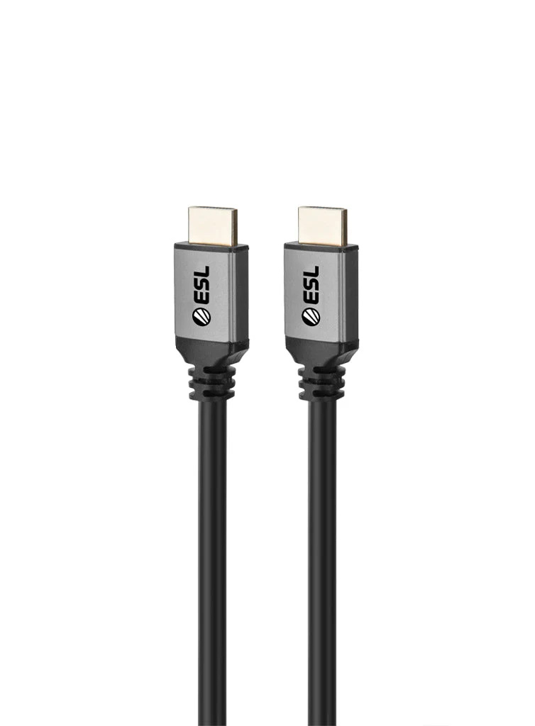 HDMI cable from ESL with black, flexible conductors and metal-reinforced connectors. Used for digital transmission of audio and video between compatible devices such as monitors, computers, game consoles and projectors.