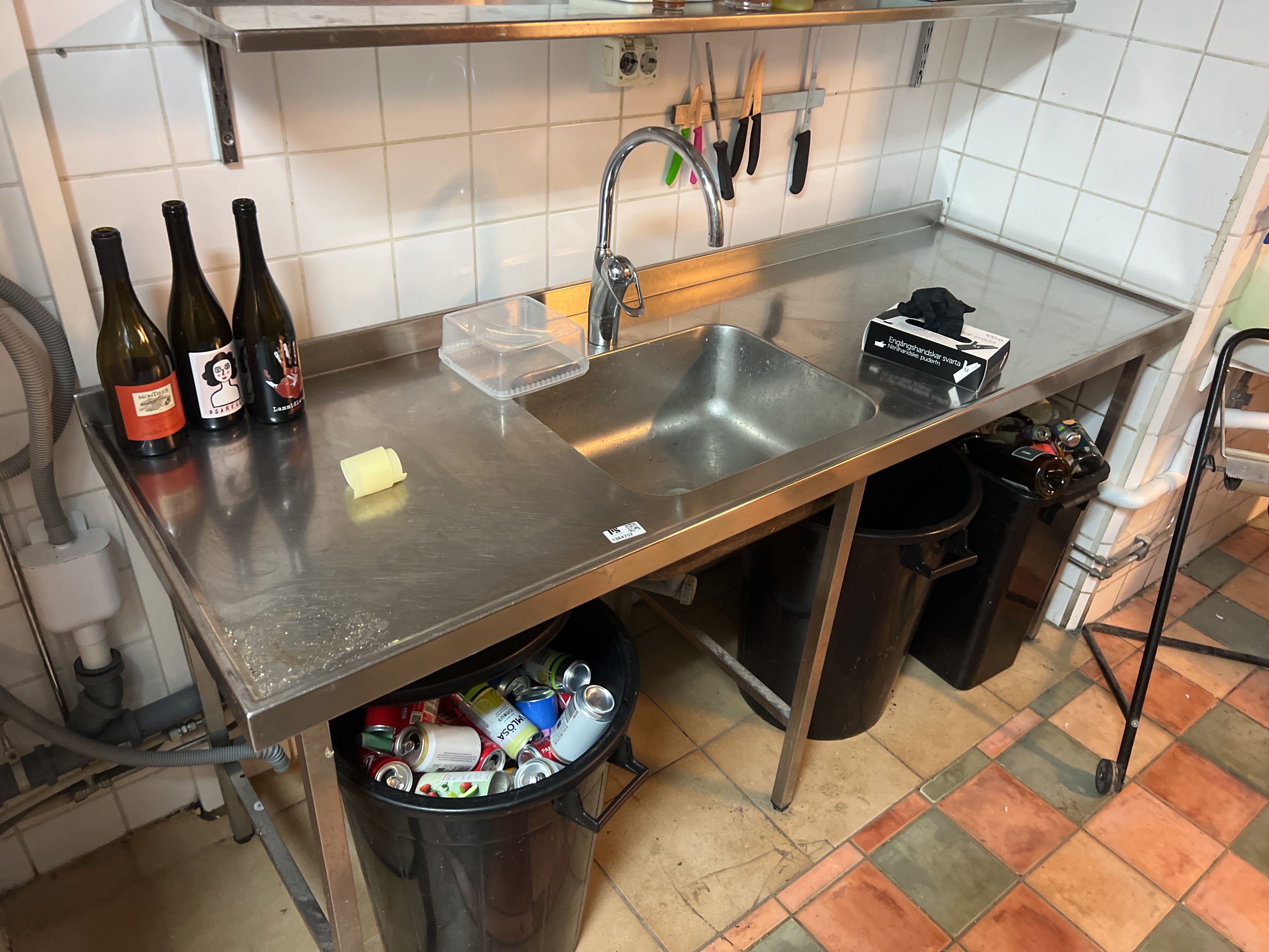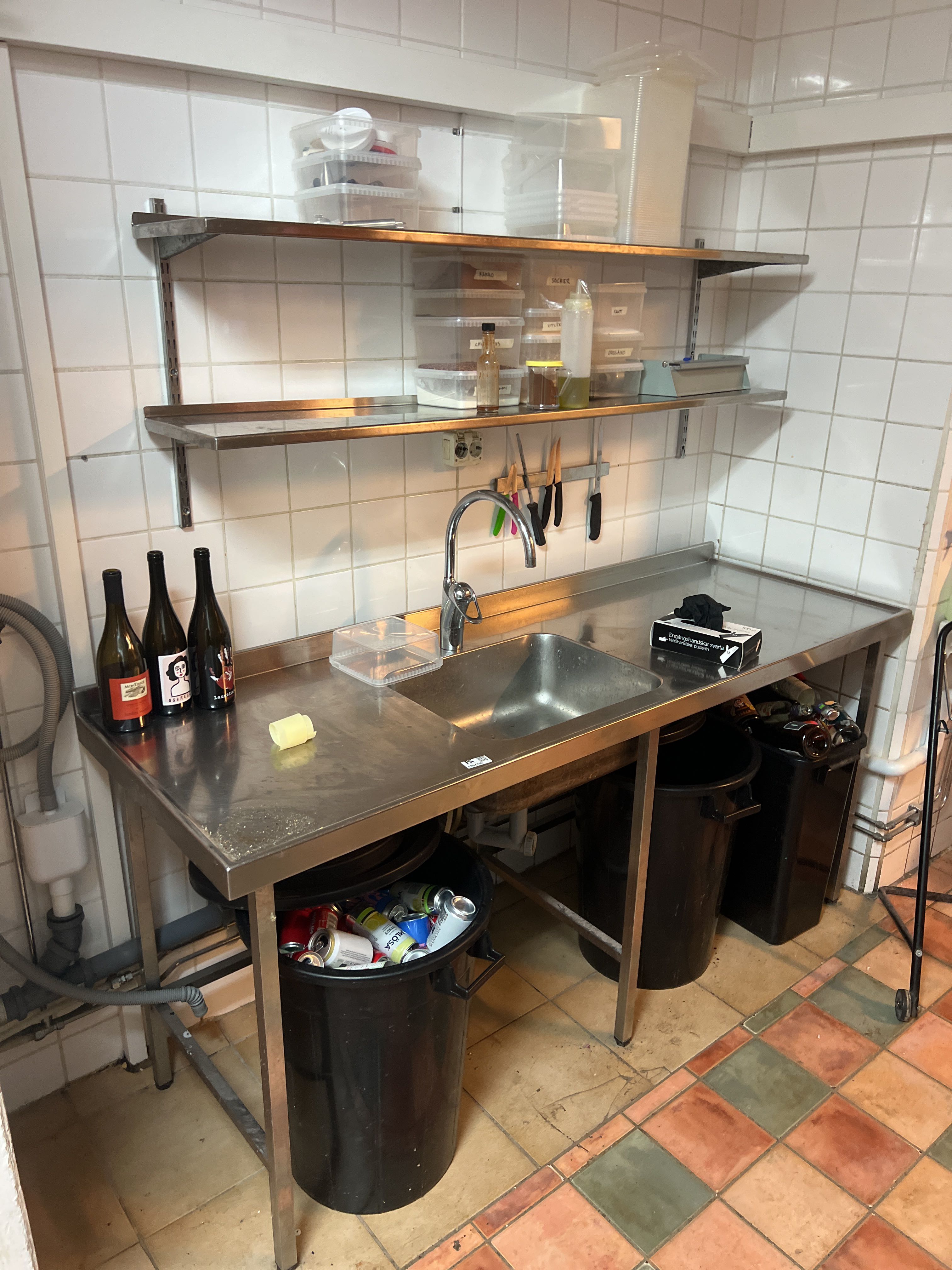 Stainless steel sink and shelves