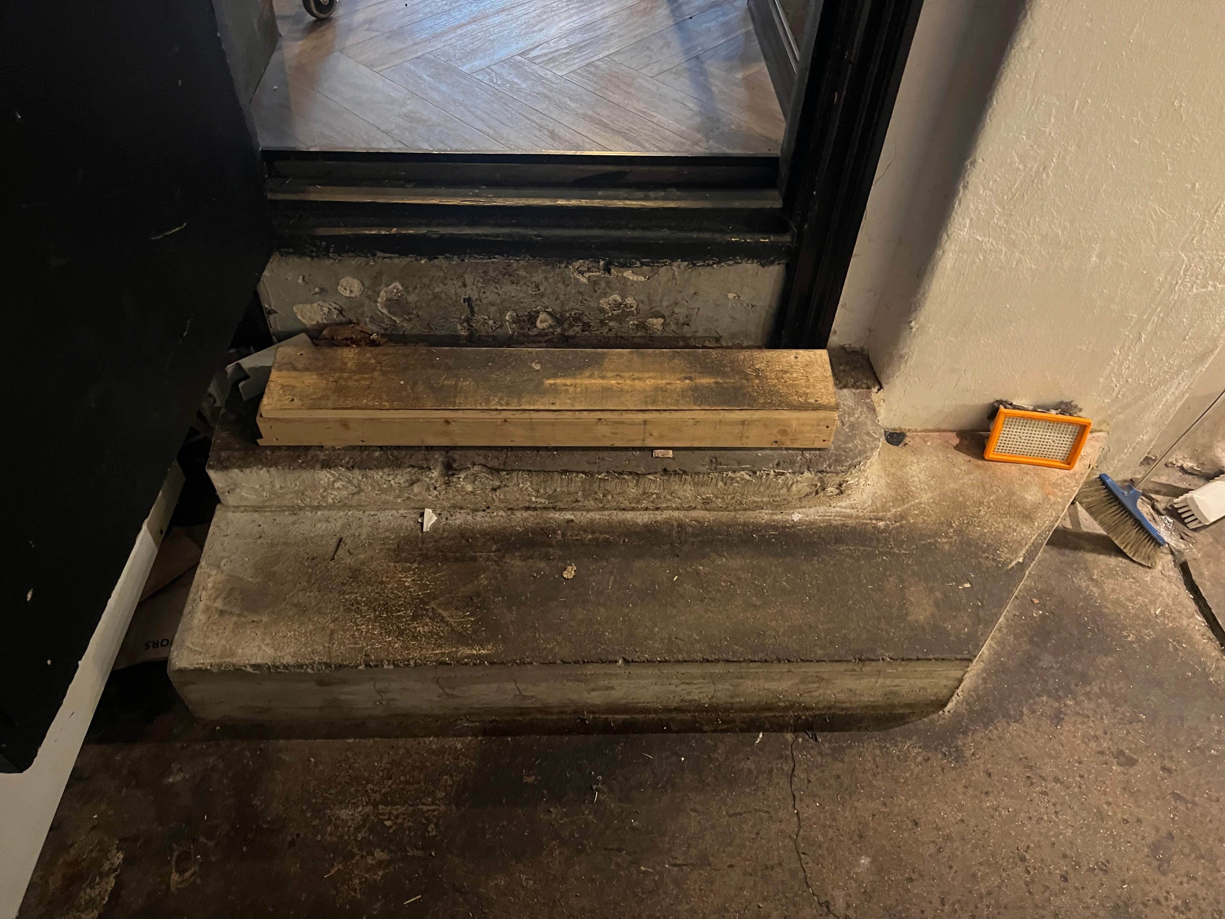 The object is in the kitchen and needs to be carried up 3 steps to the dining room and then up 3 steps to the ground floor, see the last 2 pictures.