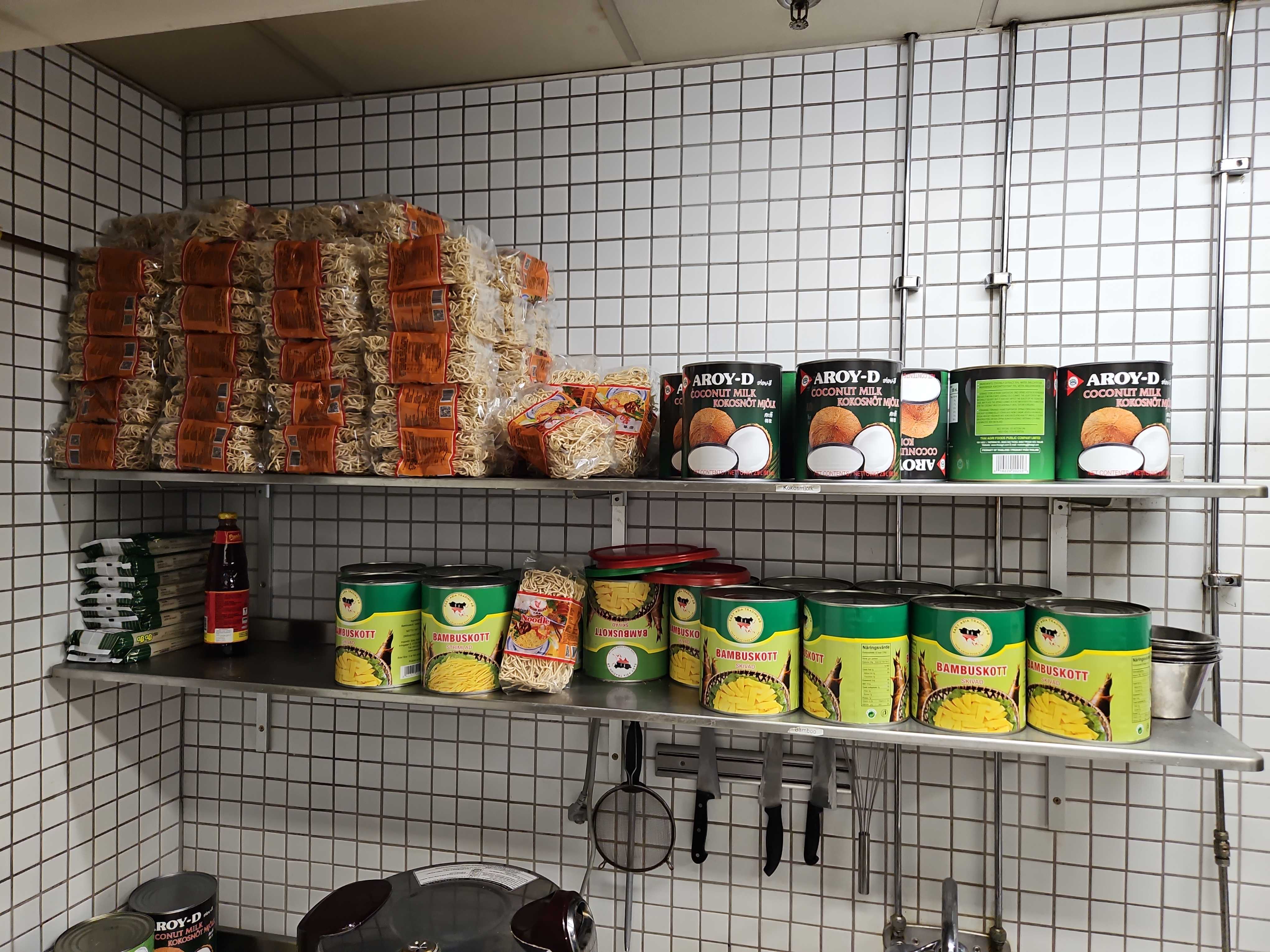 2 stainless steel shelves and contents