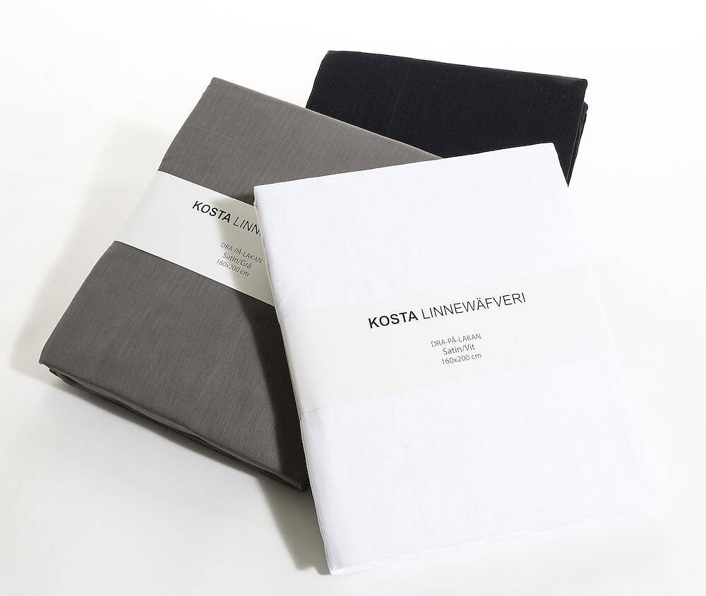 Soft and luxurious fitted sheet in 100% cotton sateen with elastic on the sides from Kosta Linnewäfveri.