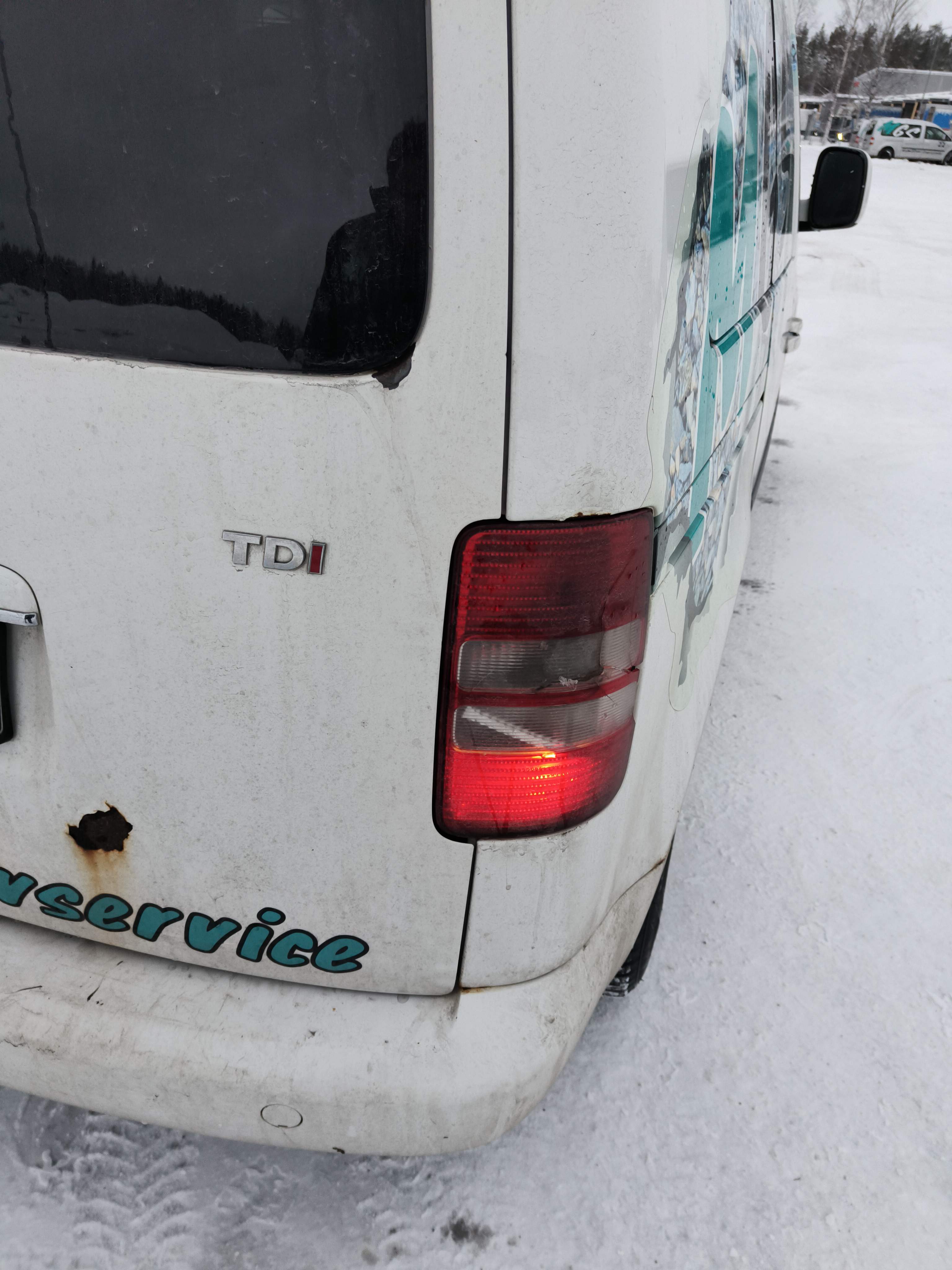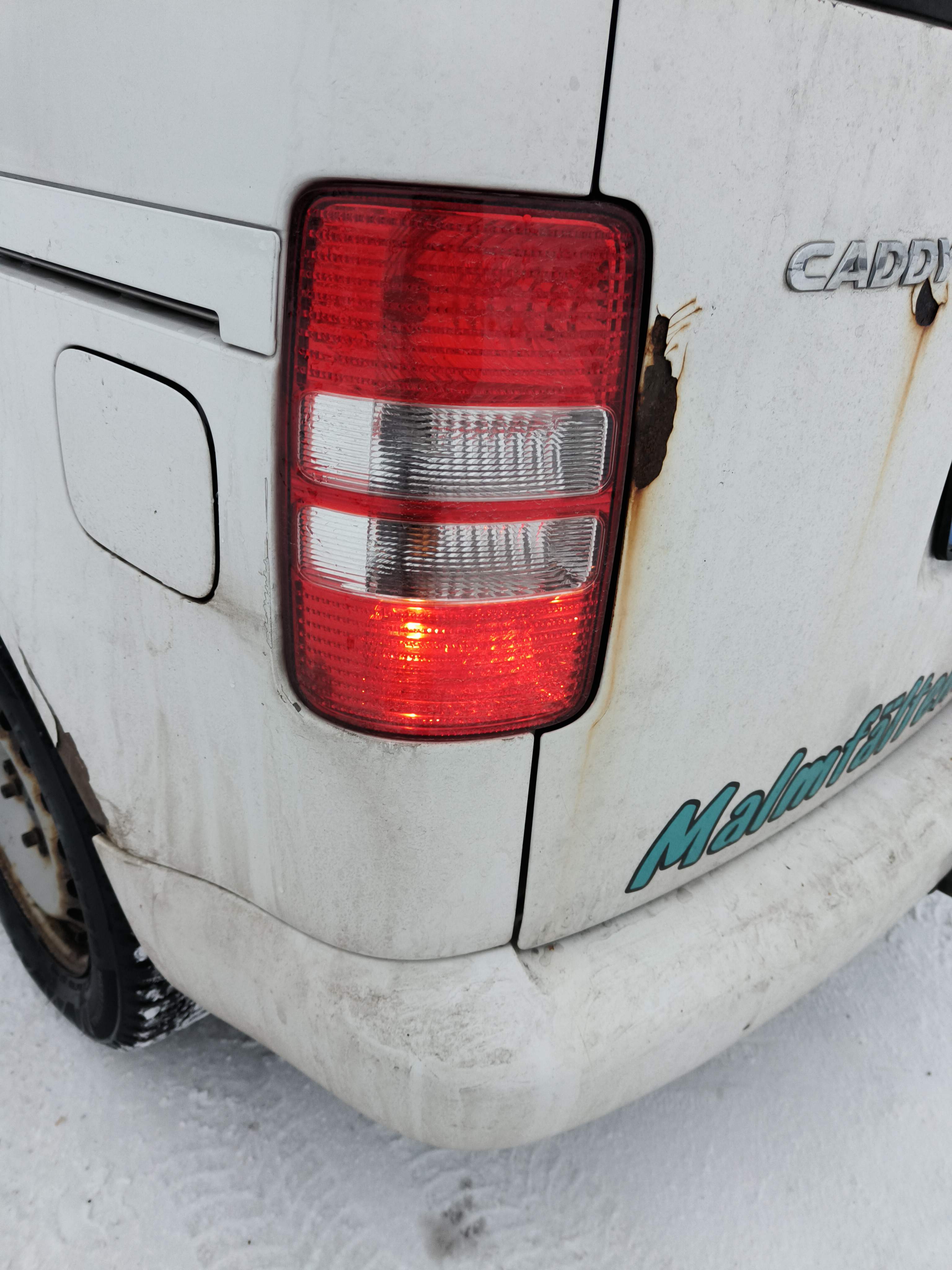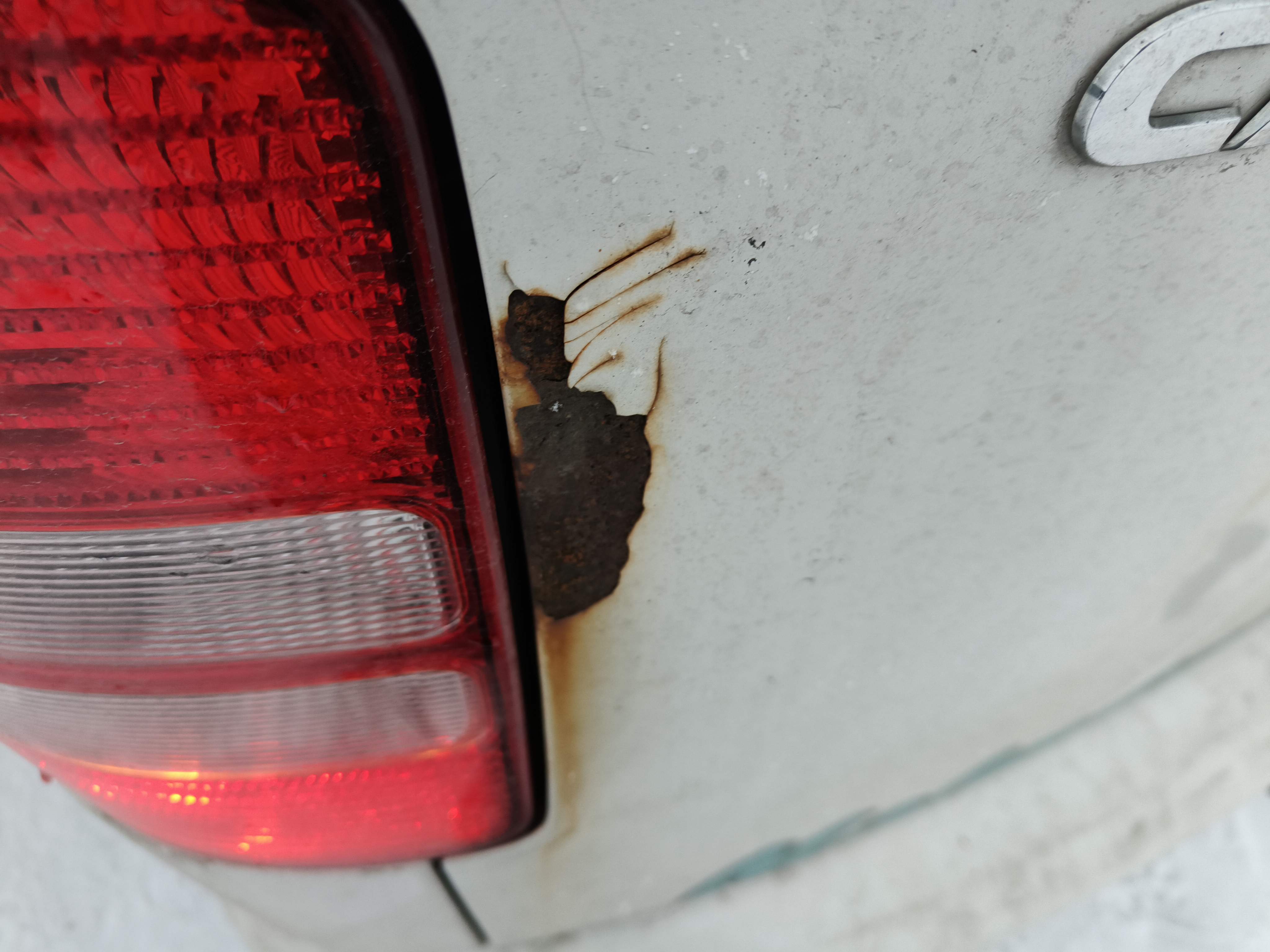- Crack in one of the taillights.
