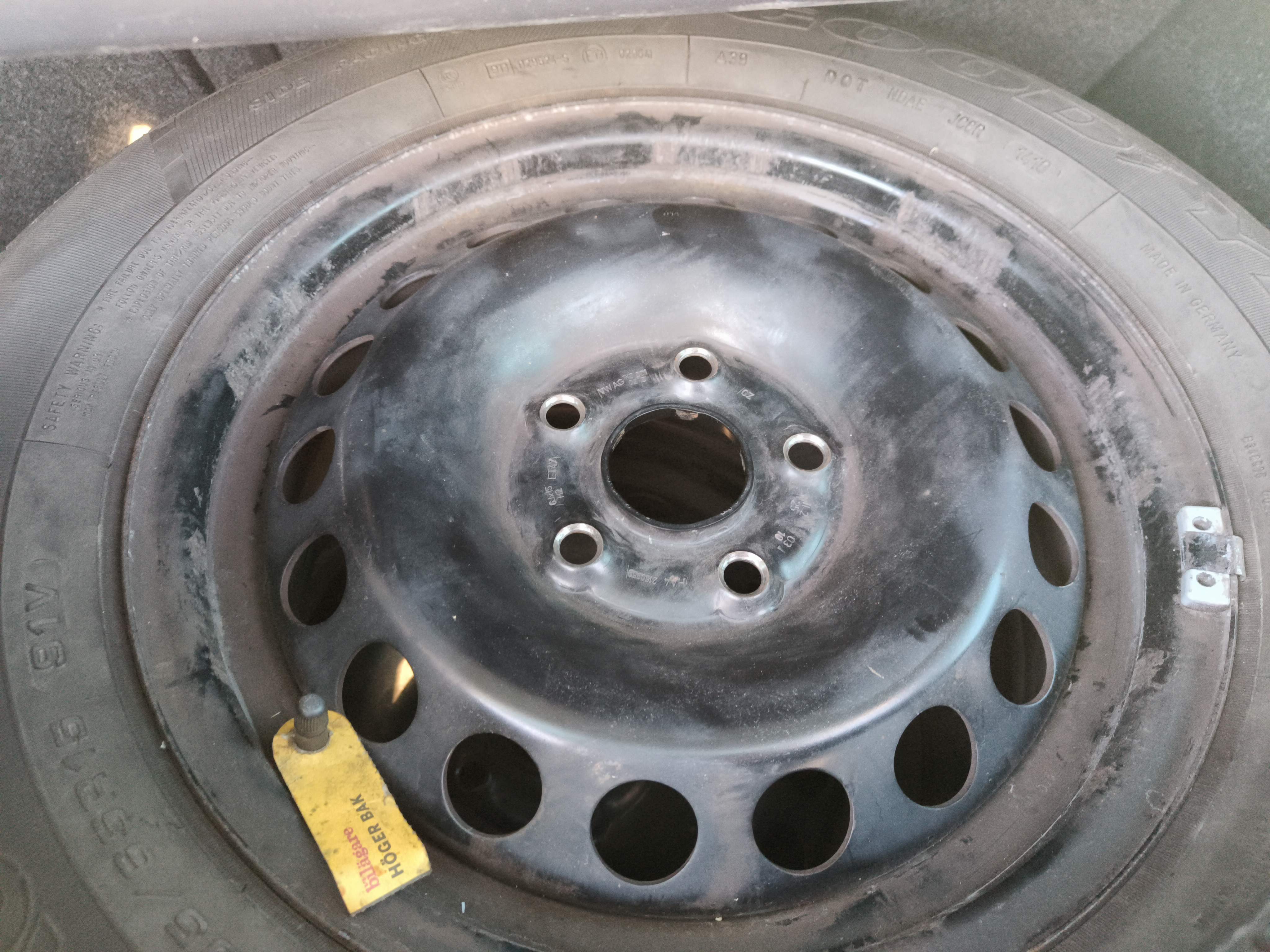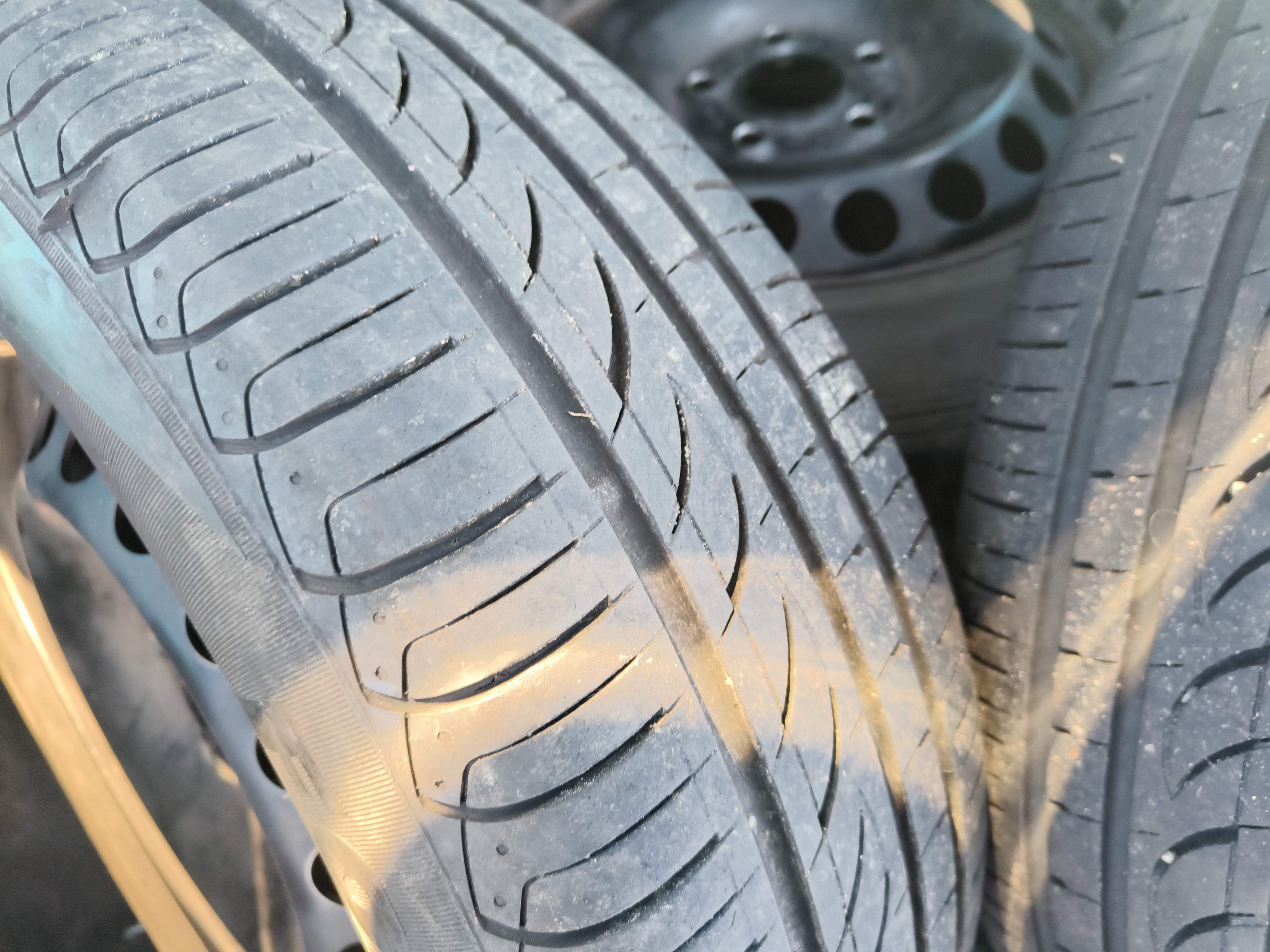 Includes summer tires on steel rims, approximately 40-50% of the tread depth remains.