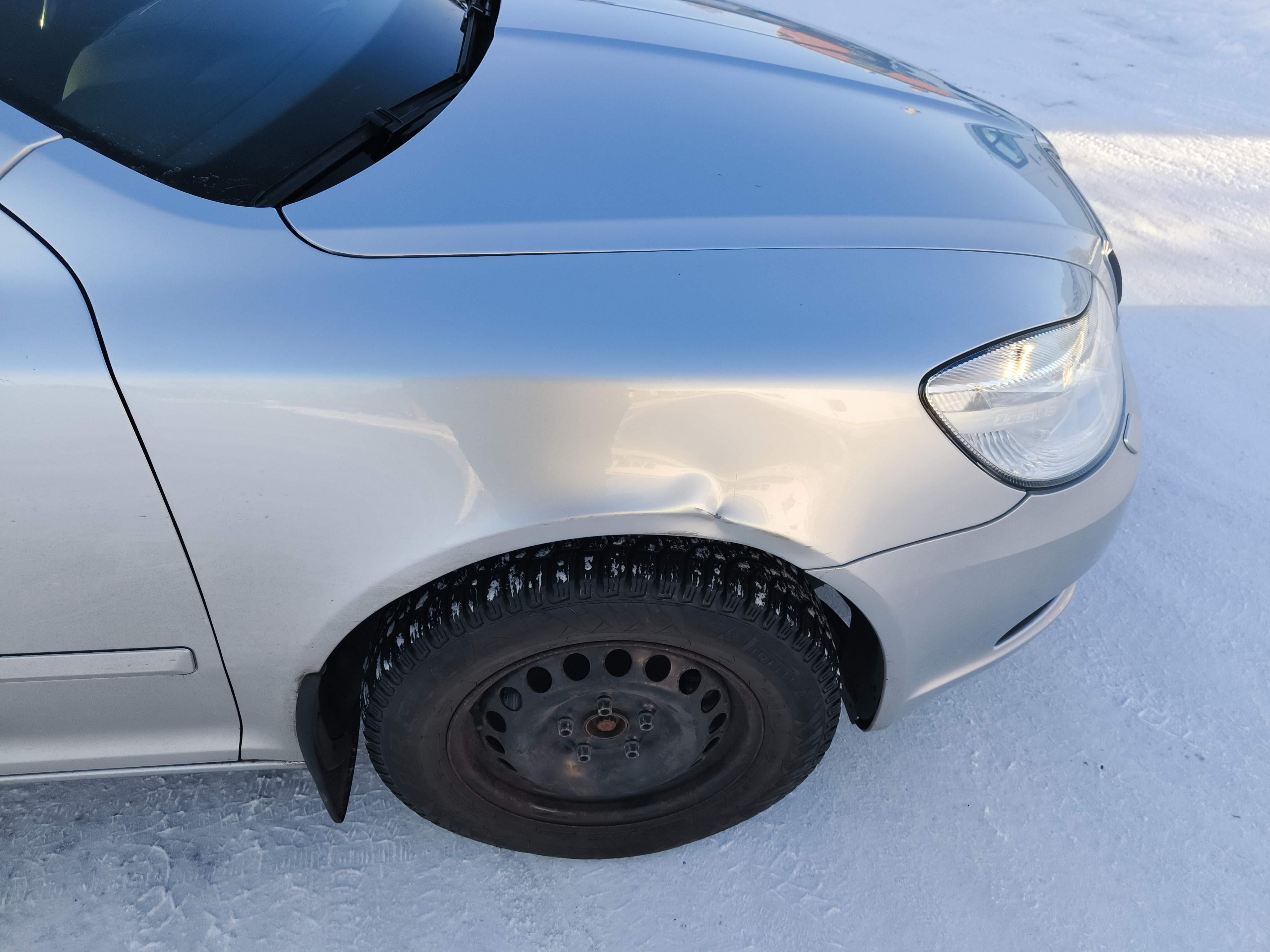 - Small dent on the right front fender.