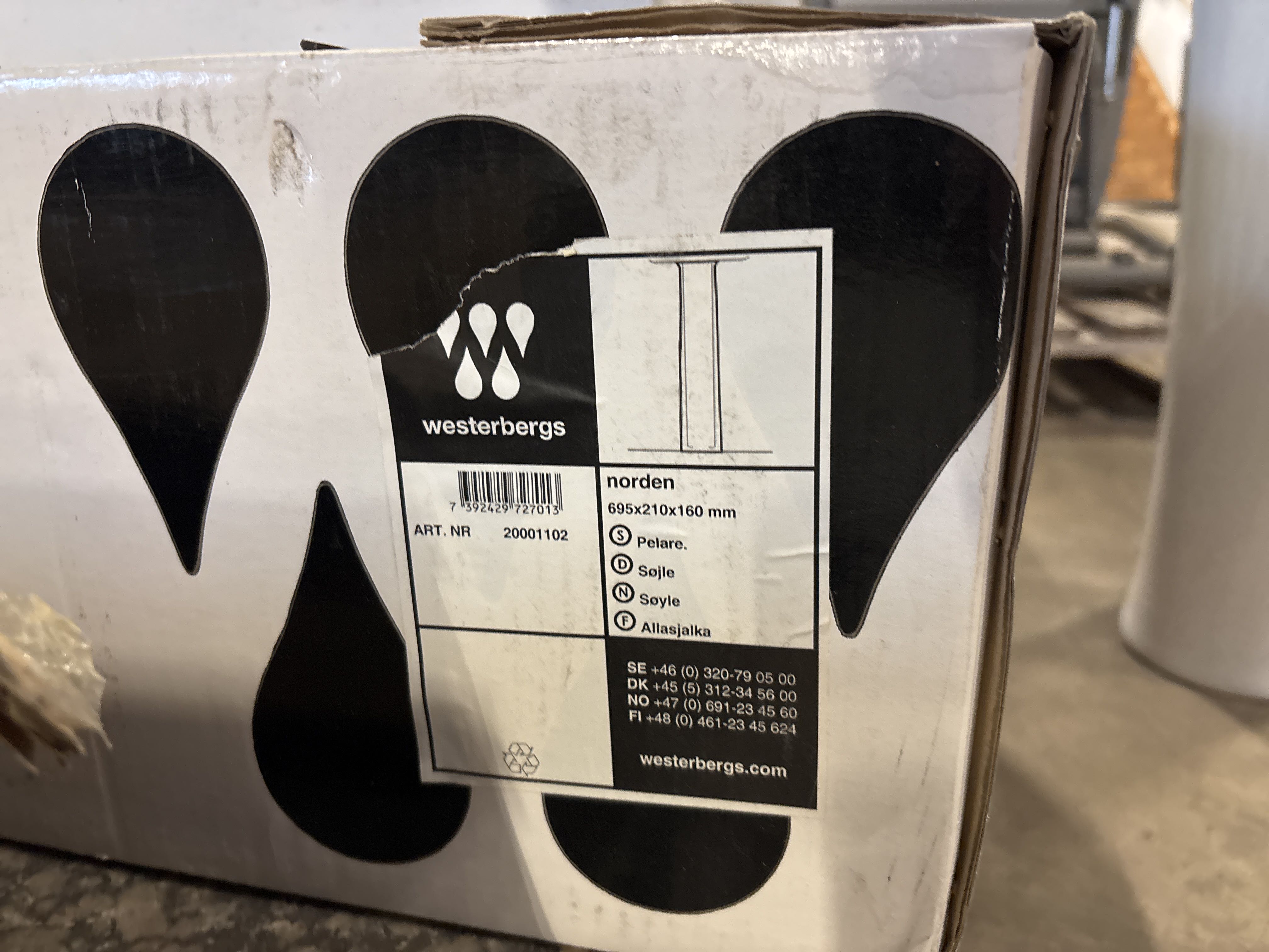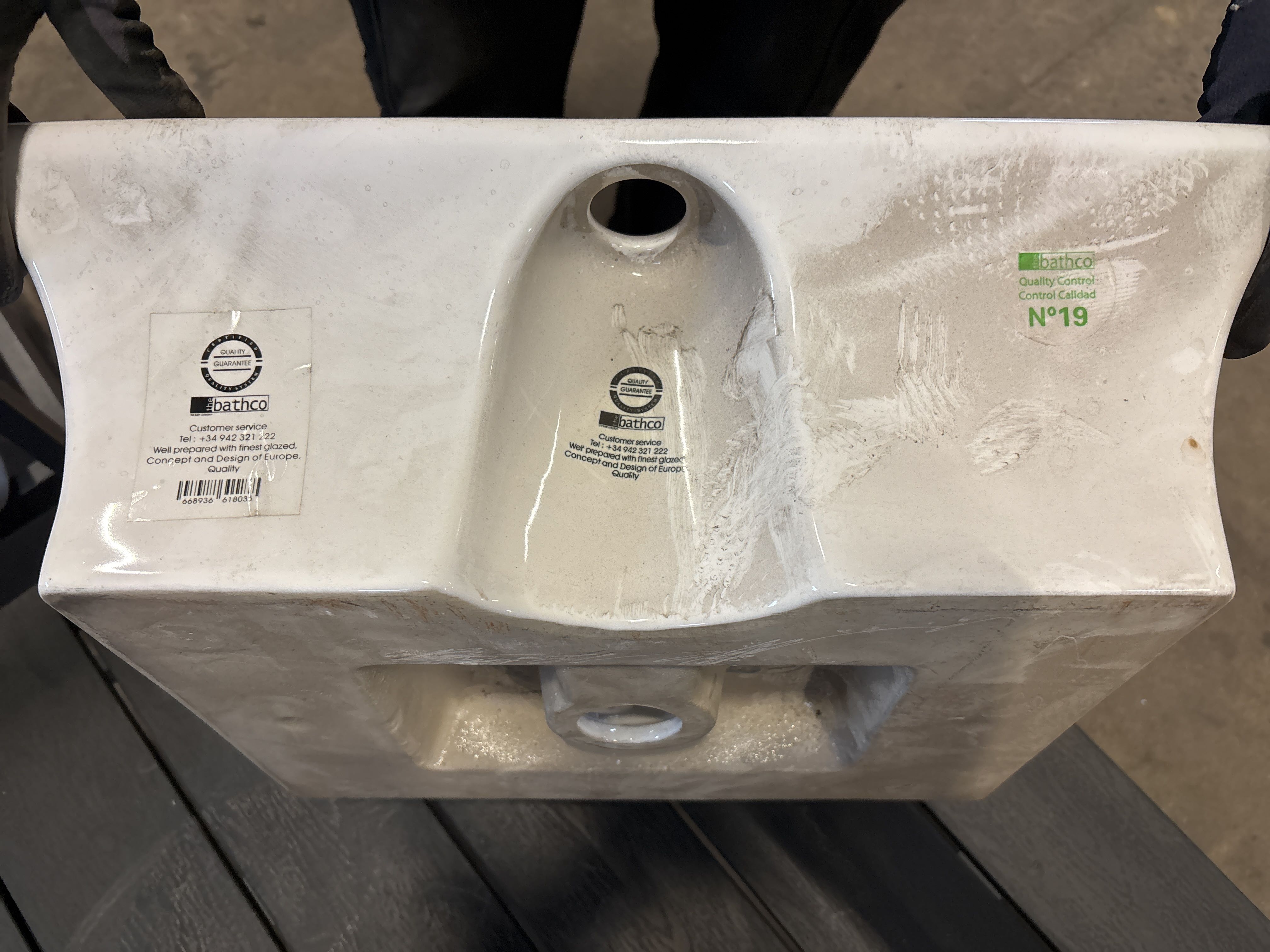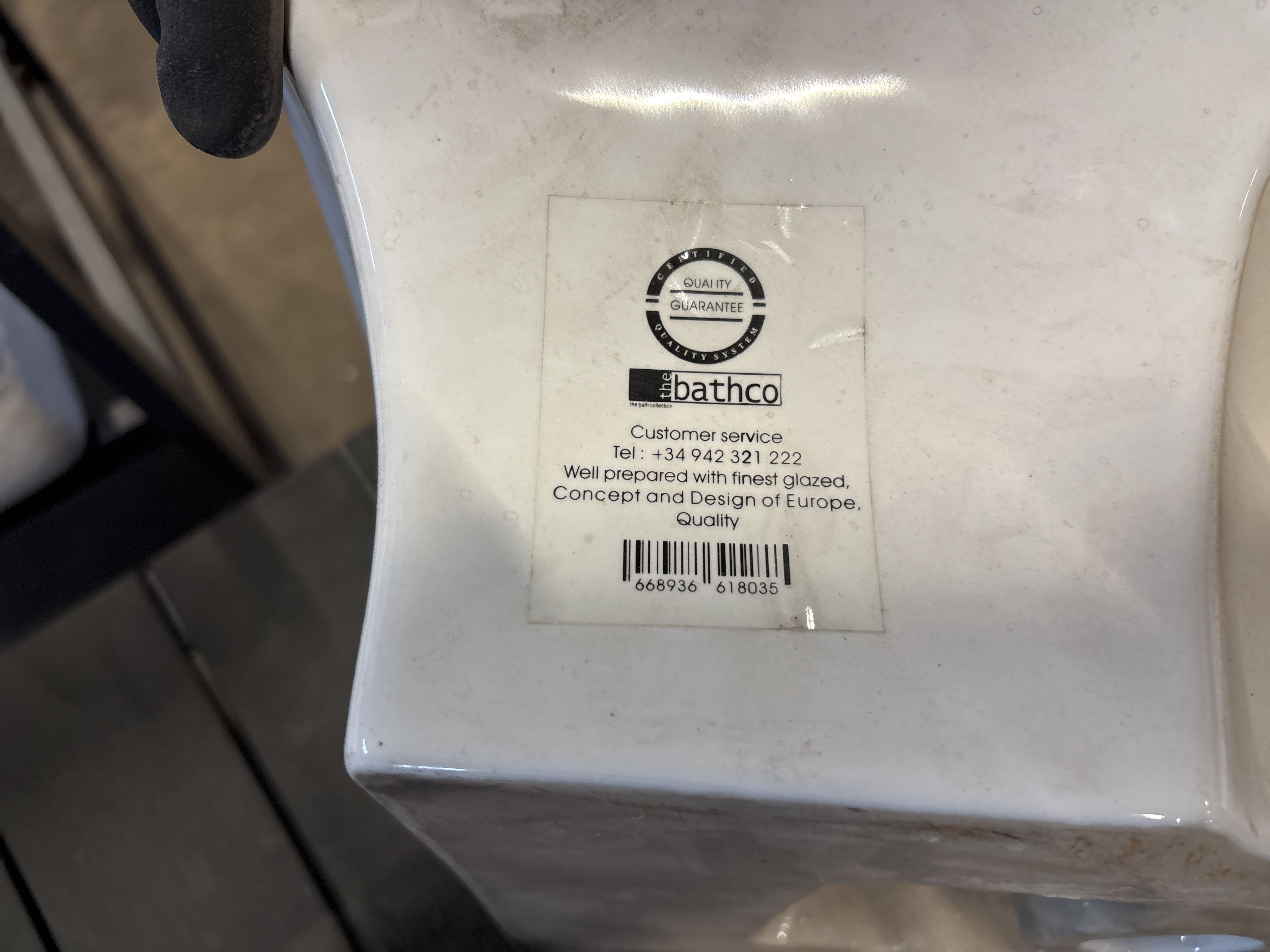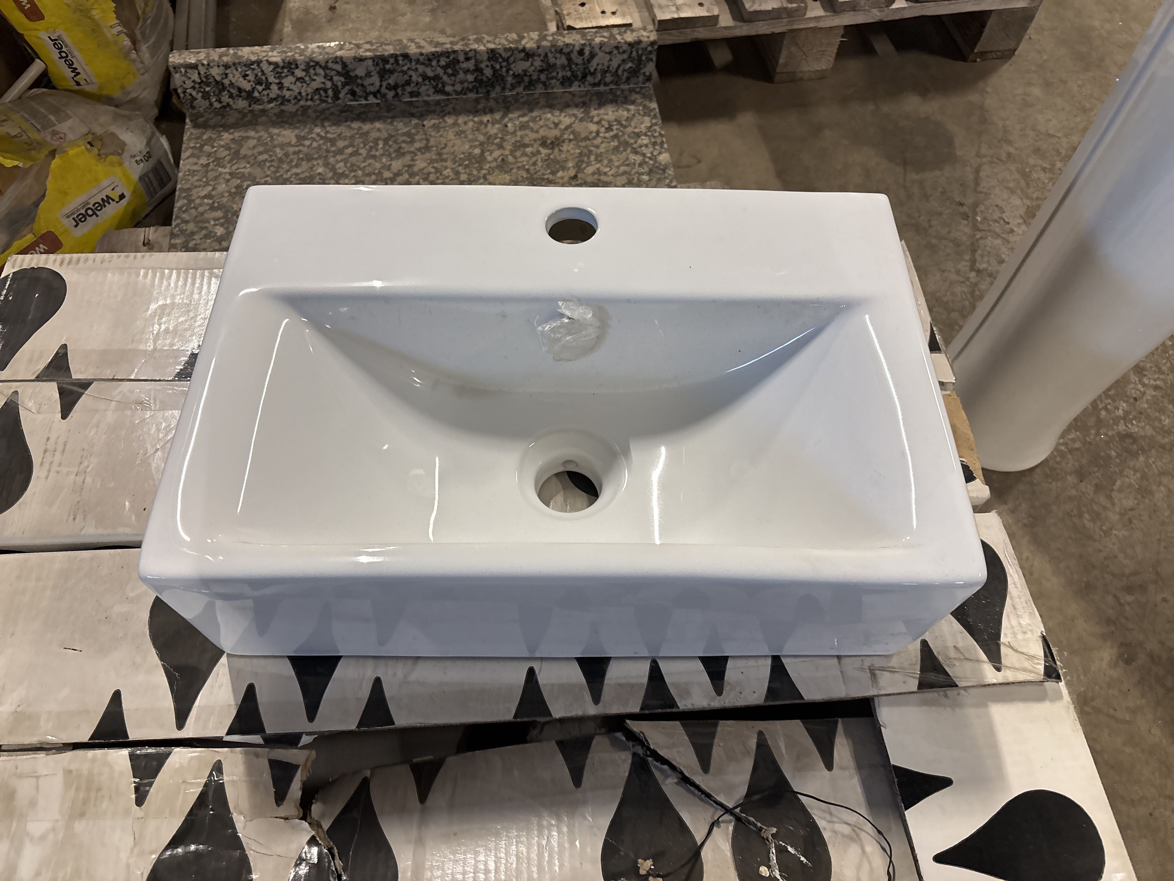 • Packaging marked “Ceramic basin – White”