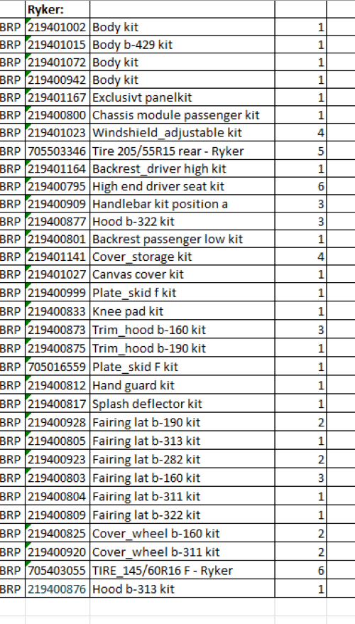 Lot with accessories in the category - three-wheeled motorcycles (Ryker)