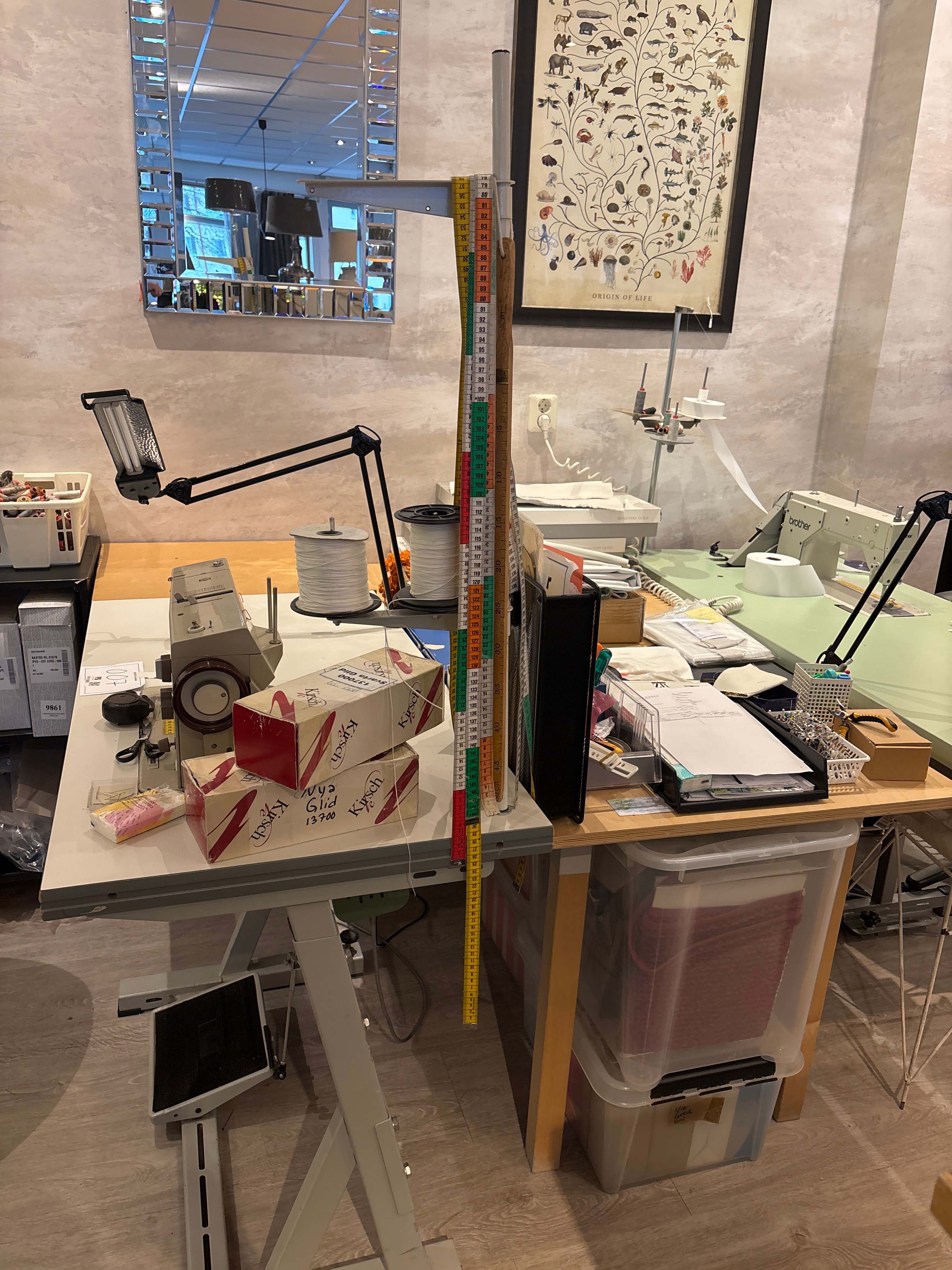 • Sewing machine table, approx. dimensions: L 158 cm, W 59 cm, H 82 cm