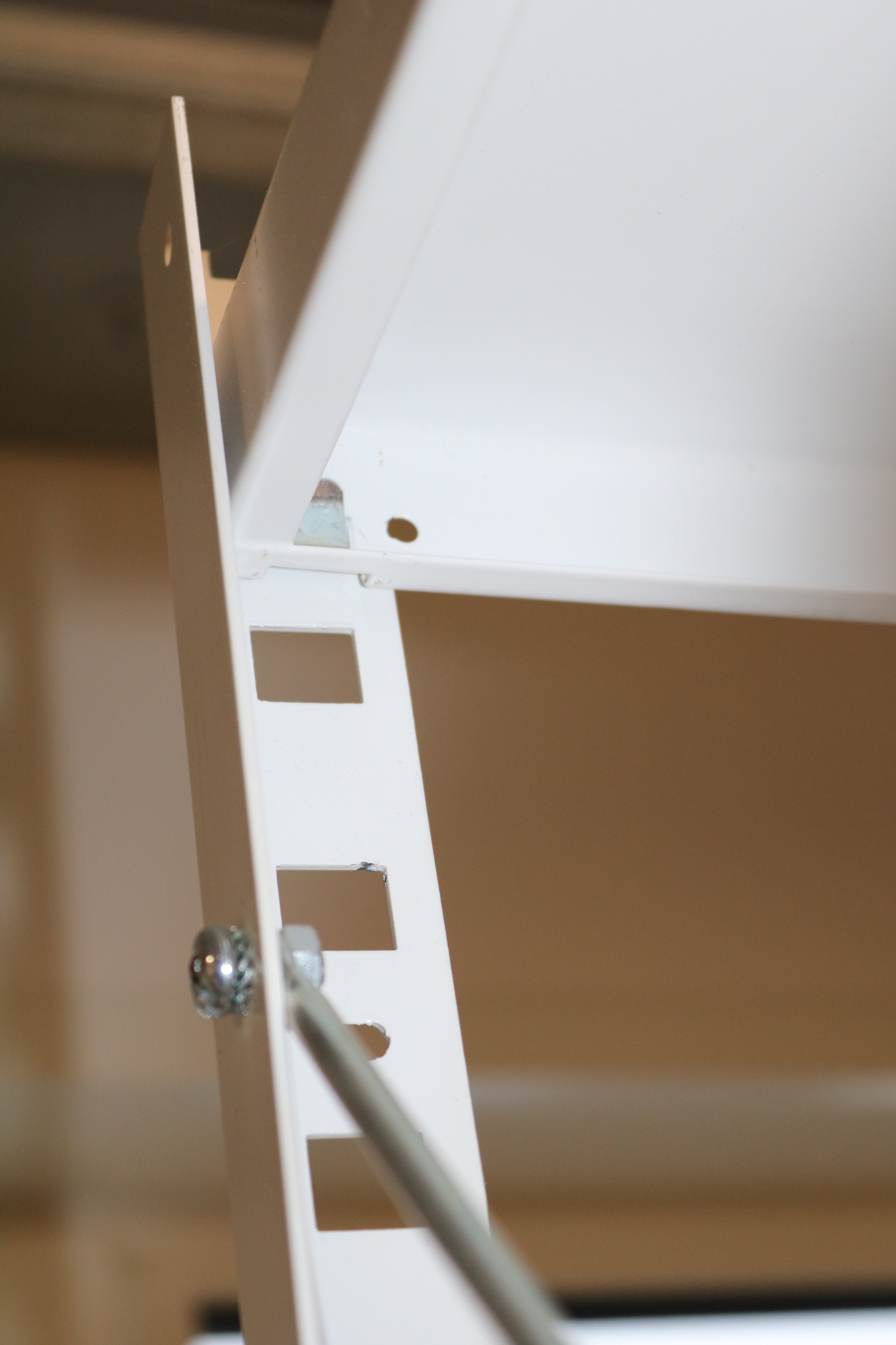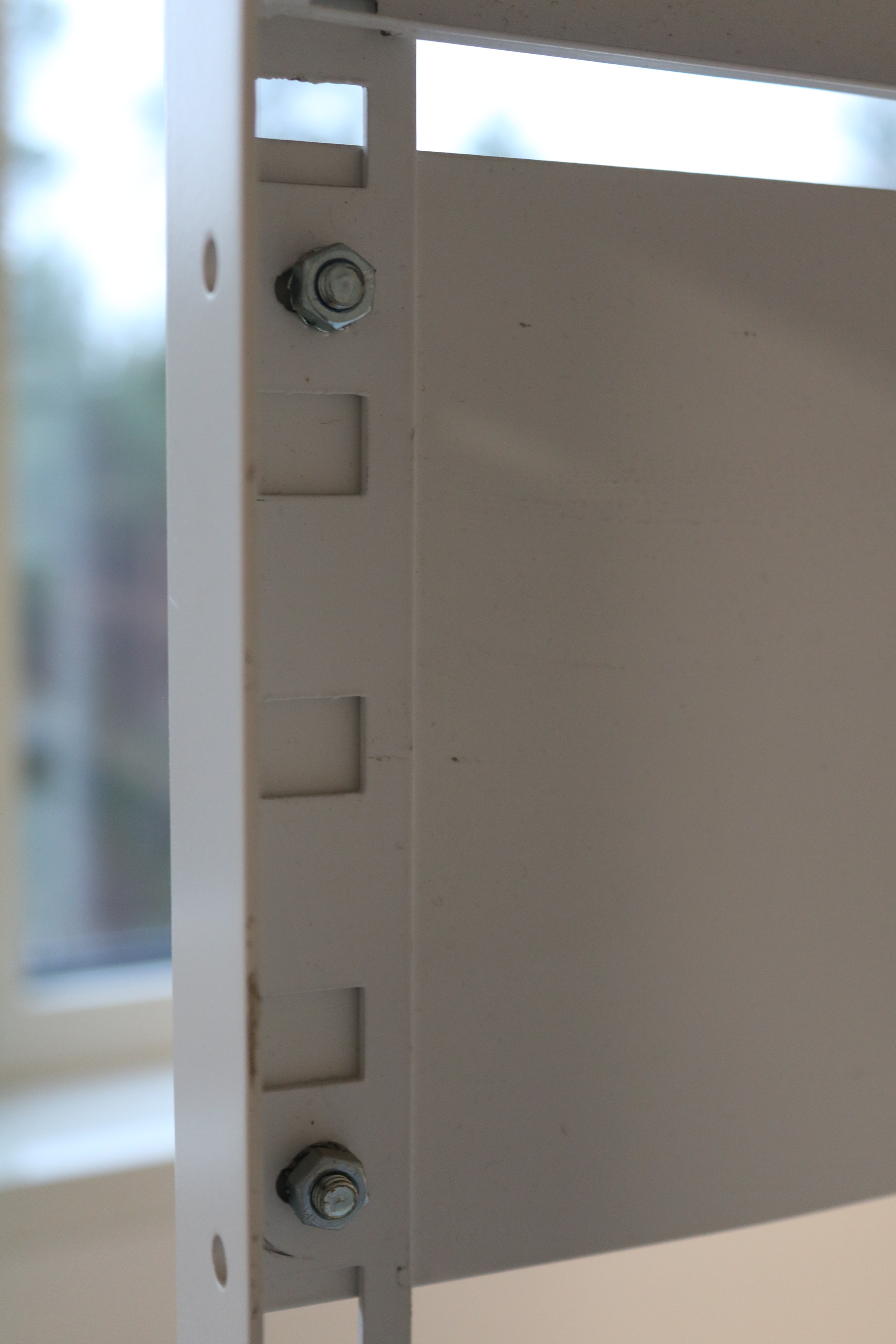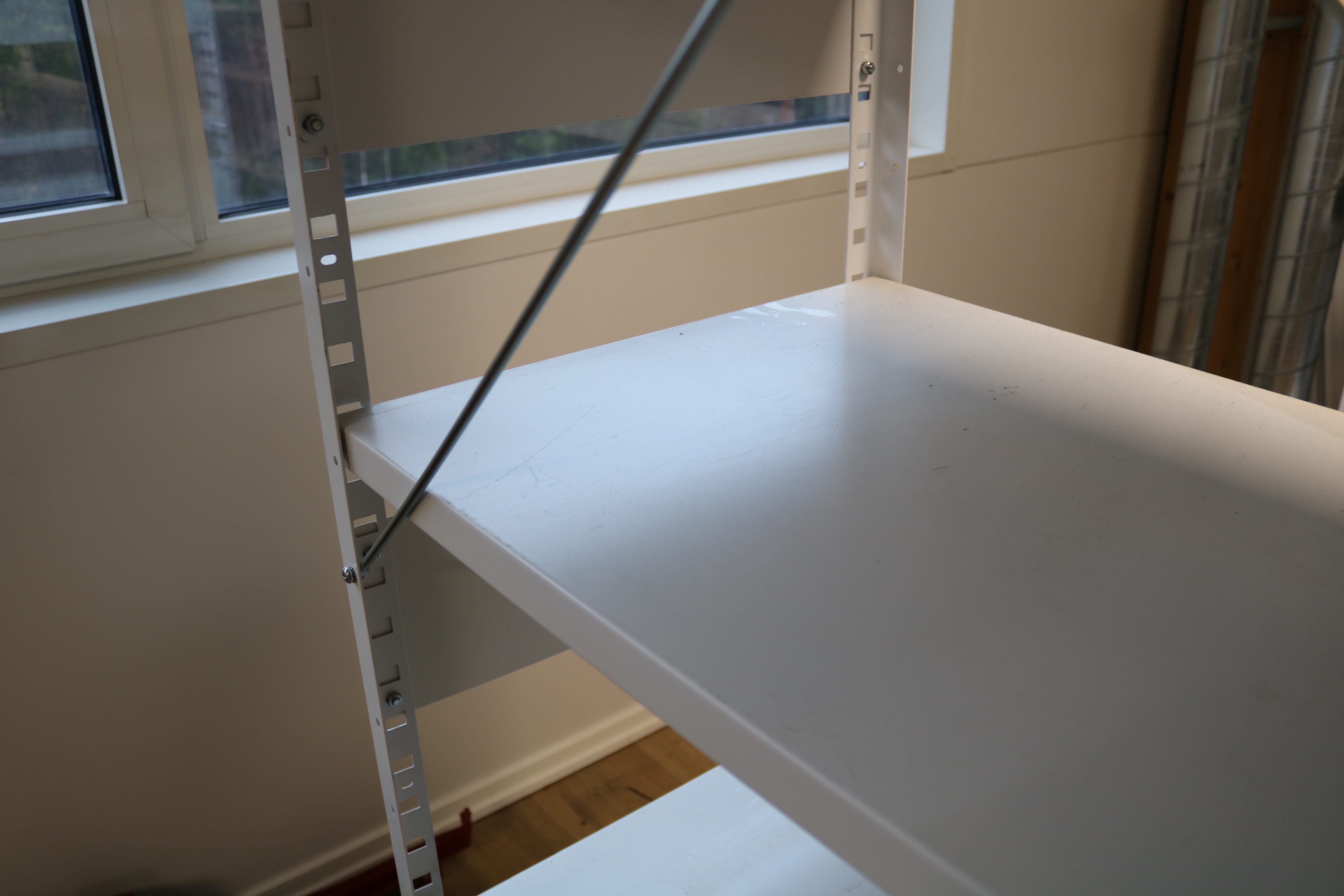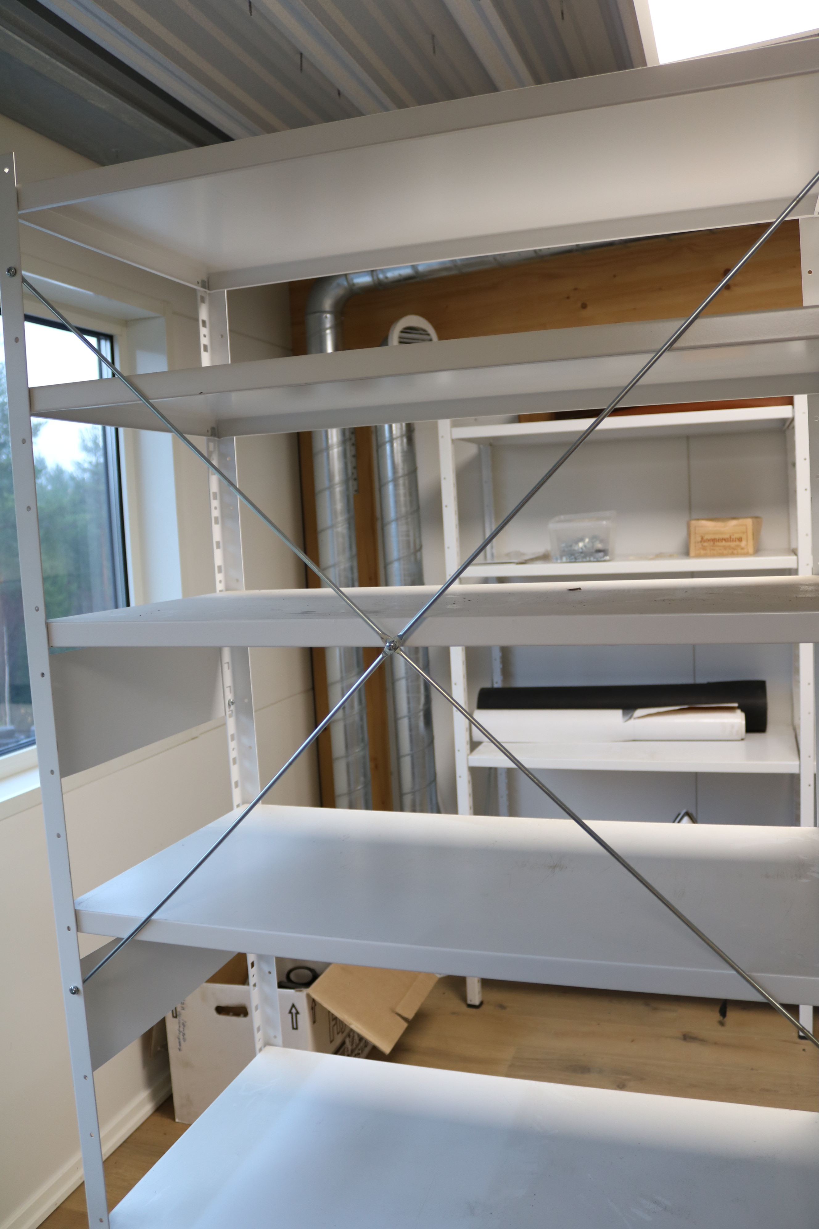 Sturdy storage shelves made of sheet metal.
