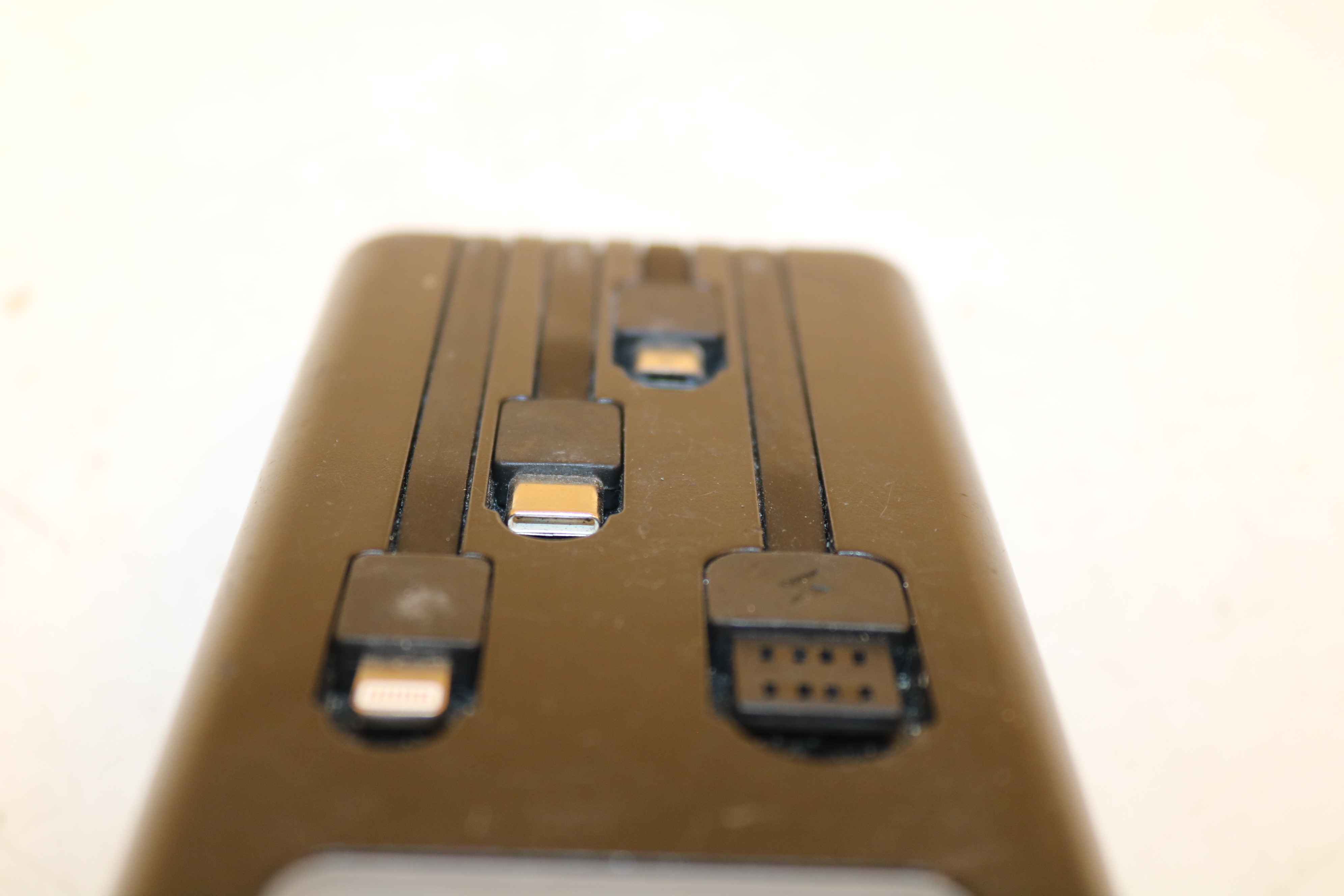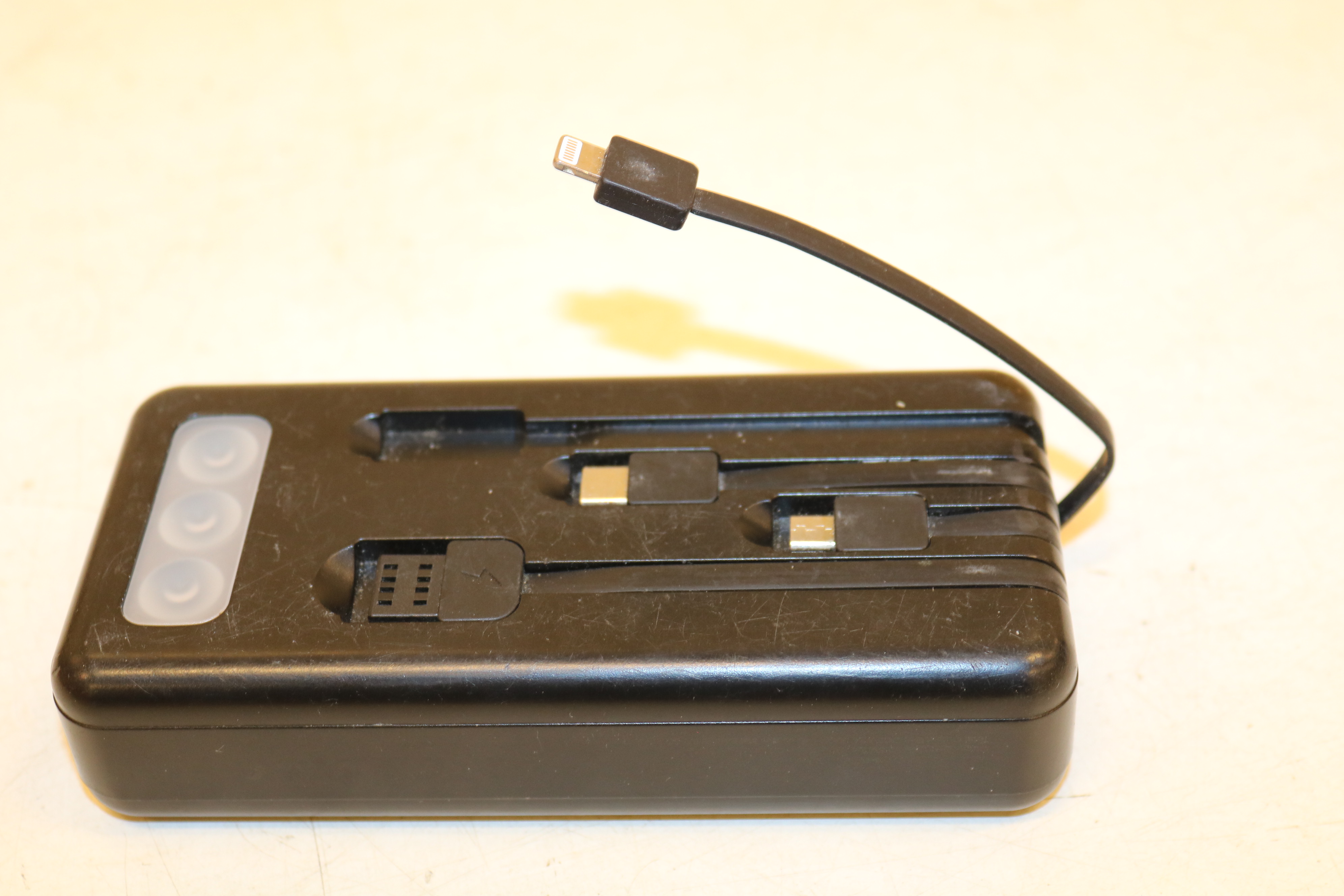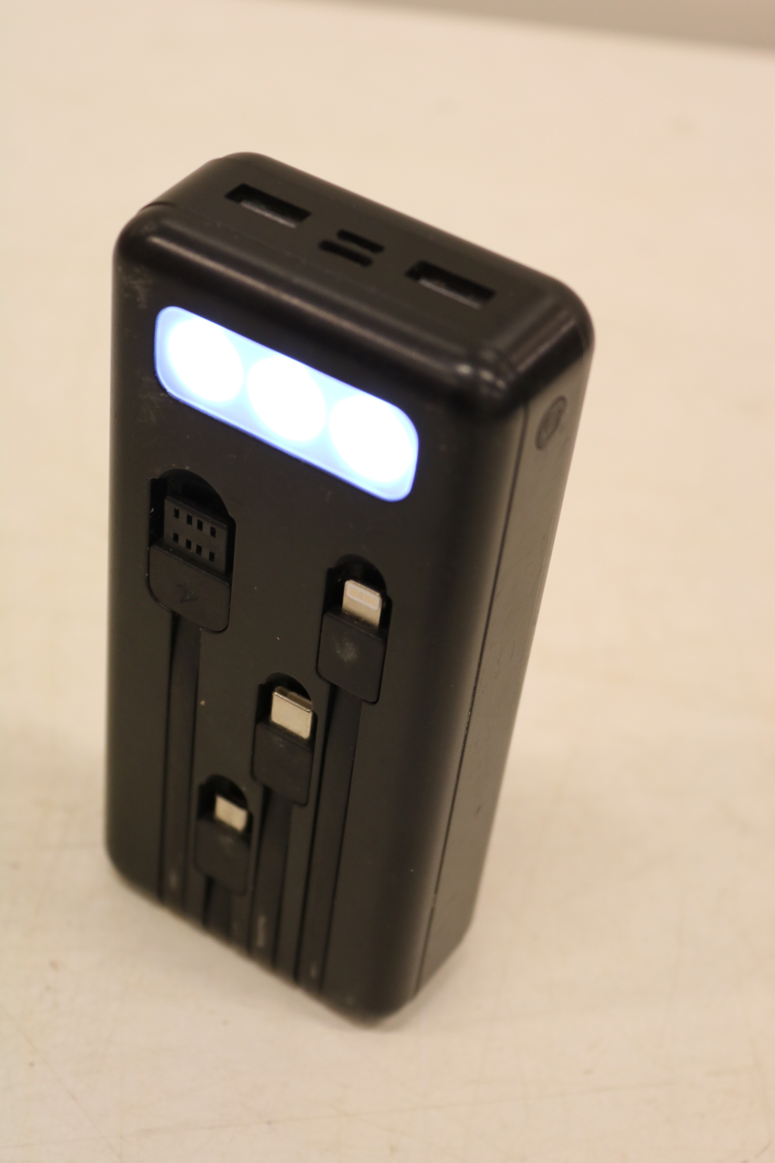 - Power bank with built-in charging cables.