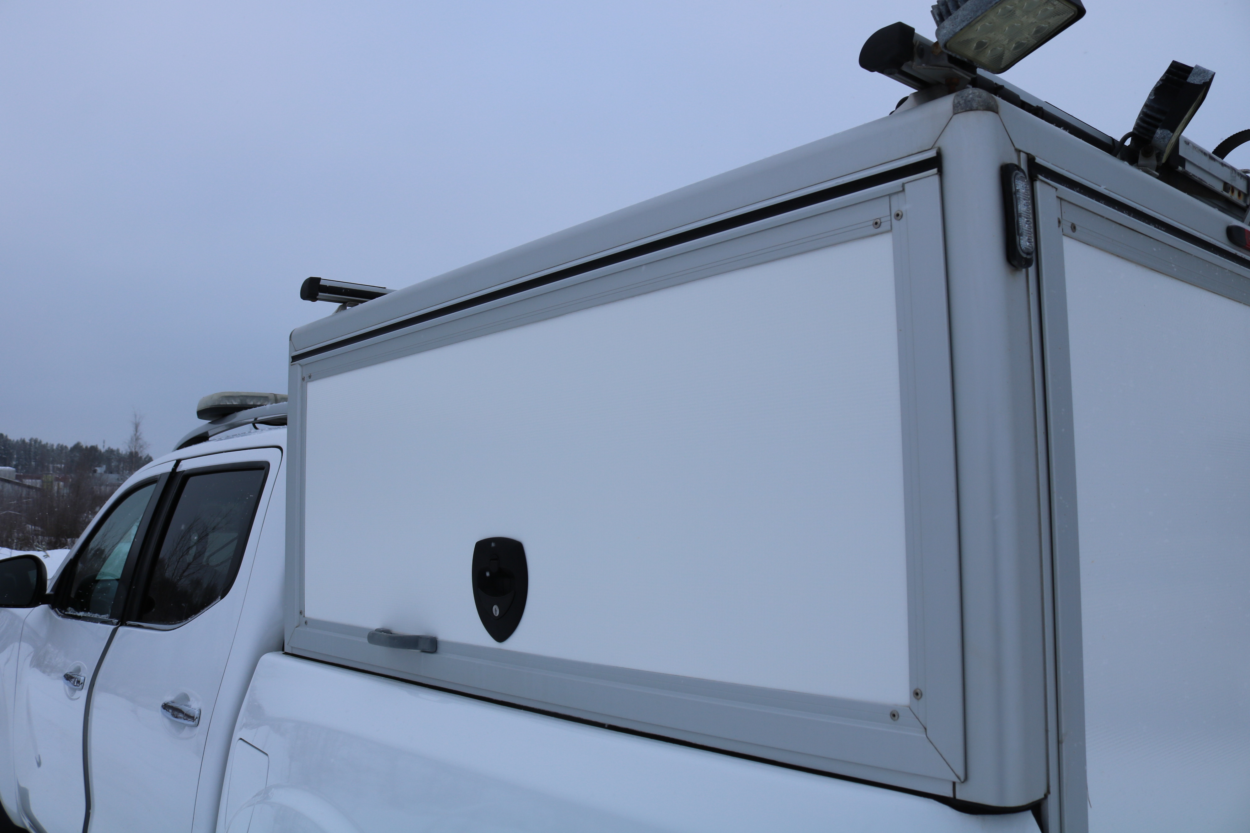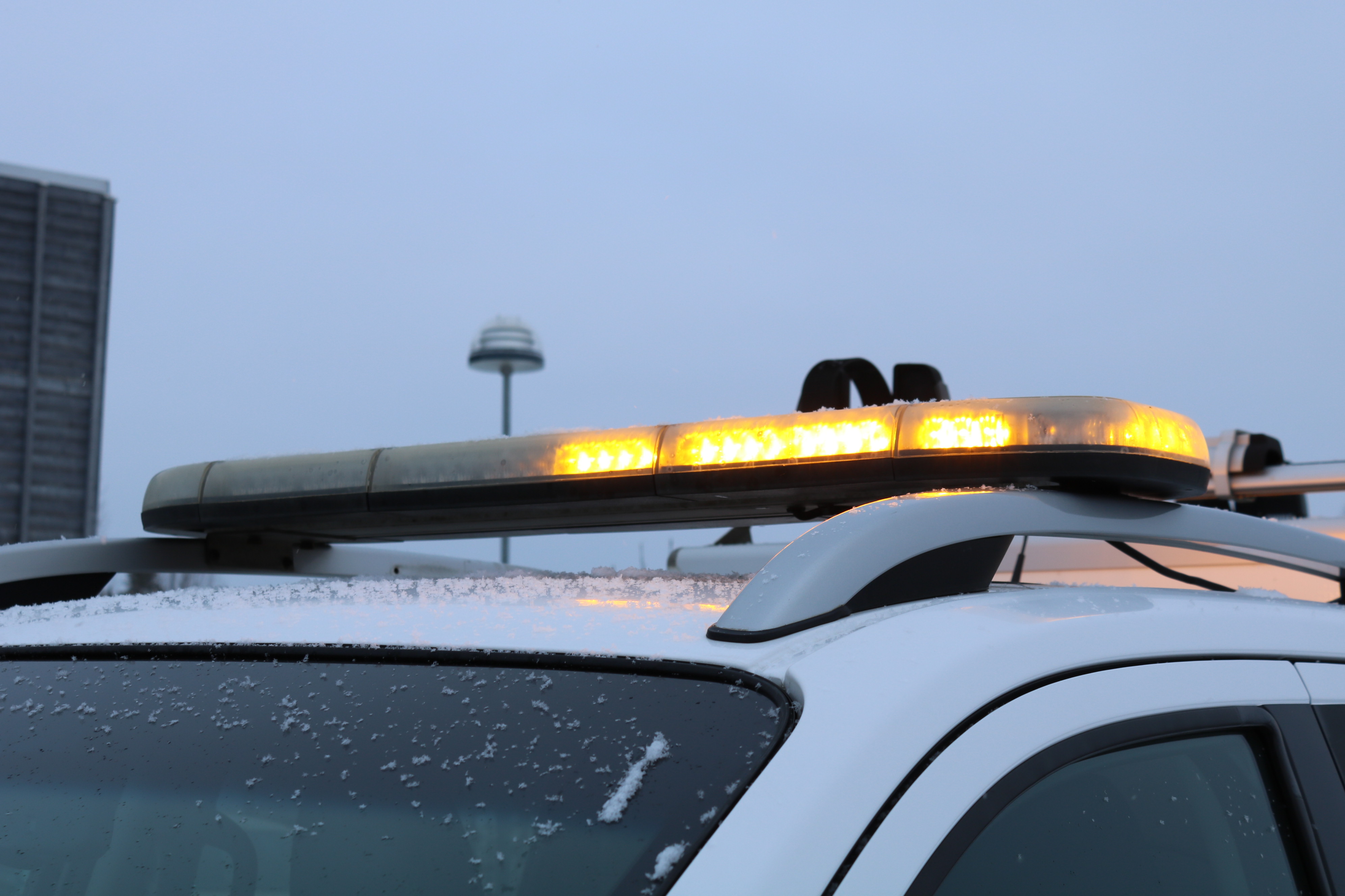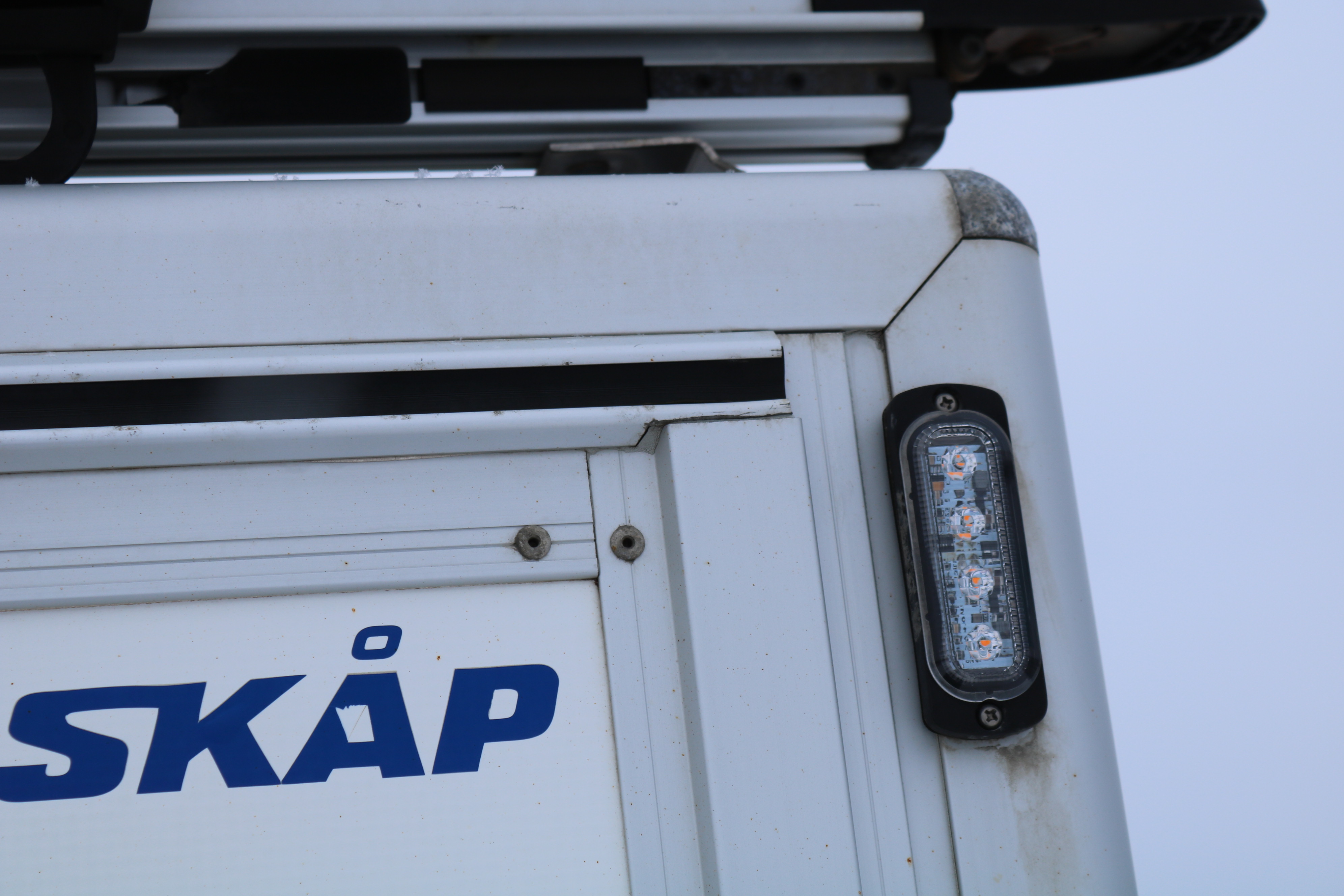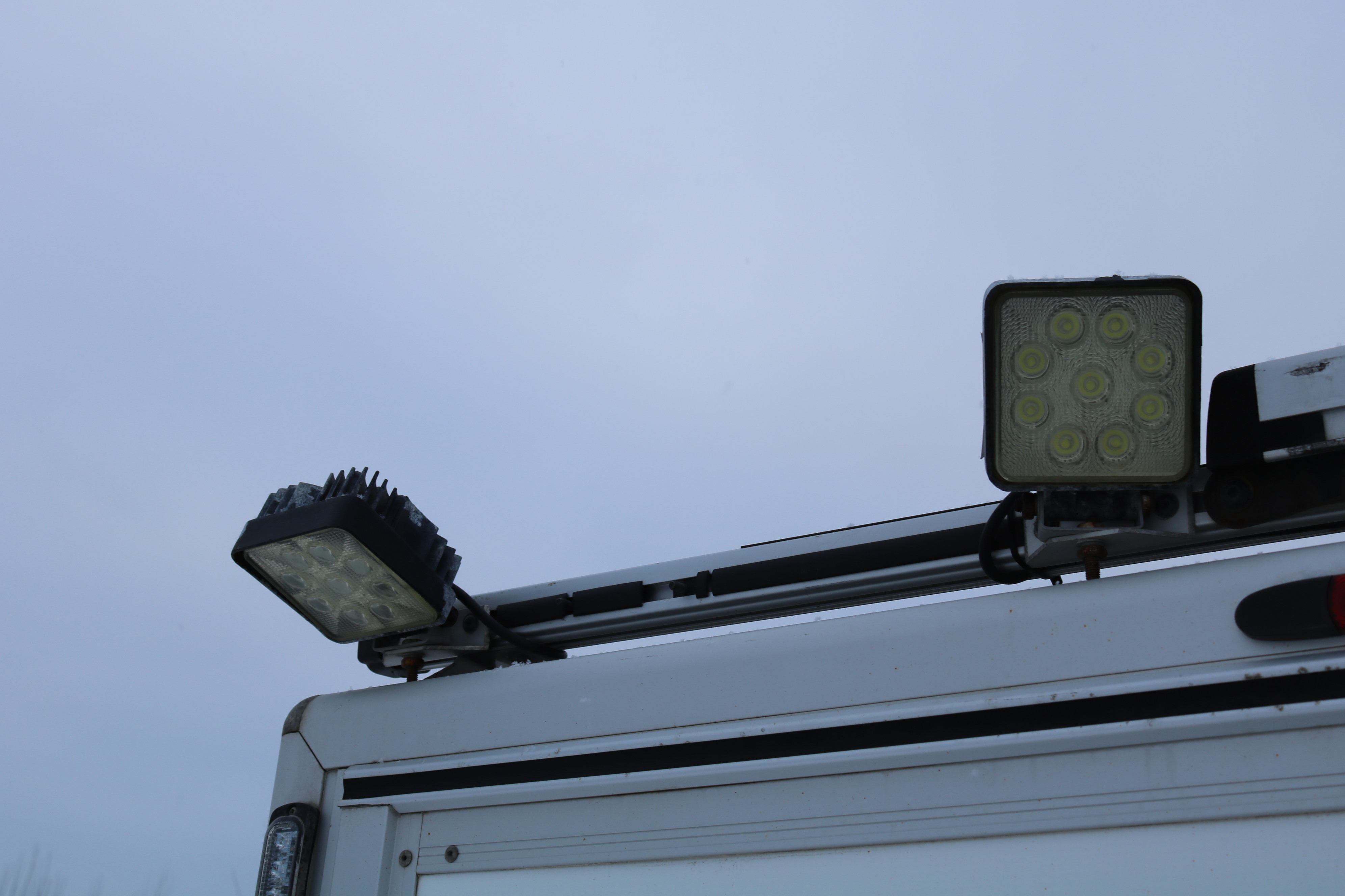 Work lighting & warning strobe light on roof.