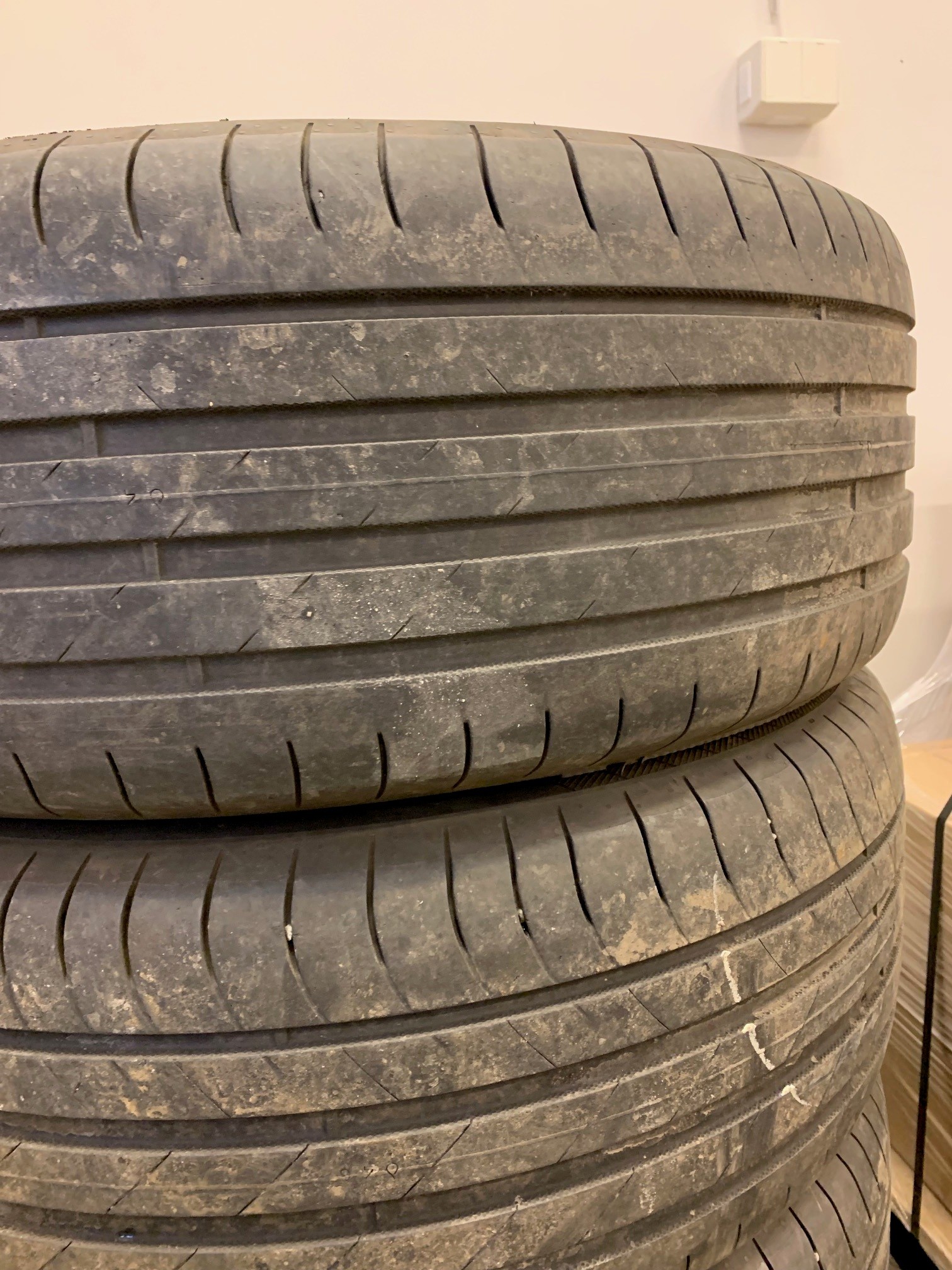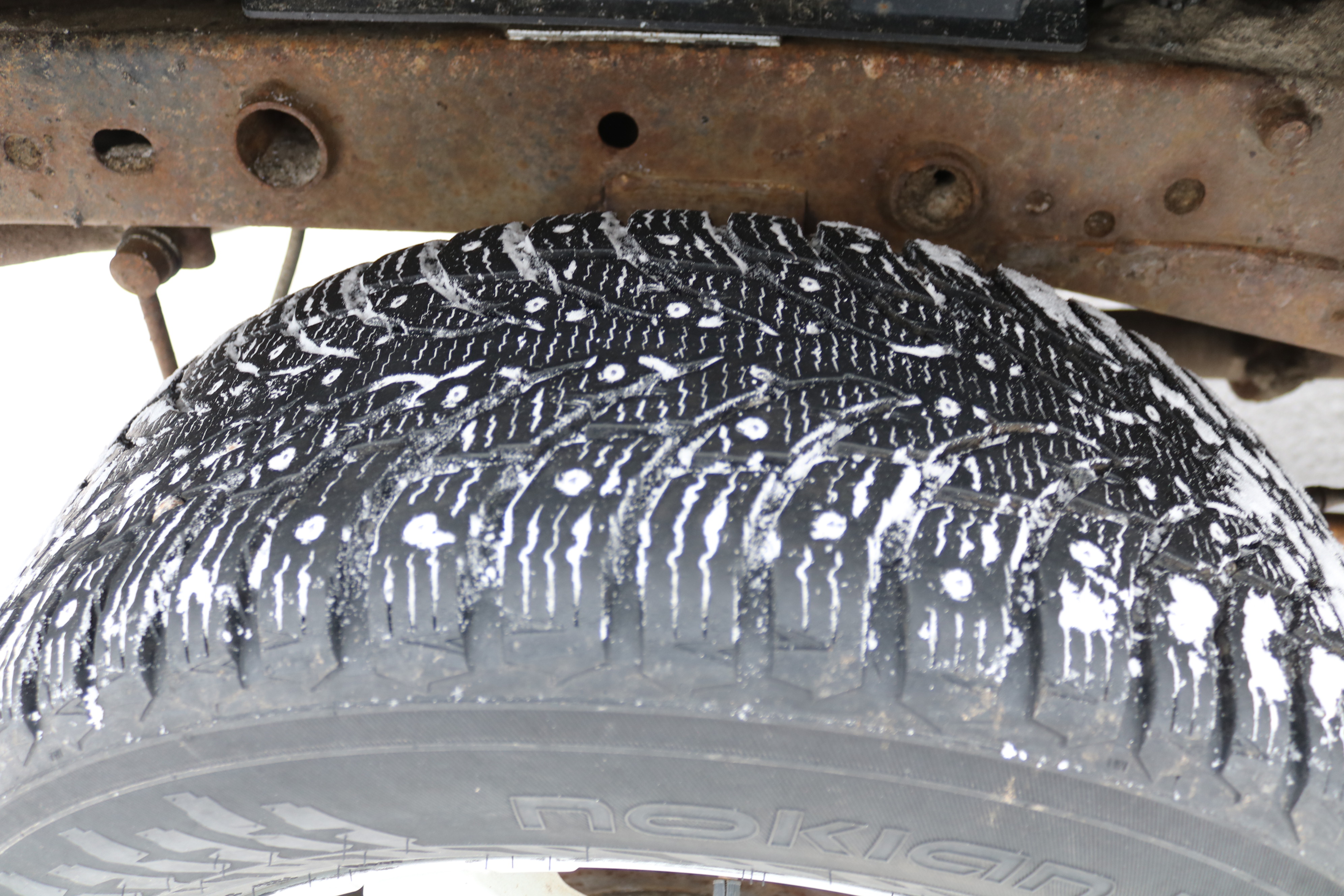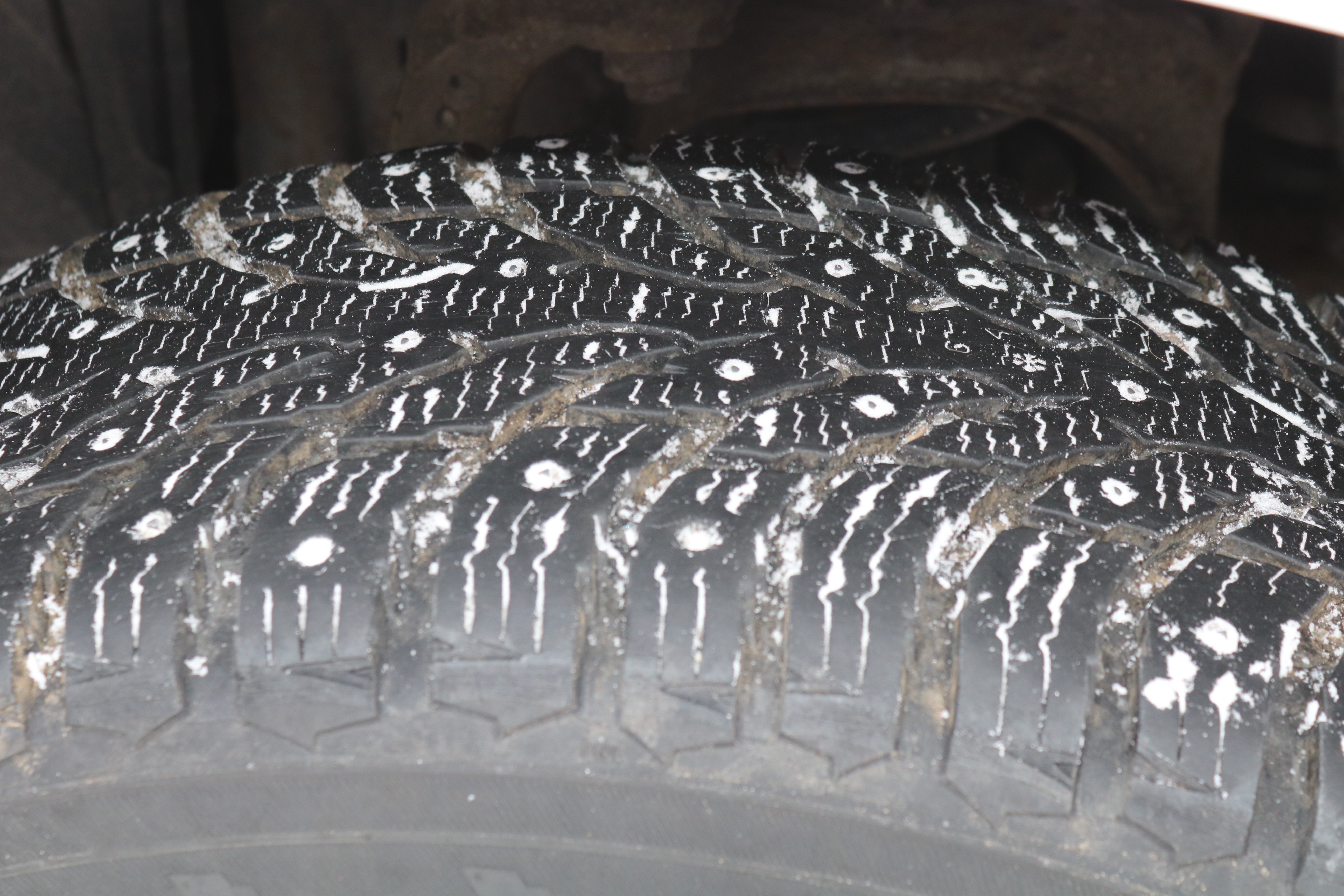 The car is on winter tires/studs about 30-40% left. Summer tires about 20-30%