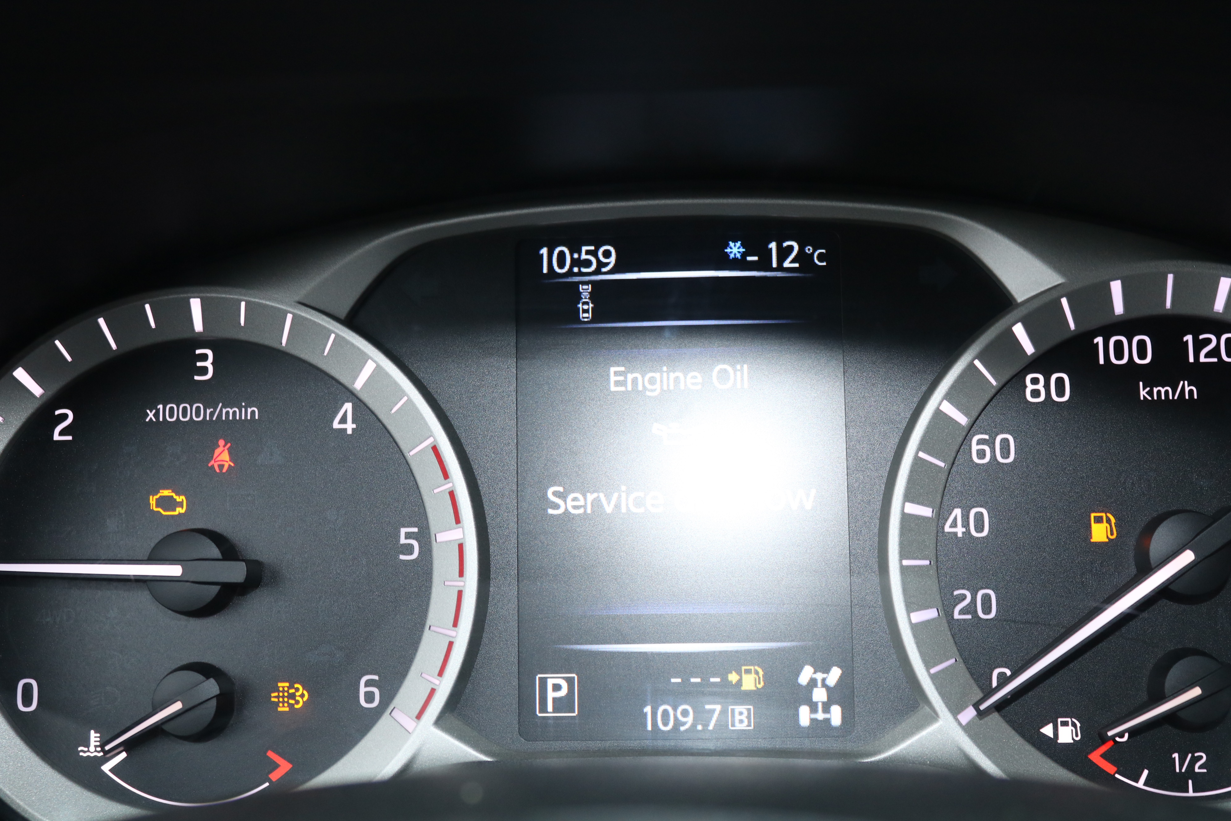 Engine light and diesel particulate filter warning light are on.
